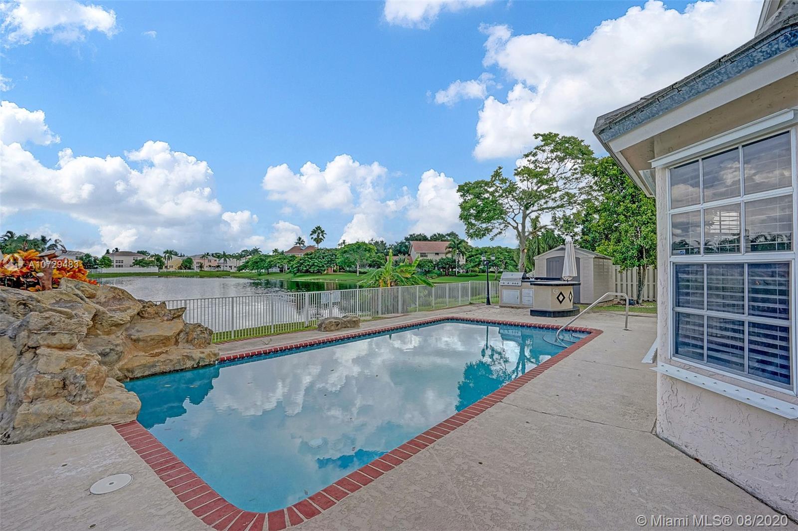 SPECTACULAR LAKE & POOL VIEW FROM THIS SPACIOUS & BEAUTIFULLY UPDATED 4 BEDROOM 2 1/2 BATH 2 CAR GARAGE HOME IN SHENANDOAH! GORGEOUS BRAZILIAN CHERRY LAMINATE WOOD FLOORS IN LIVING ROOM & ALL BEDROOMS/ LARGE EAT IN KITCHEN WITH STAINLESS STEEL APPLIANCES, CUSTOM BAR, HUGE FAMILY ROOM, LARGE MASTER SUITE WITH ROMAN TUB & SEPARATE SHOWER FRESHLY PAINTED THROUGHOUT SPARKLING POOL WITH WATERFALL OVERLOOKING THE WIDE PART OF THE LAKE LUSCIOUSLY LANDSCAPED & FENCED YARD GREAT FOR ENTERTAINING WITH LARGE POOL DECK! COMPLETE HURRICANE PROTECTION! DON’T MISS OUT.
