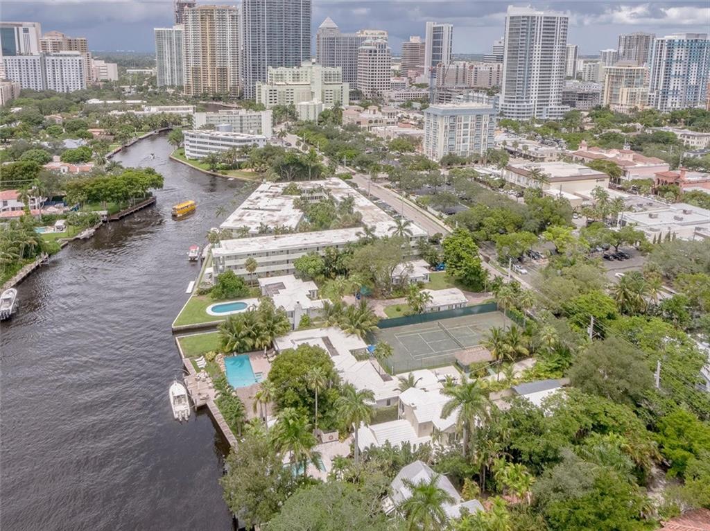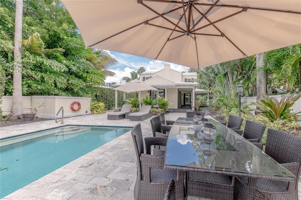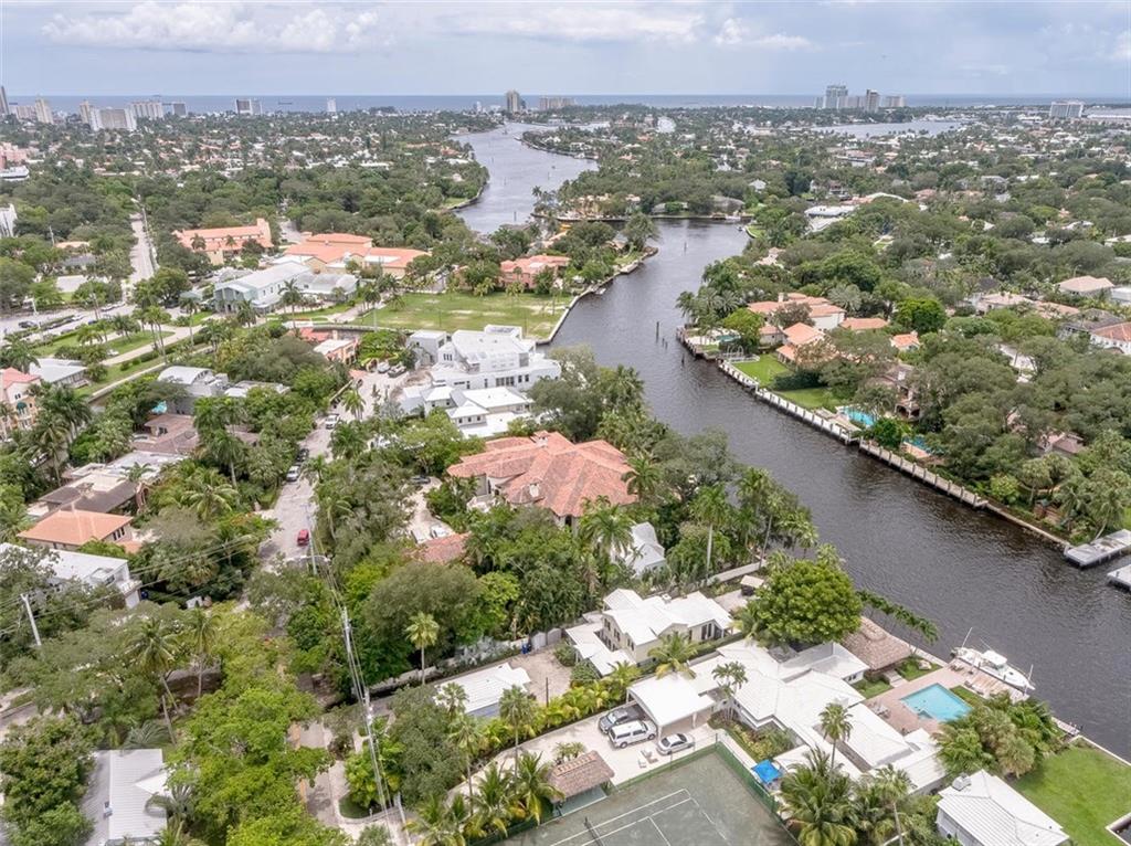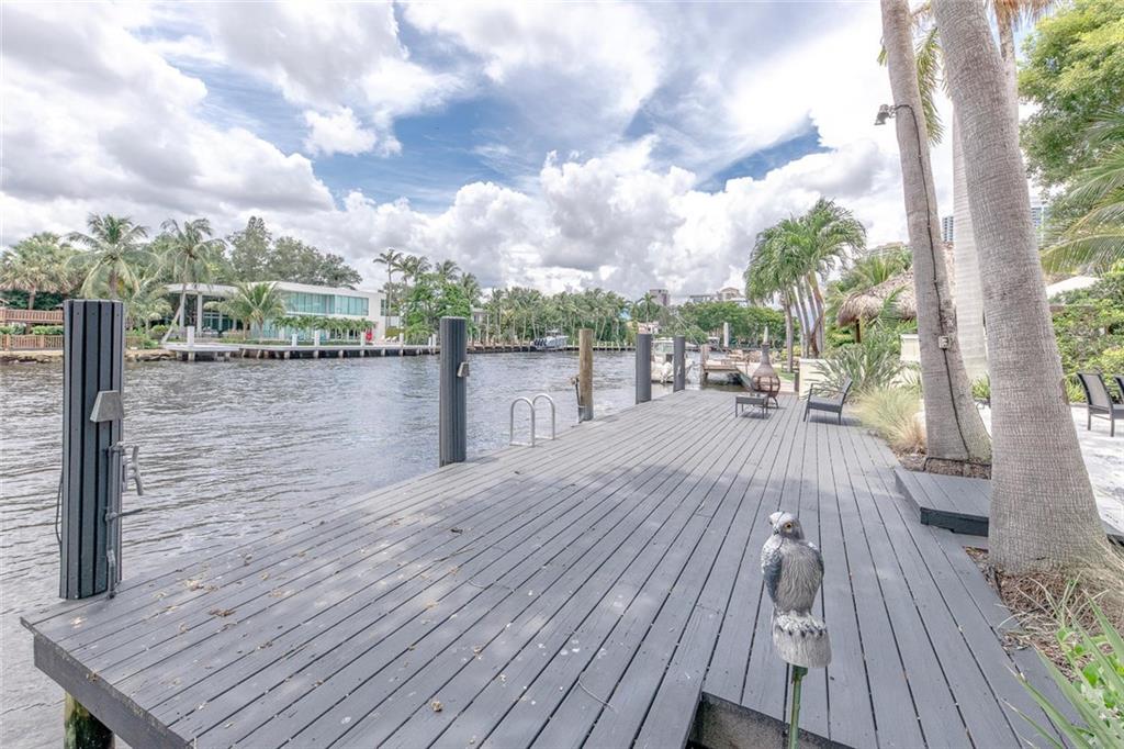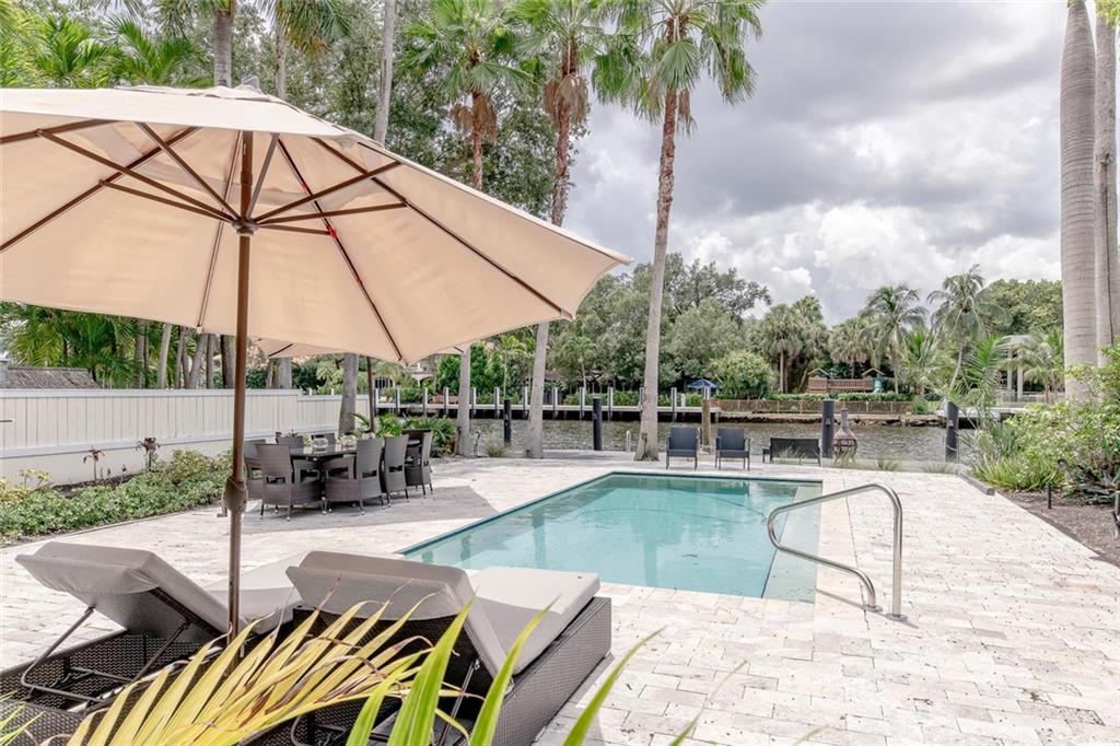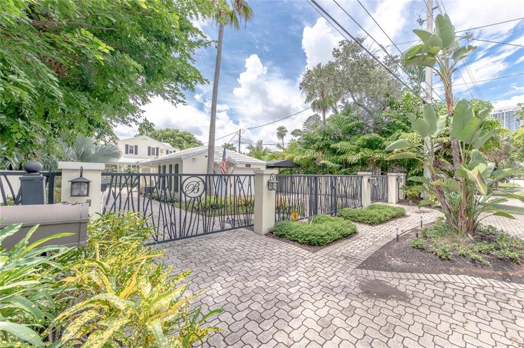 NEWLY Priced! Welcome to your private, gated New River home with 50 feet of waterfront property. Relax in your resort style backyard and watch the boats pass by! Updated patio, seawall and dock make this a perfect area for entertaining. Sit back on the wrap around porch before you walk to Las Olas or bike to the beach. The updated main home is 3 bedrooms and 2.5 baths and features stainless steel appliances, new AC, wood floors and a wood burning fireplace. The 1 bedroom/1 bath guest house can be used as an artist's studio, inlaw suite, nanny suite, theatre or office. Also includes a 1 car garage. Don't miss this opportunity to own this island style home which is featured as one of seven properties located directly on the New River. Location, location, location.