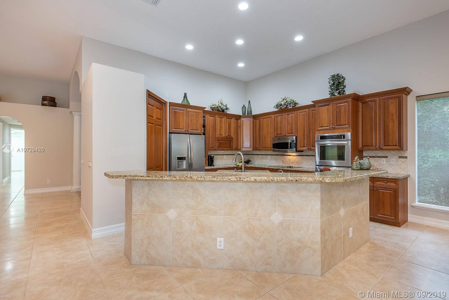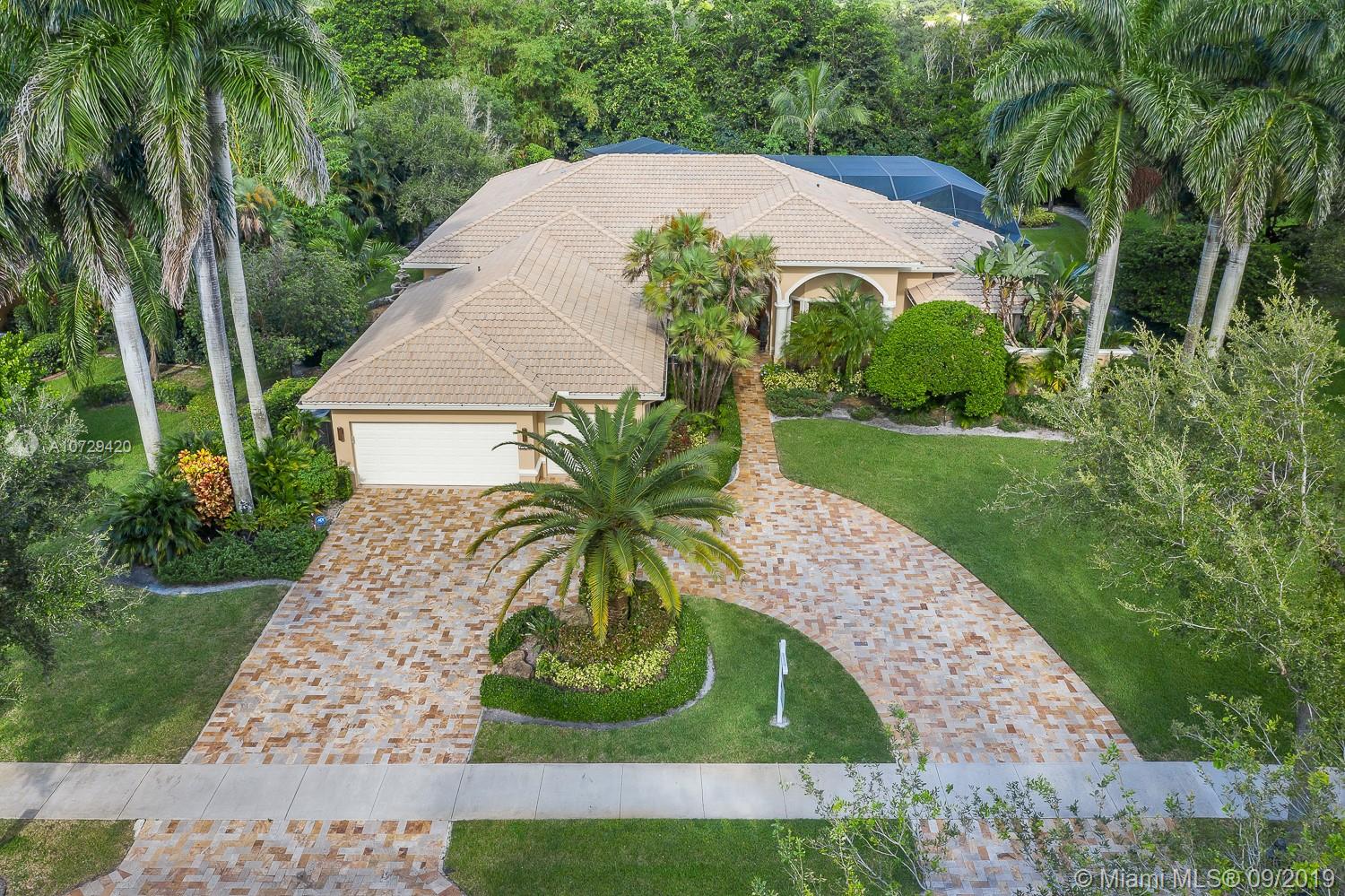 Resort-styled 5-bedr has unrivaled enhancements. From it's slick Travertine stone circular driveway to it's signature massive party-poolside enclosure, Buyer's will make this a favorite. Improvements - hardwood front door, travertine stone, wood cabinets,granite tops, remote controlled systems (shades and pergola), generator, landscape lighting, 500-gal propane tank, water softener and pump waterline, newer diamond brite pool amid extensive poolside stone deck, soaring 24 foot high 170mile wind-resistant screened encl, pergola built-in bbq w/ golden brown sunrise stone base. Location near A+schools, shoppes, rec sports, malls, & 20 minutes to fort lauderdale beach/airport. Recent inspection report and repairs receipts included. Reserve to show 24hr notice.