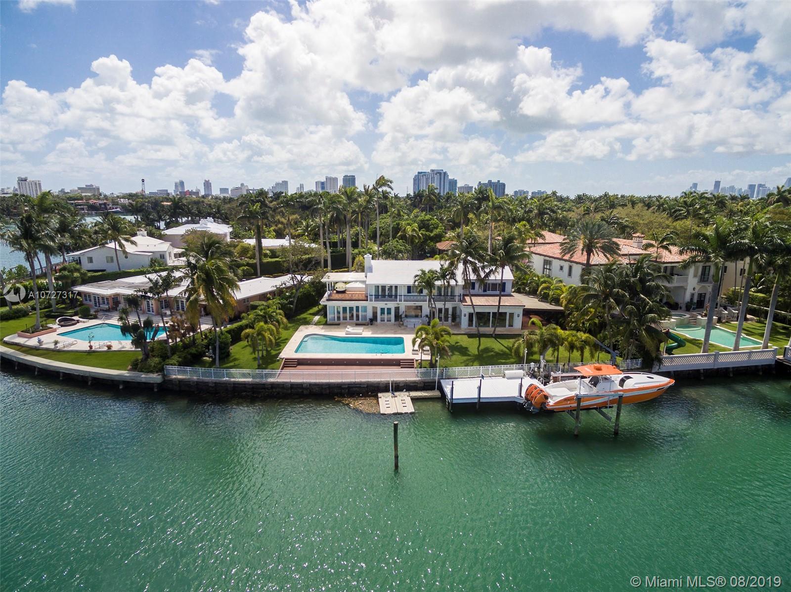 PROPERTY IS RENTED UNTIL AUGUST 31ST 2022. Located on one of the most prestigious private Island of Miami Beach, this estate, of 6 bed 6.5 plus gym, 22,000 sqft lot size, with 140ft waterfront on the water that can accommodate large yacht, represents the best deal ever! On the wide part of Sunset Island 2, this waterfront home showcases exquisite living spaces with charming preserving colonial design. Oversize pool and 20,000Lbs boat lift and 2 jetski lift on dock….