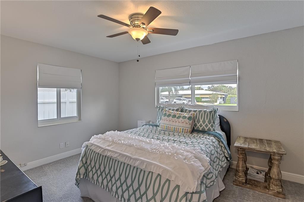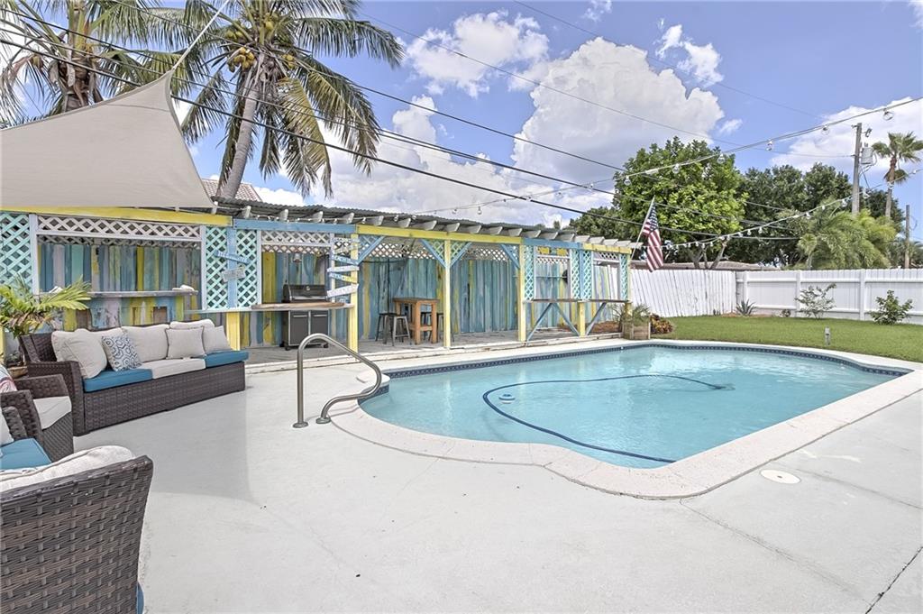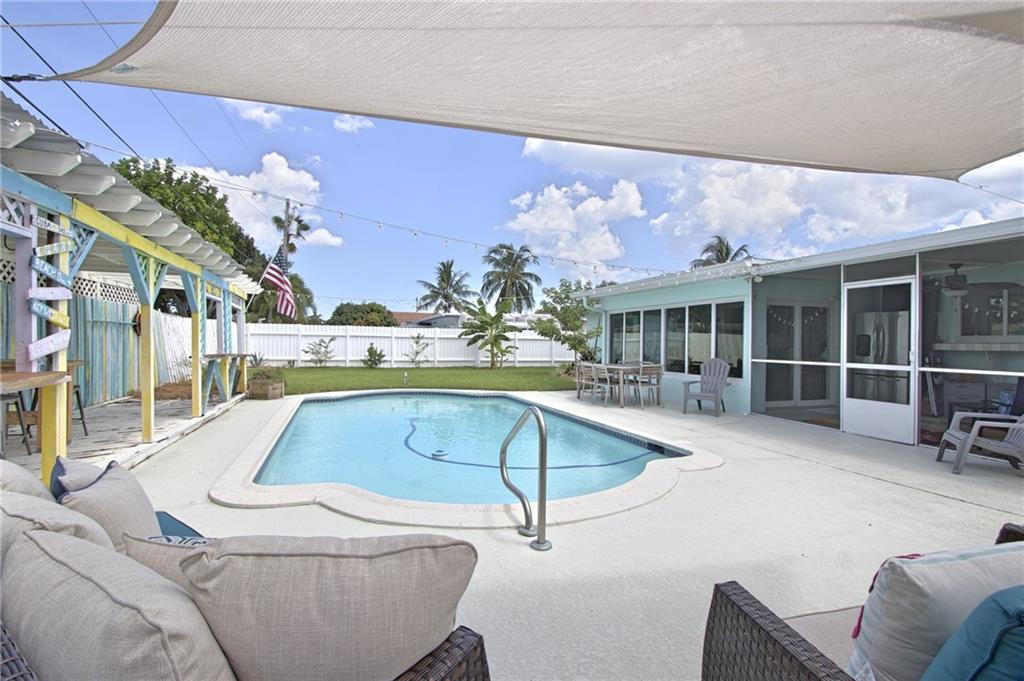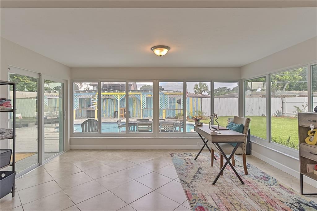 Beautifully renovated home on a quiet & well maintained street. Enjoy the bright natural light from the open living area & direct pool views from the living areas, kitchen & master bedroom. Home features 2 large bedrooms, 2 bathrooms & an office. Tile flooring throughout the living areas, new luxury carpet in the bedrooms. The kitchen has been nicely updated with granite counters, tile backsplash & stainless appliances. Entertain on the screened patio, large pool deck, tiki area & still have a large grassy yard for kids or pets. New roof 2017, new a/c, Hurricane Impact windows & doors, new sod, kitchen appliances less than 1 year old, & so many more upgrades!!