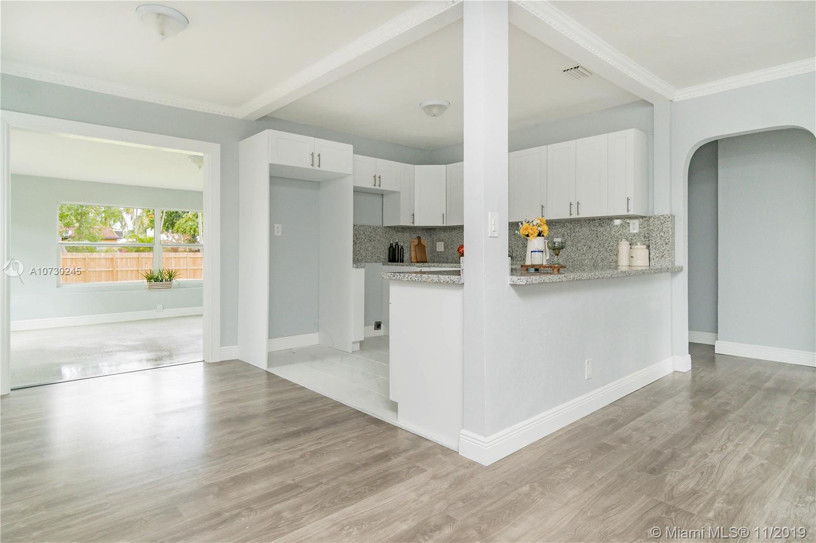 Tastefully designed 3 bedroom 2 bath home with open-concept Kitchen, granite counter tops, stunning modern bathrooms, polished terrazo flooring, huge backyard with room for future pool, newly installed pinewood fence with sliding gate entrance to enclosed private garage. Located in the quiet neighborhood of East Hollywood Beach. This location is a short bike ride to famous Hollywood Beach and Boardwalk. Has great potential for AirBnb or short term rental property due to close proximity to the beach, airports, and tourist areas.