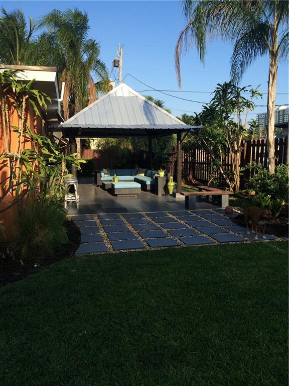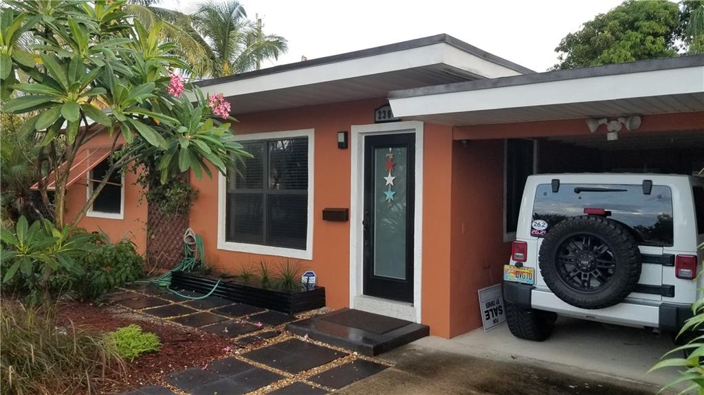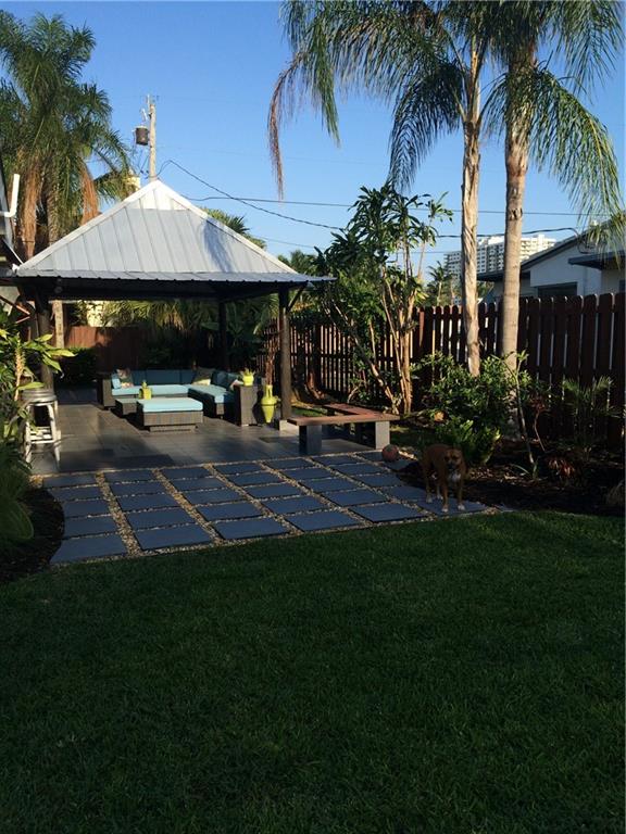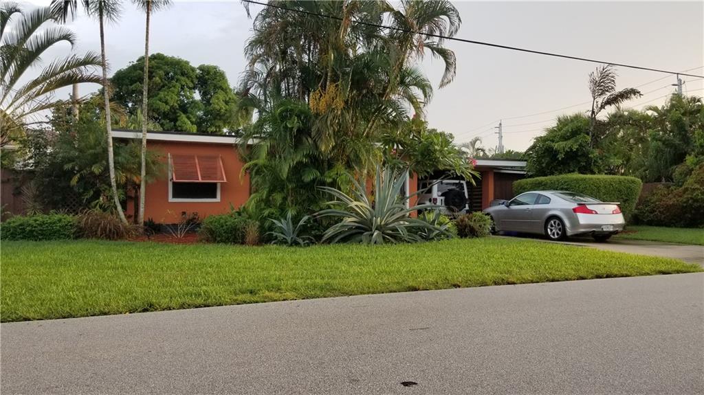 Great opportunity to own a single family home EAST of Federal and just a short walk to the end of 13th Ct to the neighborhood direct Intracoastal park. Lowest priced single family home in all of Pompano Isles and convenient to everything! This cozy 2 bedroom, 1 bath mid-century modern home sits on a large corner lot 128'x76' surrounded by waterfront properties. The kitchen and bathroom have both been updated, flooring is finished terrazzo to compliment the homes era, impact windows and doors with a few exceptions. The backyard is huge with a 12x17 gazebo in the center, plenty of room to add a pool or add on to the house, if a 2nd story was added you would have water views. There are two fixed shed that will stay. The a/c is newer and roof was replaced in 2010 *Easy to show*