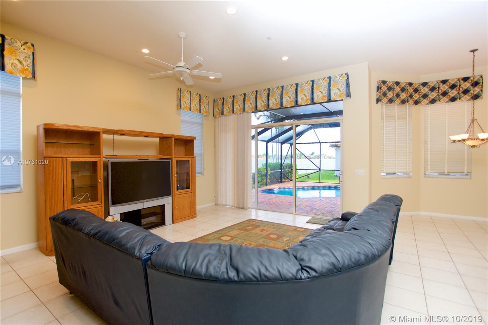 Over 4000 square foot luxury lakefront pool-home in desirable gated-community of Sunset Lakes. Zoned to great schools: Sunset Lakes Elem, Glades Middle, and Everglades High. Home features a 3-car garage and screened-in pool with large patio area overlooking the lake. Situated on one of the best lots in the community with panoramic lake view. Large chef's kitchen with granite countertops and SS appliances with TONS of cabinet space and attached pantry. The eat-in counter opens to the family room perfect for entertaining. Separate living and formal dining room as well. Master suite overlooks the pool with attached seating area leading to the walk-in closet. Accordion hurricane shutters for all openings. Walking distance to community pool and tennis. This is it!