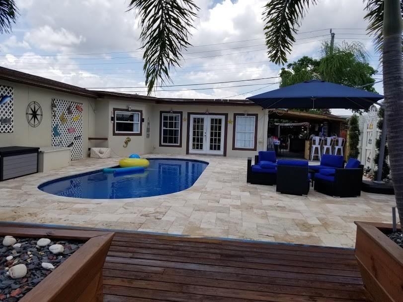 Huge corner lot, pool home with 4 bedrooms totally remodeled marble floors, beautiful pool area great for entertainment. Outdoor kitchen and 1/2 bath.. Circular driveway, a must to see!!!