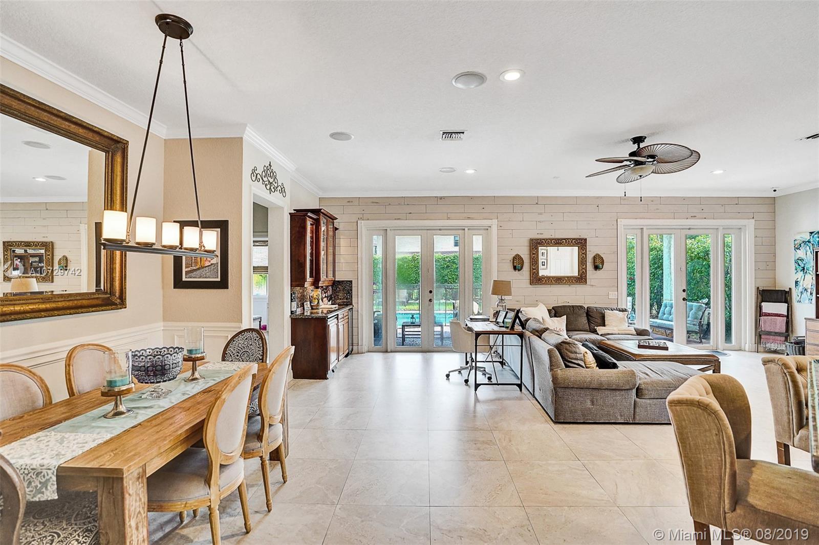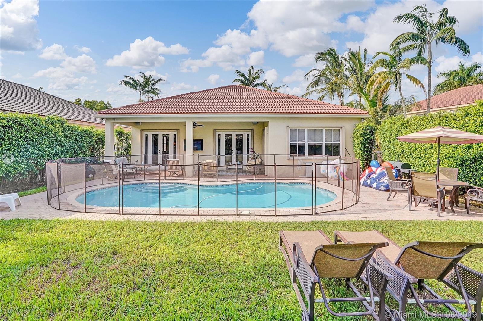 "Charming Savanna 1 story residence with 4beds /2baths/pool and an extra bonus Theater room built in the garage. Very nice curb appeal with professional landscaping w/beautiful plants and lighting .Home has elevated ceilings and great open floor plan, with beautiful modern trends. Additionally has RENOVATED NEW PORCELAIN SPANISH FLOORS,UPGRADED DOORS toward the back patio ,NEWER AC UNIT, an updated Wooden kitchen with newer SS appliances and much more...The property offers according shutters and roof is in great condition. Amazing community pool and just a few short blocks to a huge park w/ Tennis, Basketball, Volleyball, jogging and bike paths. Close to shops and restaurants, Sawgrass Mills Mall. GREAT LOCATION! WESTON BEST SCHOOLS!!"