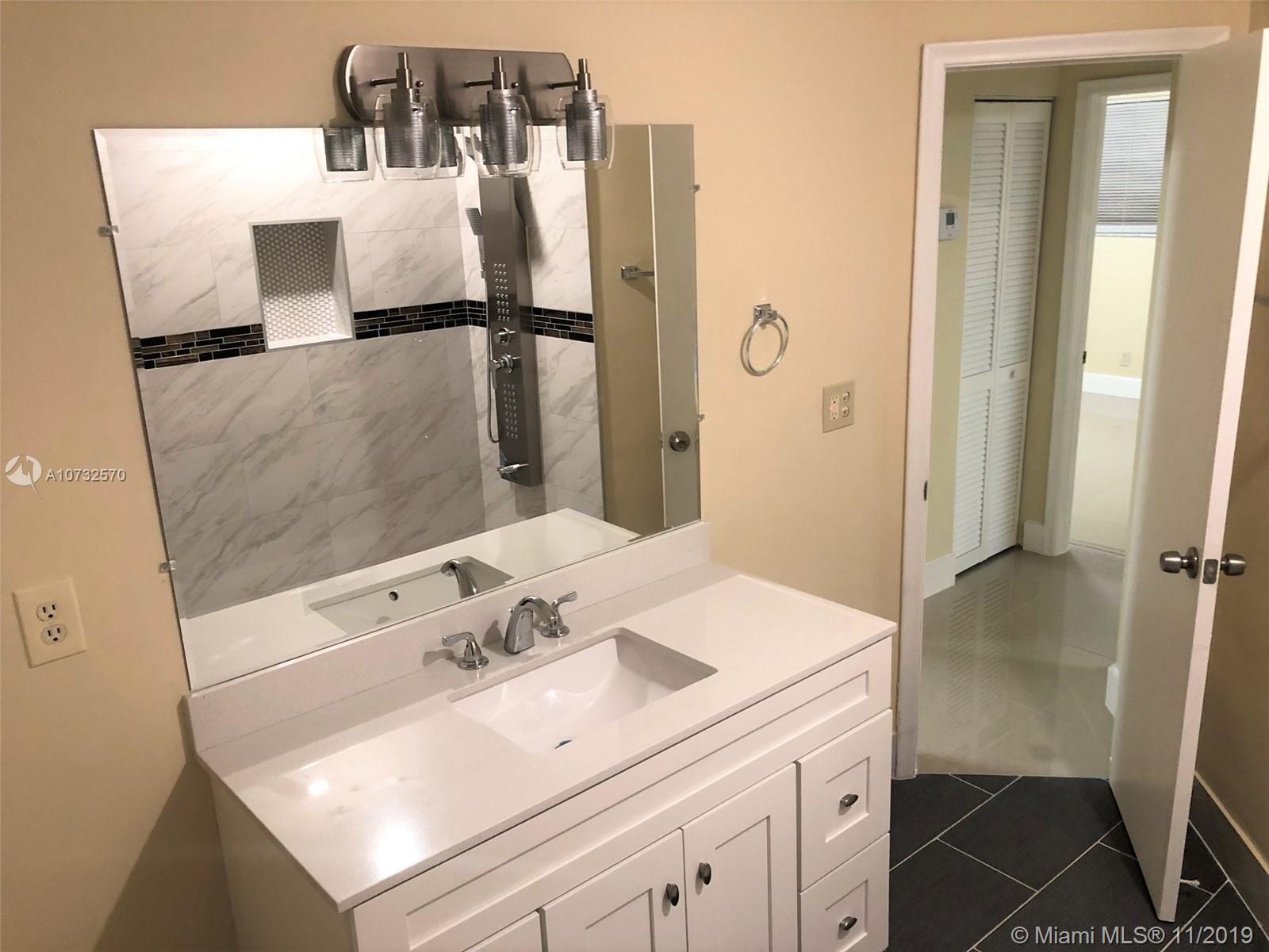 This beautifully updated home is move-in ready! Perfect location, spacious and bright 3 bedroom 2 bath with porcelain floors, kitchen with wood cabinets and granite countertops. Completely remodeled bathrooms, laundry area. Brand new A/C unit, electrical and LED Lighting inside and out This house is a must see, close to A rated schools, houses of worship, shopping and dining. Rear alley for garbage pickup & access, mango and avocado trees. Flat tiles roof. All the renovations done with permits. Plenty of parking in the new driveway