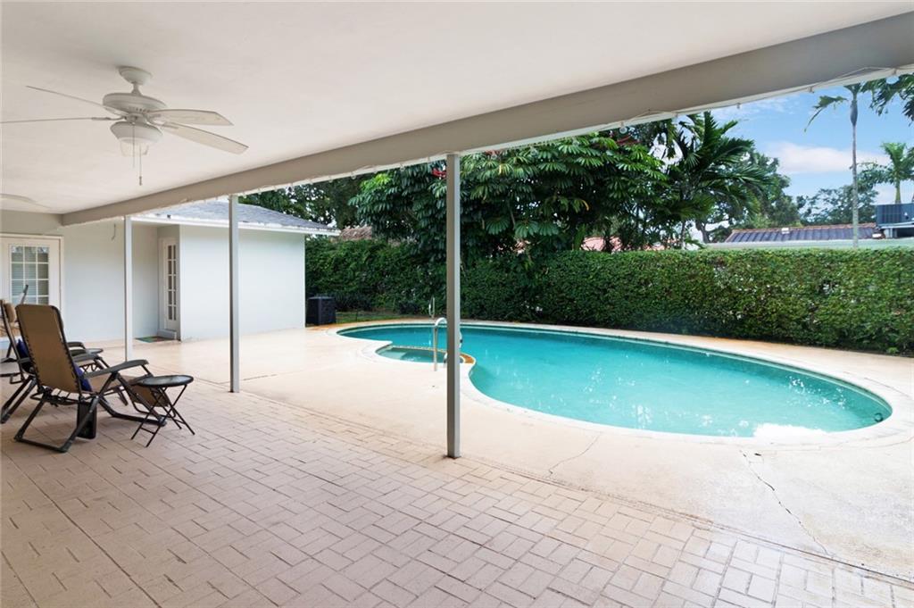 Rarely available large well maintained pool home located in the heart of Emerald Hills. This home boasts an open concept floor plan with formal dining room, great room and family room in addition to 4 bedrooms, 2 baths and a 2 car garage. A large circular driveway allows for ample parking. Large kitchen with stainless steel appliances and granite counter tops features pass through windows to the outdoor covered patio, ideally set up for entertaining. Separate large laundry/utility room. Newer roof is approximately 6 years old. Impact windows on front and sides of home, rear does not have impact windows. Fantastic location close to houses of worship, Emerald Hills country club and parks.