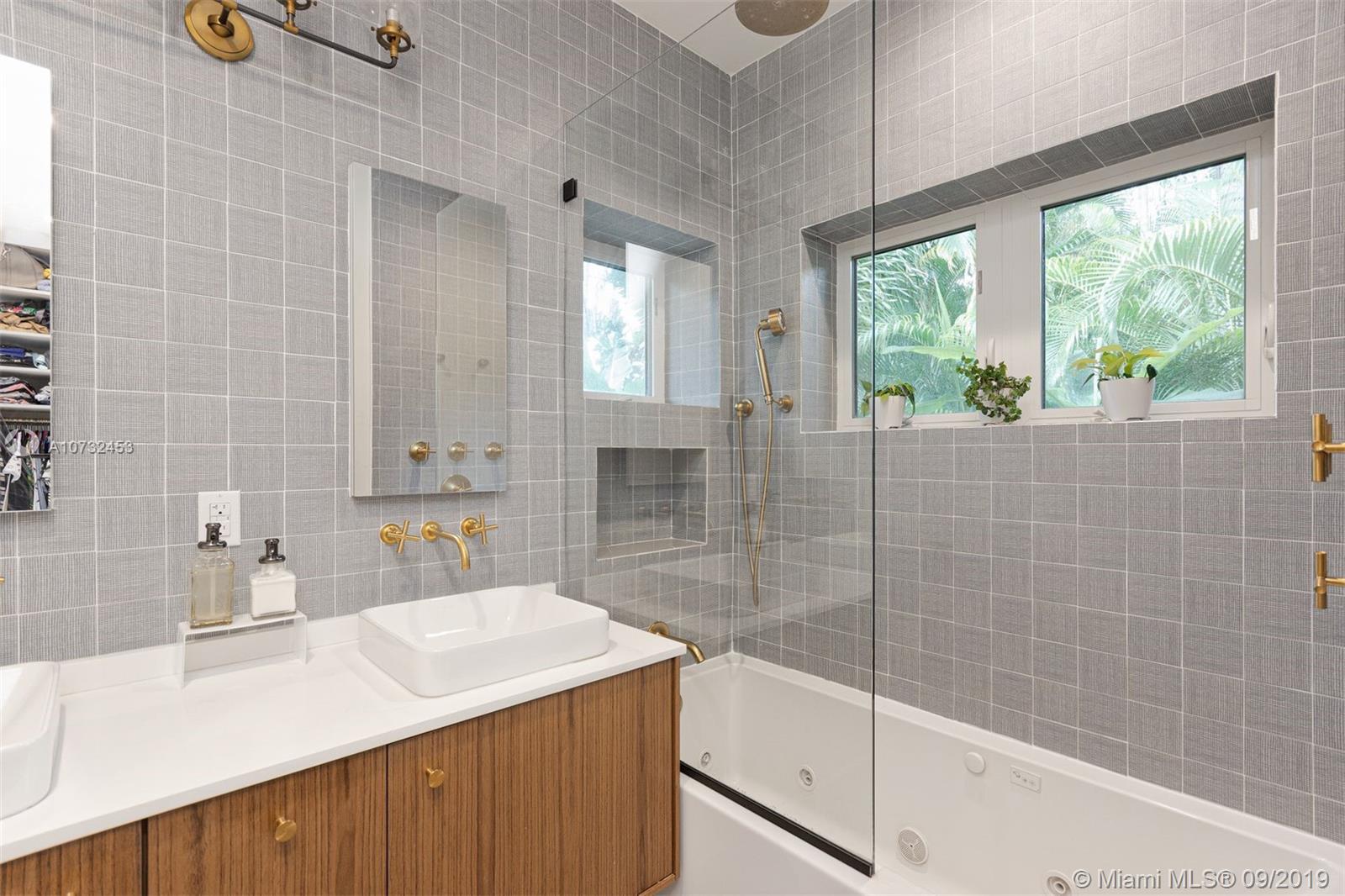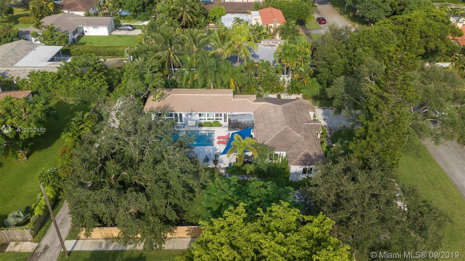 5 bedrooms and 4 full baths in this renovated Miami Shores home. Big corner lot, fenced yard with patio, outdoor kitchen and beautiful pool. Spacious living room ,dining room open to the kitchen and family room overlooking the pool and garden. The kitchen is updated with stainless steel and granite . Wood and tile floors, impact windows and doors, two zones of central a/c. Master bedroom overlooks the pool and garden, has big walk-in closet and new bathroom. Big inside laundry room and utility room, attached one car garage. Move in condition.