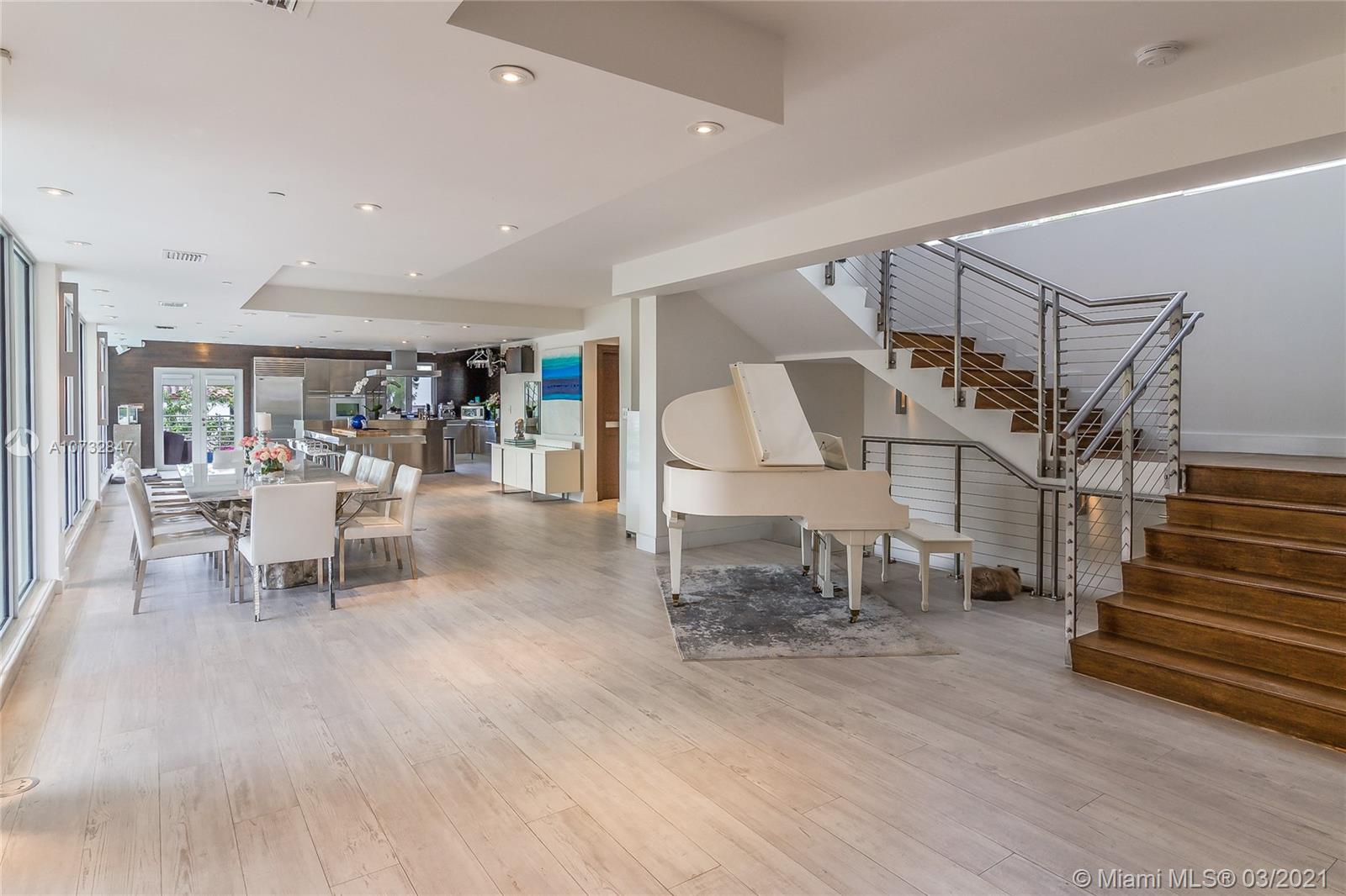 Modern, fully upgraded, three-story residence on prestigious Palm Island. In addition to the grand living and family room, open kitchen, two master suites, imported Italian finishes, this home has 2,500 SQ FT large sky terrace offering stunning water and sunset views. All impact glass windows, custom closets, cameras, security and sound system, are part of this rarely large home.