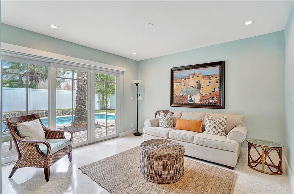 Extraordinary, fully upgraded single family home in Birch Park Beach Neighborhood on a beautiful finger street off of Fort Lauderdale Beach. Beautifully remodeled interior that gives you the feeling of that beach living serenity. Top of the line hurricane impact doors and windows. This home boasts 3 full size bedrooms, all with full en suite bathrooms and one half bath, plus a den that can be used as a guestroom, multi-media or an office. Full size laundry room and glamorous high-end appliances through out the kitchen. New roof, AC, pool system, exterior paint and irrigation system. Stunning and in impeccable condition, terrazzo floors in all the common areas and top of the line wood plank tile flooring in every bedroom.