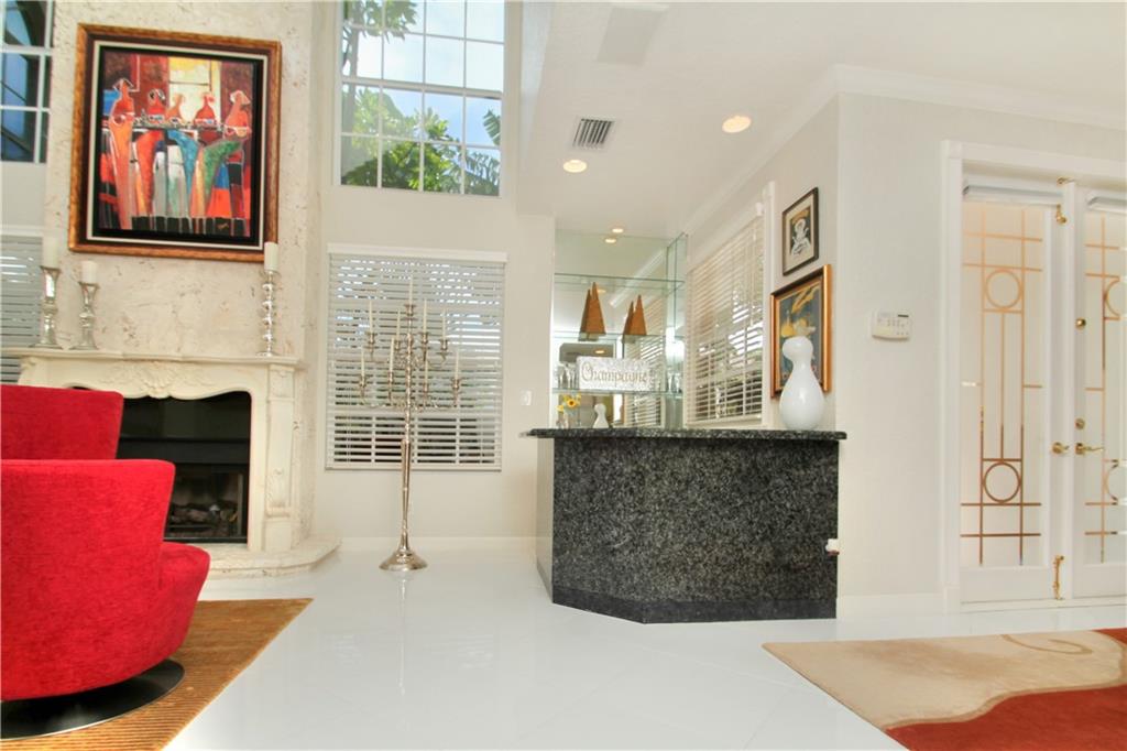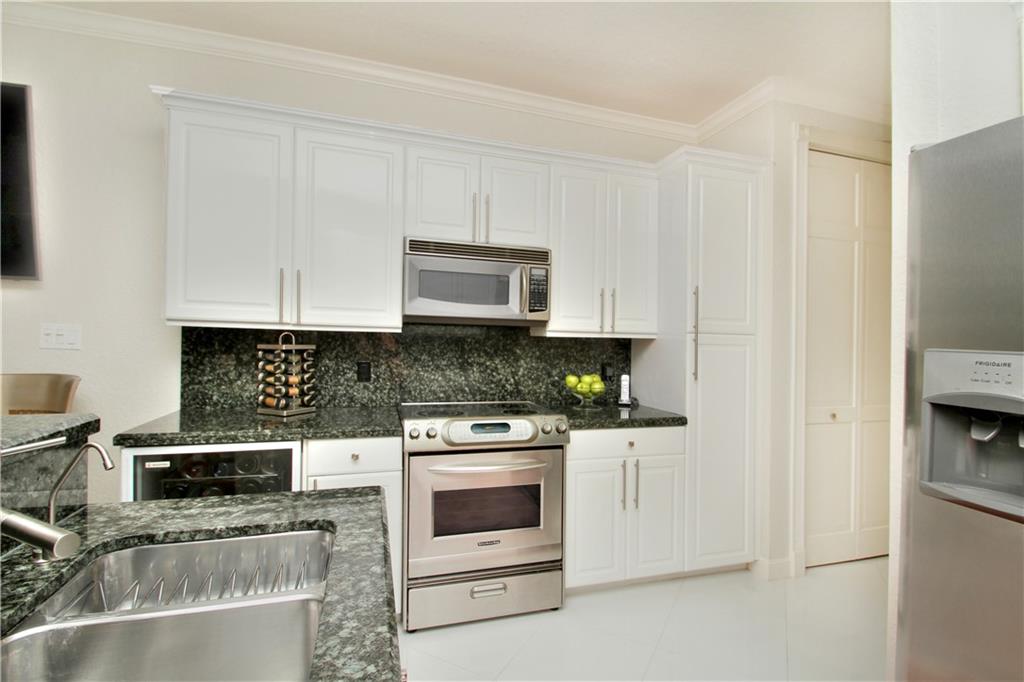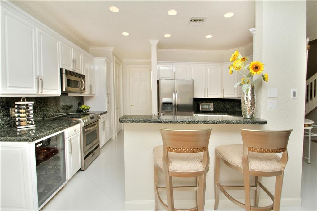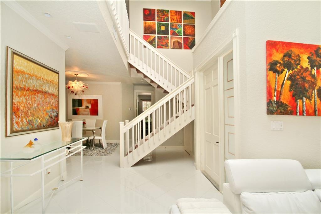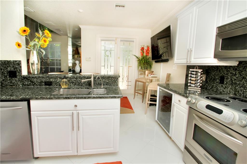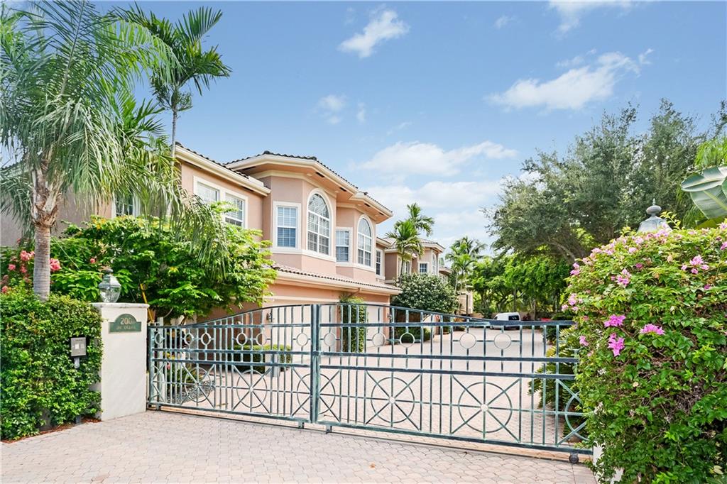 Beautiful corner unit town home in gated community has two story entry with tons of natural light. Many updates including new white porcelain floors downstairs, and bathrooms have all been stylishly updated. Gas fireplace, wet bar, spacious and open kitchen with bar seating and wine cooler, wireless surround sound throughout. Unit has it's own tropically landscaped patio complete with hot tub/spa and plenty of space for outdoor furniture. Hardwood flooring in 3 bedrooms upstairs. Downstairs den could be a 4th bed/office/family room. Two car garage, hurricane impact windows & BRAND NEW roof! Only a couple minutes to all the restaurants, entertainment, shops, art shows and events on Las Olas. (chandelier in dining room, mirrors in both downstairs bath & master bath do not convey)