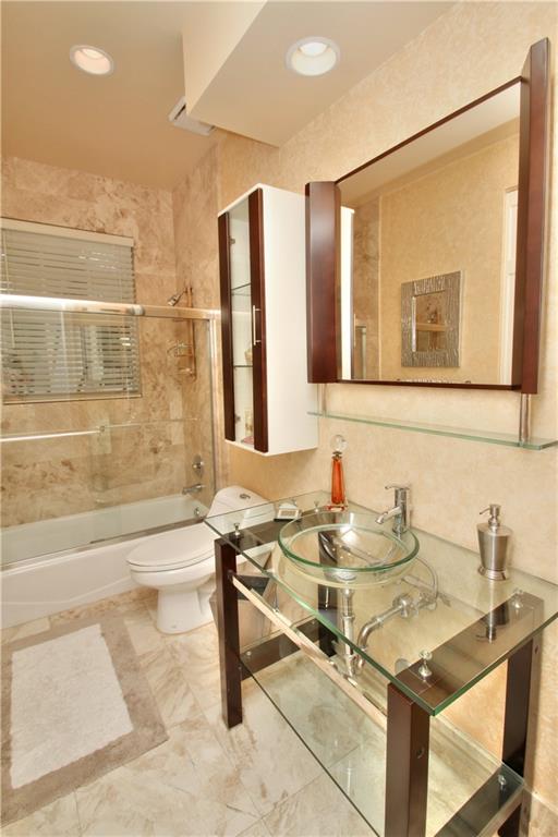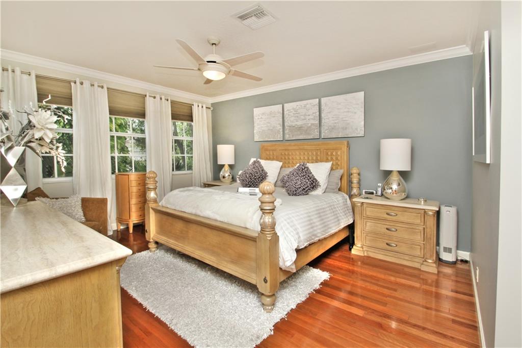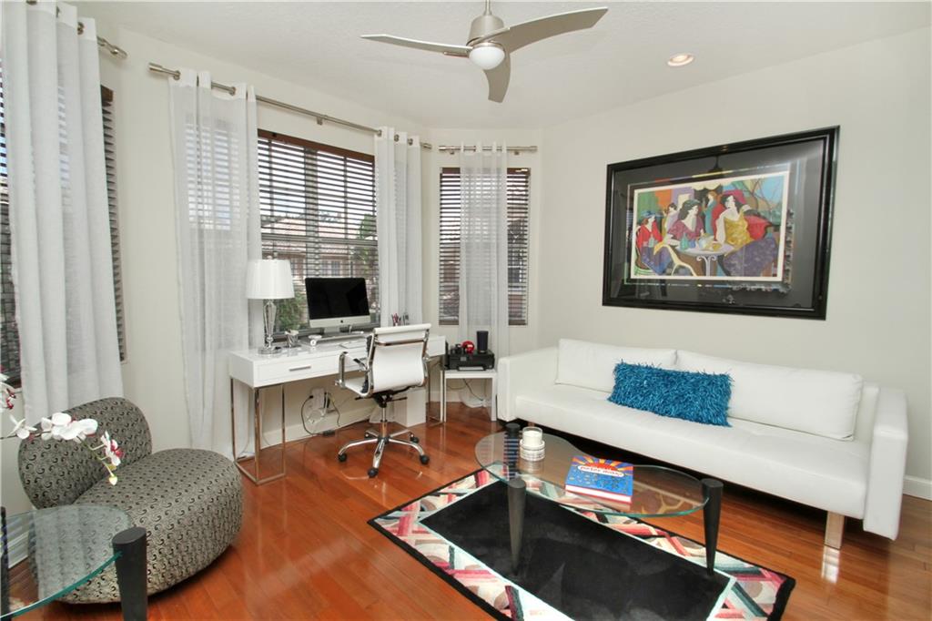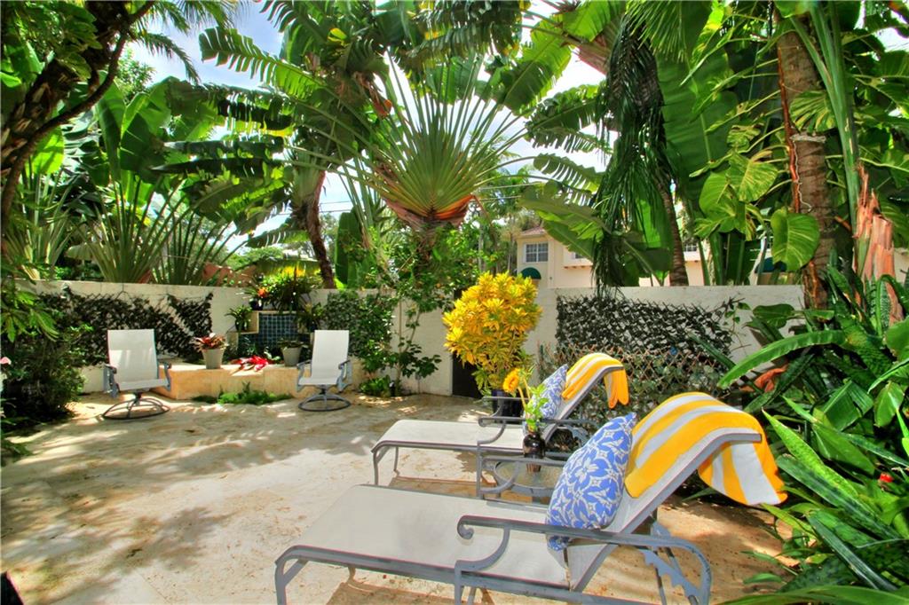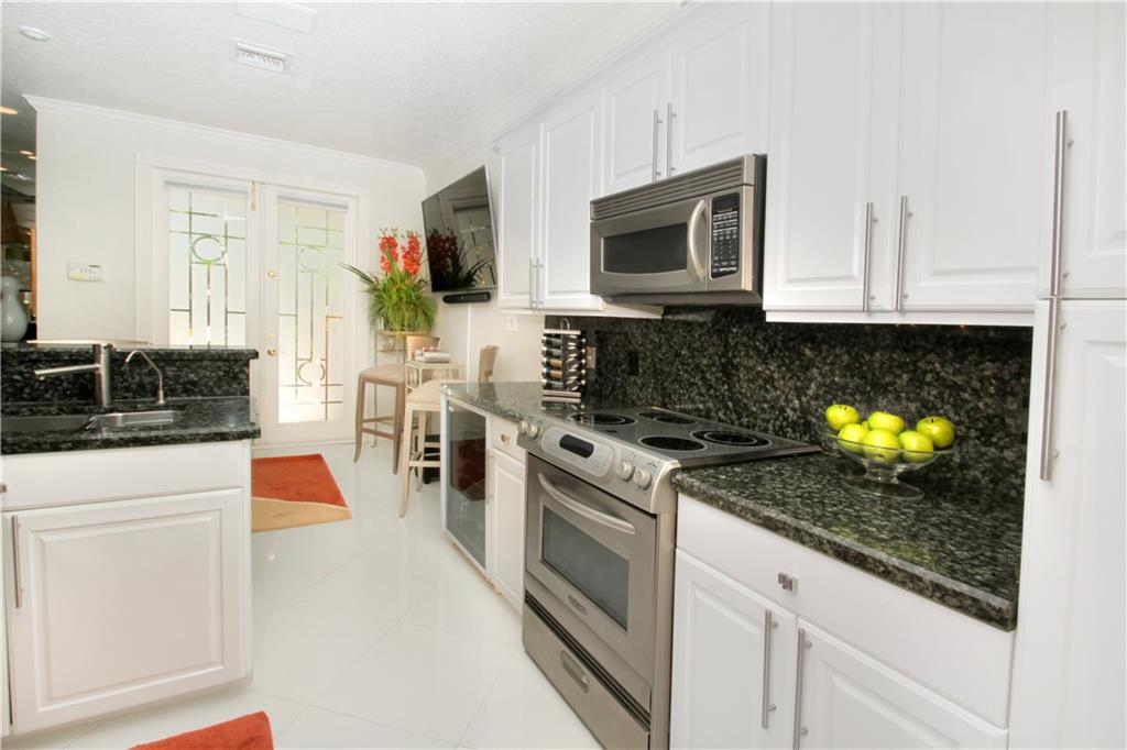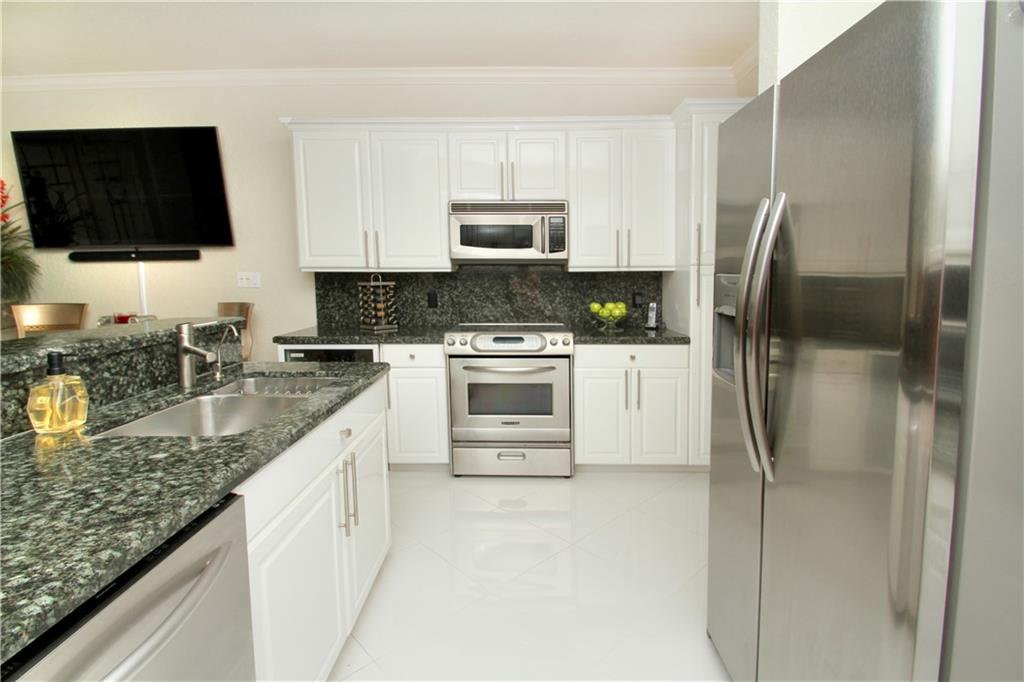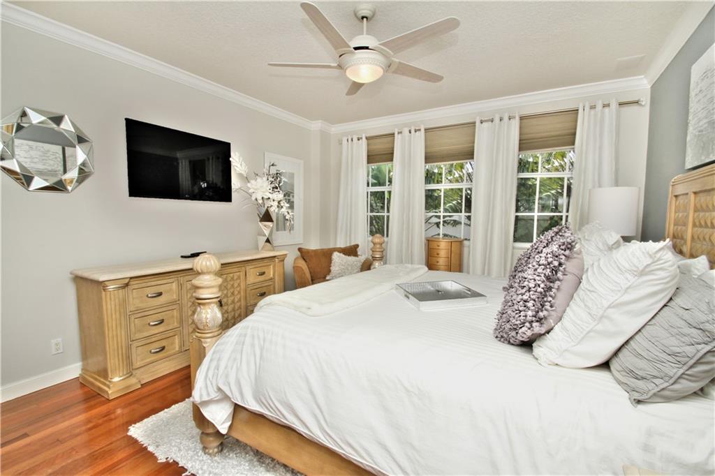 Beautiful corner unit town home in gated community has two story entry with tons of natural light. Many updates including new white porcelain floors downstairs, and bathrooms have all been stylishly updated. Gas fireplace, wet bar, spacious and open kitchen with bar seating and wine cooler, wireless surround sound throughout. Unit has it's own tropically landscaped patio complete with hot tub/spa and plenty of space for outdoor furniture. Hardwood flooring in 3 bedrooms upstairs. Downstairs den could be a 4th bed/office/family room. Two car garage, hurricane impact windows & BRAND NEW roof! Only a couple minutes to all the restaurants, entertainment, shops, art shows and events on Las Olas. (chandelier in dining room, mirrors in both downstairs bath & master bath do not convey)