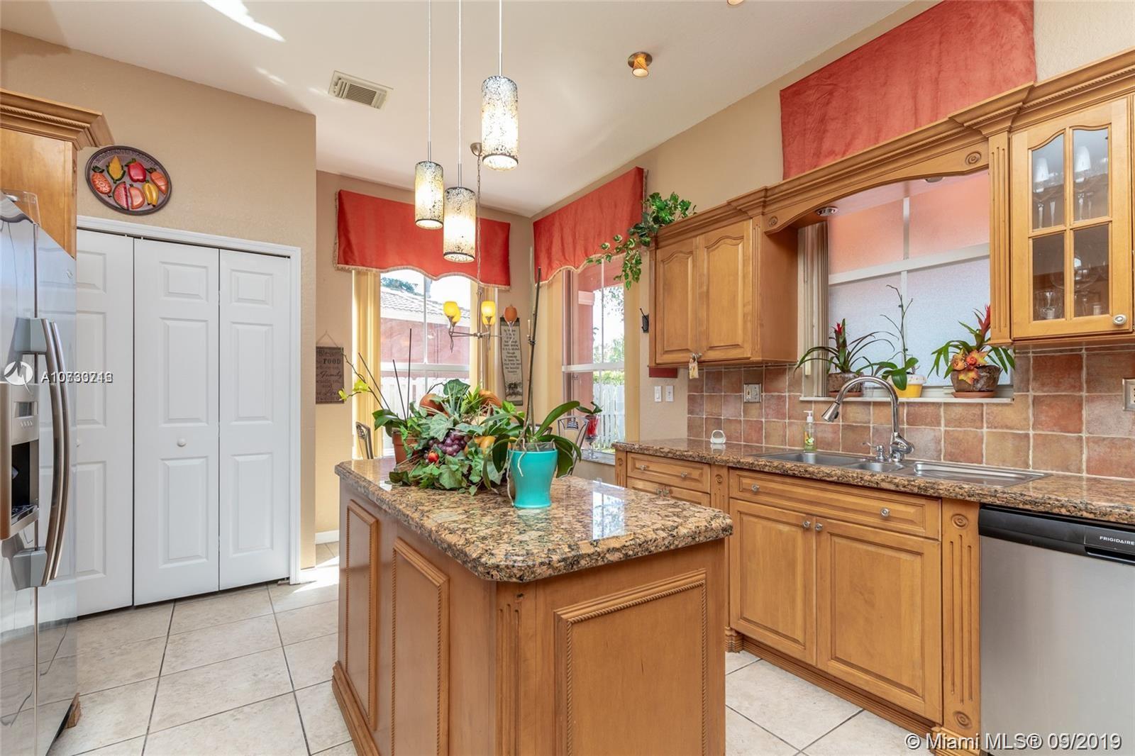 SPECTACULAR 4 BEDROOM, 2 1/2 BATH HOME, 2 CAR GARAGE WITH PANTRY AND CABINETRY THROUGHOUT. THE HOME IS PROTECTED BY IMPACT WINDOWS W/ARGON GAS AND IMPACT DOORS WITH 25 YEAR WARRANTY, 6 WINDOWS ON FIRST FLOOR ARE PROTECTED WITH ACCORDION SHUTTERS NOT IMPACT. FORMAL LIVING AND DINING EASILY FLOWS INTO LARGE FAMILY ROOM OVERLOOKING THE PATIO AND OVERSIZE KITCHEN WITH GRANITE COUNTER TOP, S.S. APPLIANCES AND BREAKFAST AREA OVERLOOKING OVERSIZE BACK YARD, PLENTY OF ROOM FOR POOL. ALL 4 BEDROOMS ARE ON SECOND FLOOR, LARGE MASTER BEDROOM WITH AN IMPRESSIVE WALK IN CLOSET FOR THAT CLASSY LADY, BATHROOM HAS SEAMLESS SHOWER GLASS DOORS AND LARGE TUB W/JETS, LAMINATE FLOORS ON STAIRS AND THROUGHOUT SECOND FLOOR. HOUSE IS IN IMPECCABLE CONDITIONS READY TO MOVE IN.