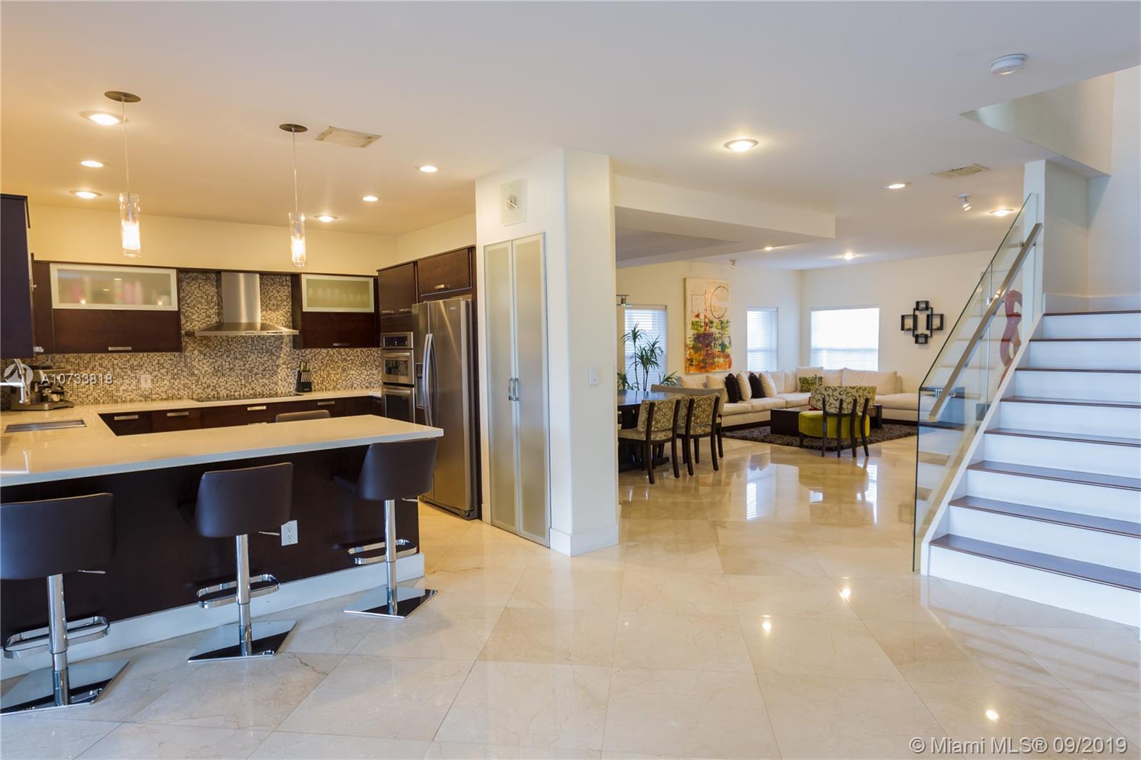 This luxury home located in a gated community of Doral Isles. 5 Beds and 4 1/2 bathroom. Marble floors on the first floor and wood on the second Floor. Italian cabinetry kitchen and top of the line appliances. Glass modern staircase, giving you a contemporary look. Spectacular patio with lake access to enjoy a water activity with the Family and friends. 4 Beds upstairs and 1 full bed with bathroom downstairs. Accordeon shuttles. Doral Isles is well known for the amenities and luxury resort style living.