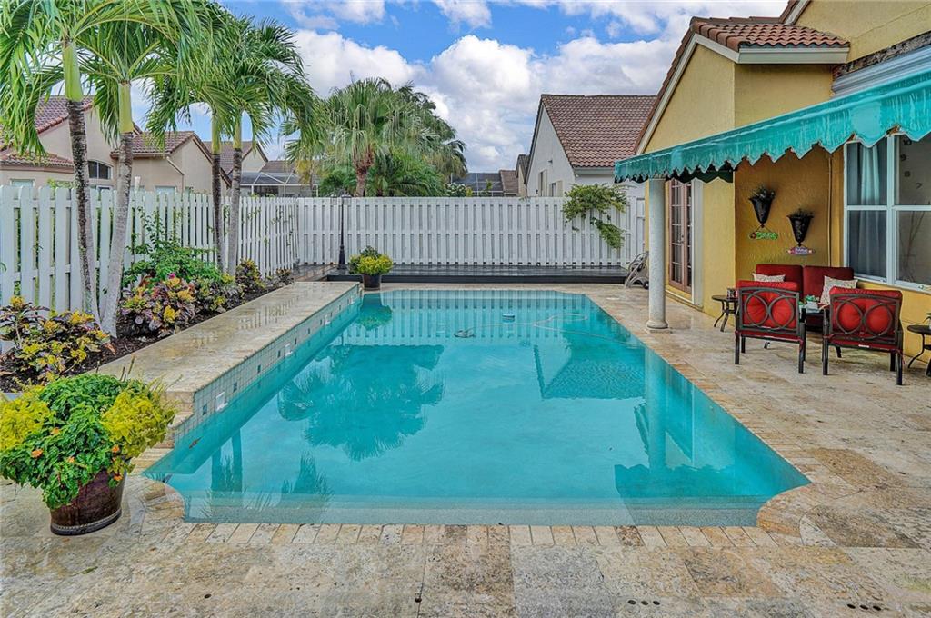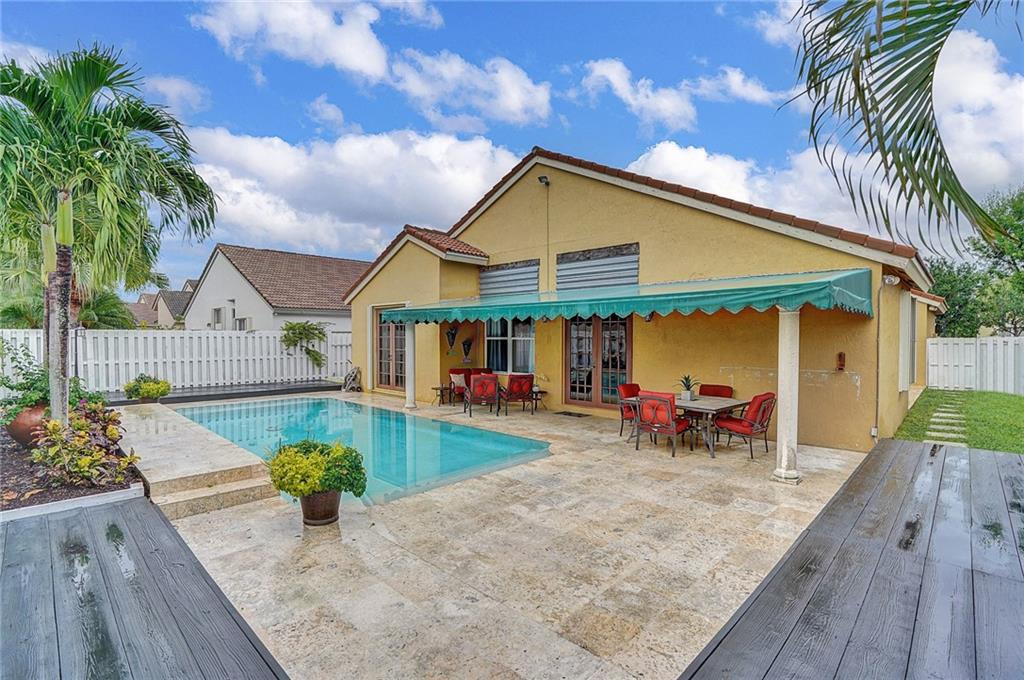 This gorgeous 3/2.5 pool home in West Miramar will fascinate even the choosiest buyers. Home is light and bright, featuring many large windows and vaulted ceilings. Among the many wonderful features of this home is a huge, updated kitchen with stainless steel appliances, an extremely large master bathroom with shower and separate soaking tub, a large 15x30 pool with wooden deck, an updated half bathroom, and a courtyard perfect for entertaining, growing a vegetable garden, or just about anything. Tile flooring throughout entire home. The accordion shutters make hurricane preparation easy. Pride of ownership at its best here with only one owner since the home was built. Hurry, this one will not be around long!
