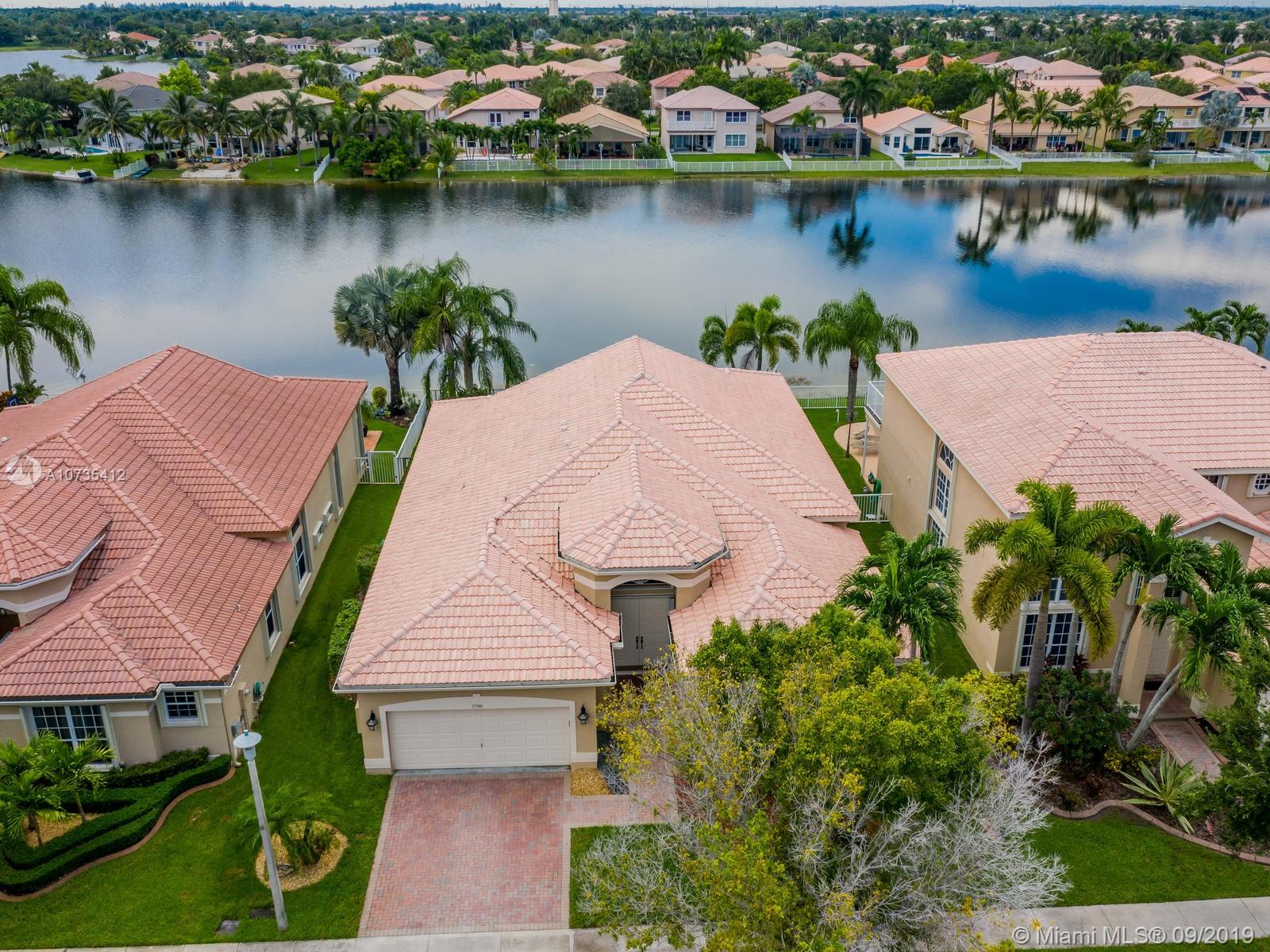 Spectacular lakefront view from this contemporary 4BR/3BA one story in Silver Lakes/Pelican Sound. 4th features french doors - office/bdrm or gym. Designer upgrades thru-out. New granite/upgraded appliances, plantation shutters in living & family rooms, wood laminate floors in master & 4th, designer tile in main areas, renovated master & secondary baths with modern finishes, two bedrooms feature wood-like tile, majestic dining room chandelier, recessed lights thru-out, new washer/dryer & water heater, oversized lake lot w/fenced backyard & plenty of room for a pool. Gutters & Accordion hurricane shutters. Newer A/C with warranty. The exterior was painted & new front landscaping installed. An automatic sprinkler system/lake-fed. Guard gated with roving patrol. 3 Way split floorplan.