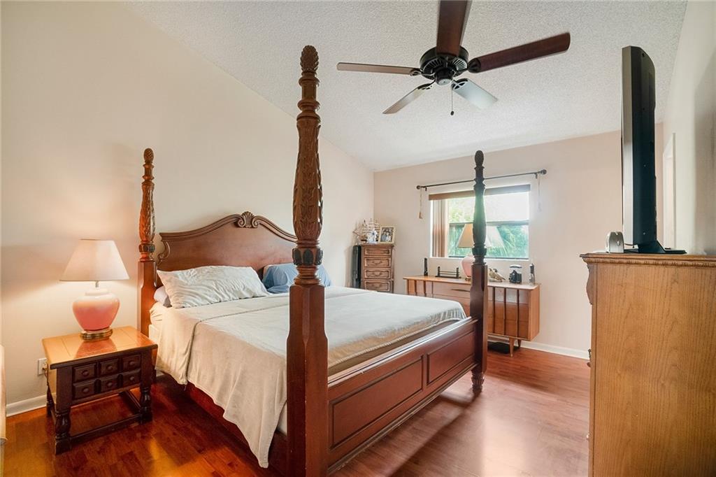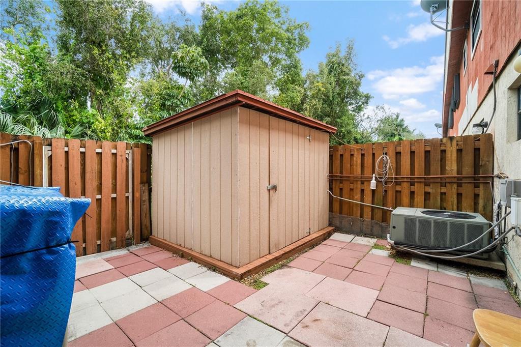 Beautiful, well maintained loft style townhouse! Home features 2 full master suites with walk-in closets, one downstairs and one upstairs. Upstairs also has loft style den/office with plantation style shutters that open and close for privacy. (Can easily be removed if buyer wishes!) High vaulted ceilings open the unit with natural light coming in through the skylight. Large, private front and back patios. Back patio features large storage shed with full size washer and dryer. New 3 ton A/C unit placed 5 years ago and new water heater placed 2 years ago! Stove and Fridge replaced in the last 5 years as well. Home is deeded 2 parking spots right in front of unit! Community pool included with low maintenance fee! Bring your buyers, they won't be disappointed!