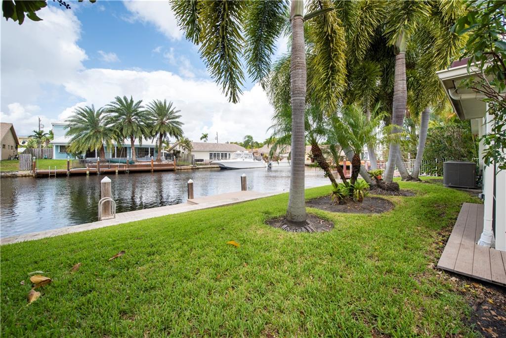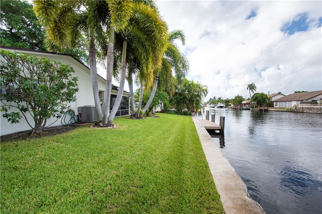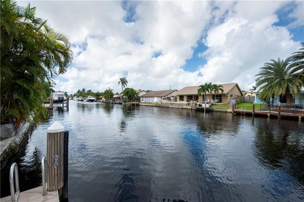 Extremely well kept 3 bed 2 bath home on Pompano Beach canal. Pride of ownership shows in this home! Freshly painted exterior with a lush front yard and tropical back yard featuring palms overlooking your own private 21' dock and canal. Single fixed bridge at Federal Highway allows for ocean-access boating. Inside you will find an expansive living and dining area leading out to a covered and screened Florida room. A renovated kitchen with granite counter tops and ceramic floors features a large breakfast area opening out to the screened Florida room and has views of the back yard and canal. Three nicely-sized bedrooms bedrooms feature new laminate flooring and you have your choice of two renovated bathrooms; including an en-suite with marble shower and granite-topped wood vanity.