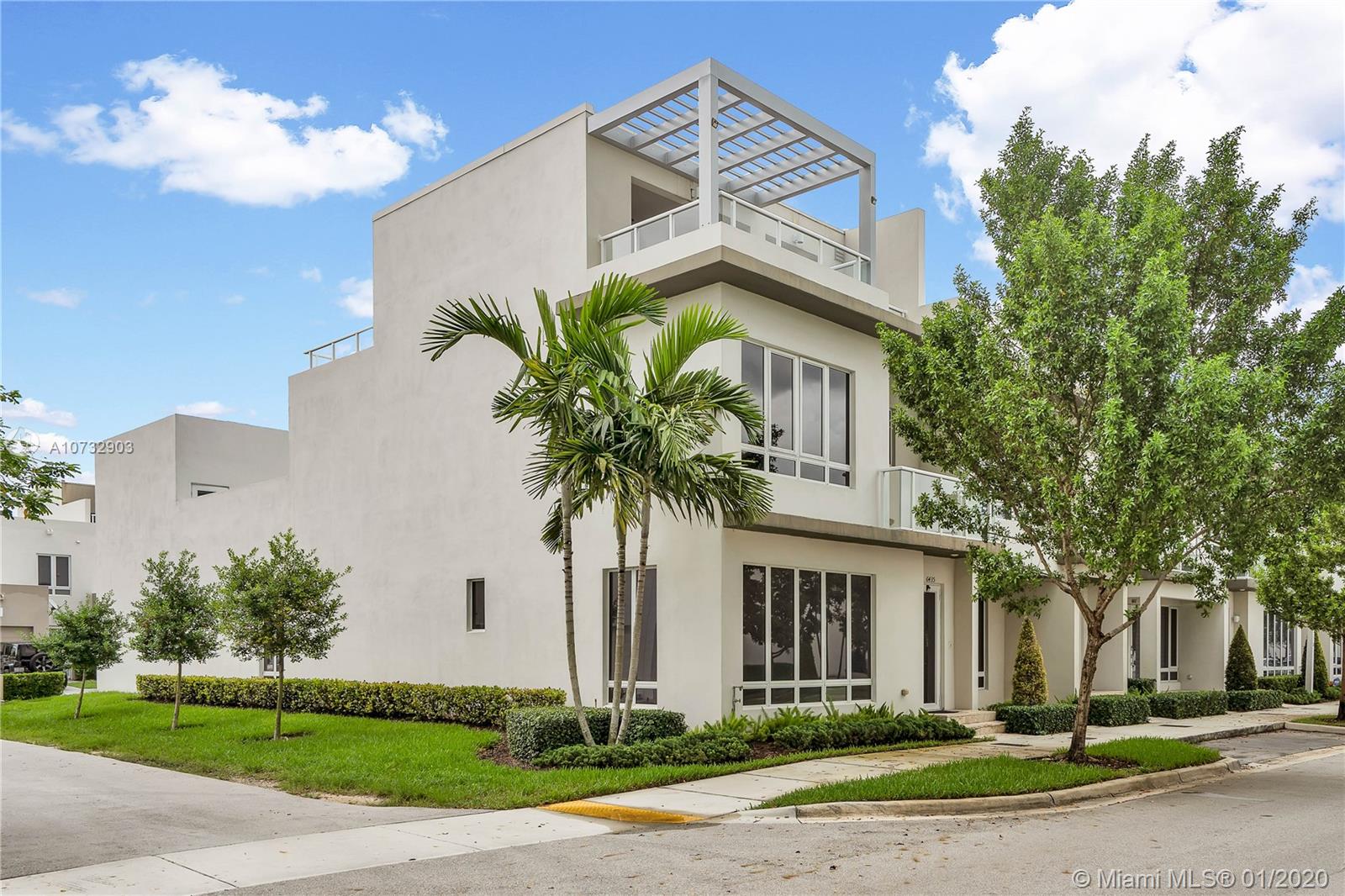 Gorgeous and contemporary concept of 3 bedrooms, 3 bathrooms, plus an efficiency (suite with bath, a/c, laundry, kitchenette) corner unit located in Landmark at Doral, with Sky view terrace with BBQ kitchen and ½ bathroom. Open layout, exterior impact doors and windows, porcelain tiles on the first floor, stainless steel handrail, kitchen with quartz countertop and stainless steel appliances, 2 car garage, solarium, patio. Wooden design tile on second floor. Luxury Club with resort style. Doral is a city that enjoys an excellent location and is surrounded by many expressway 826, 836, turnpike, and where residents enjoy A grade schools, shopping malls, restaurants, source of work due to its proximity to the Miami International airport and headquarters of large companies.
