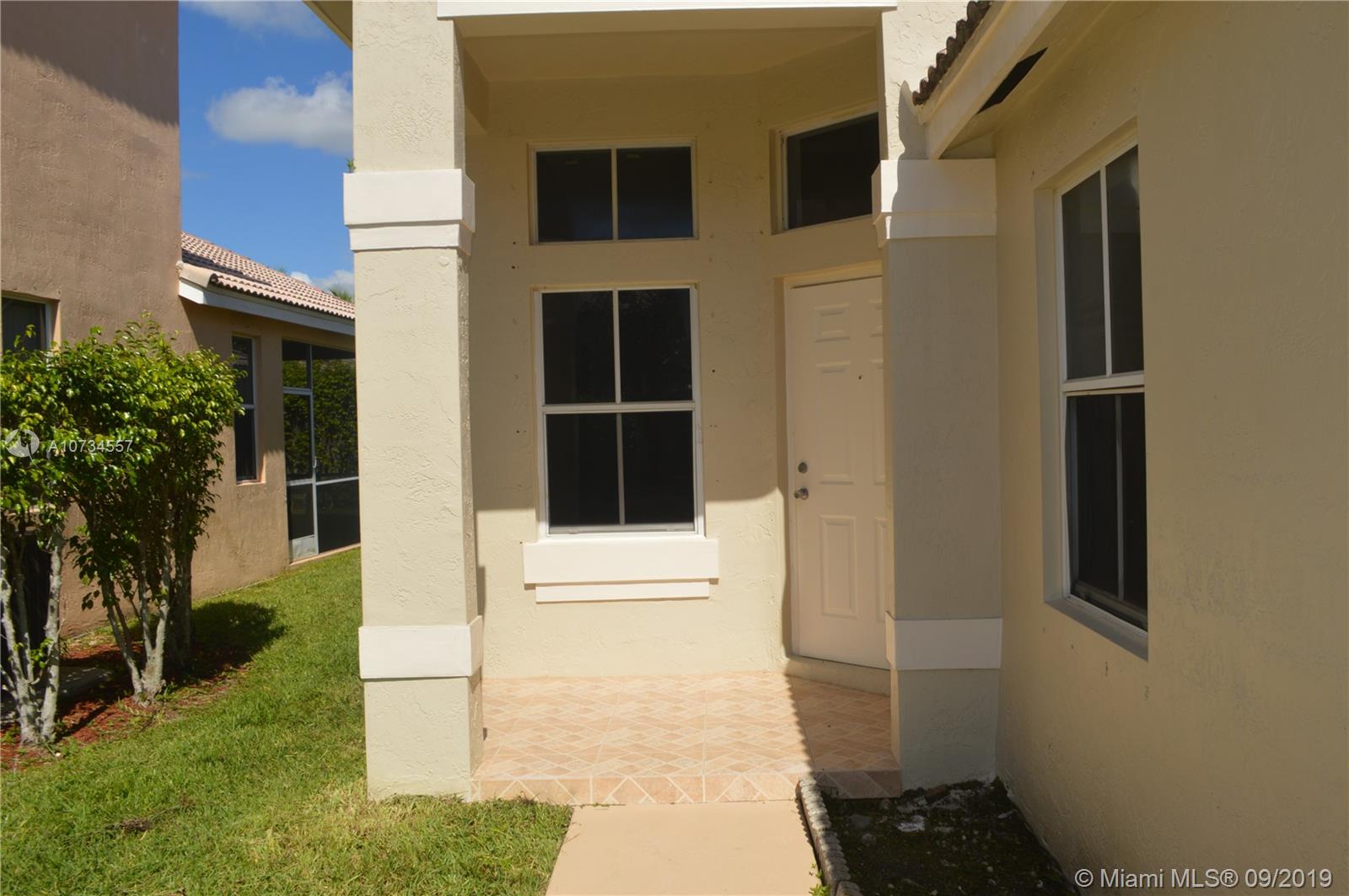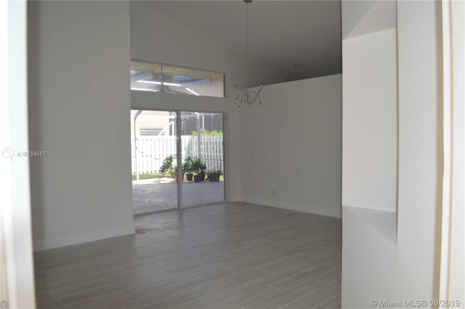 Beautiful house with spacious and bright living areas, 3 bedrooms, 2 baths. New modern floors, bathrooms and spectacular kitchen ready to be used for the first time. Private screened patio with new ceramic floors perfect for outdoor enjoyment. Hurricane shutters. Ample garage with 2 storage units. This pretty house is conveniently located very close to The Falls community area including pool, basketball court and play ground. A+ rated Schools and easy access to major highways.