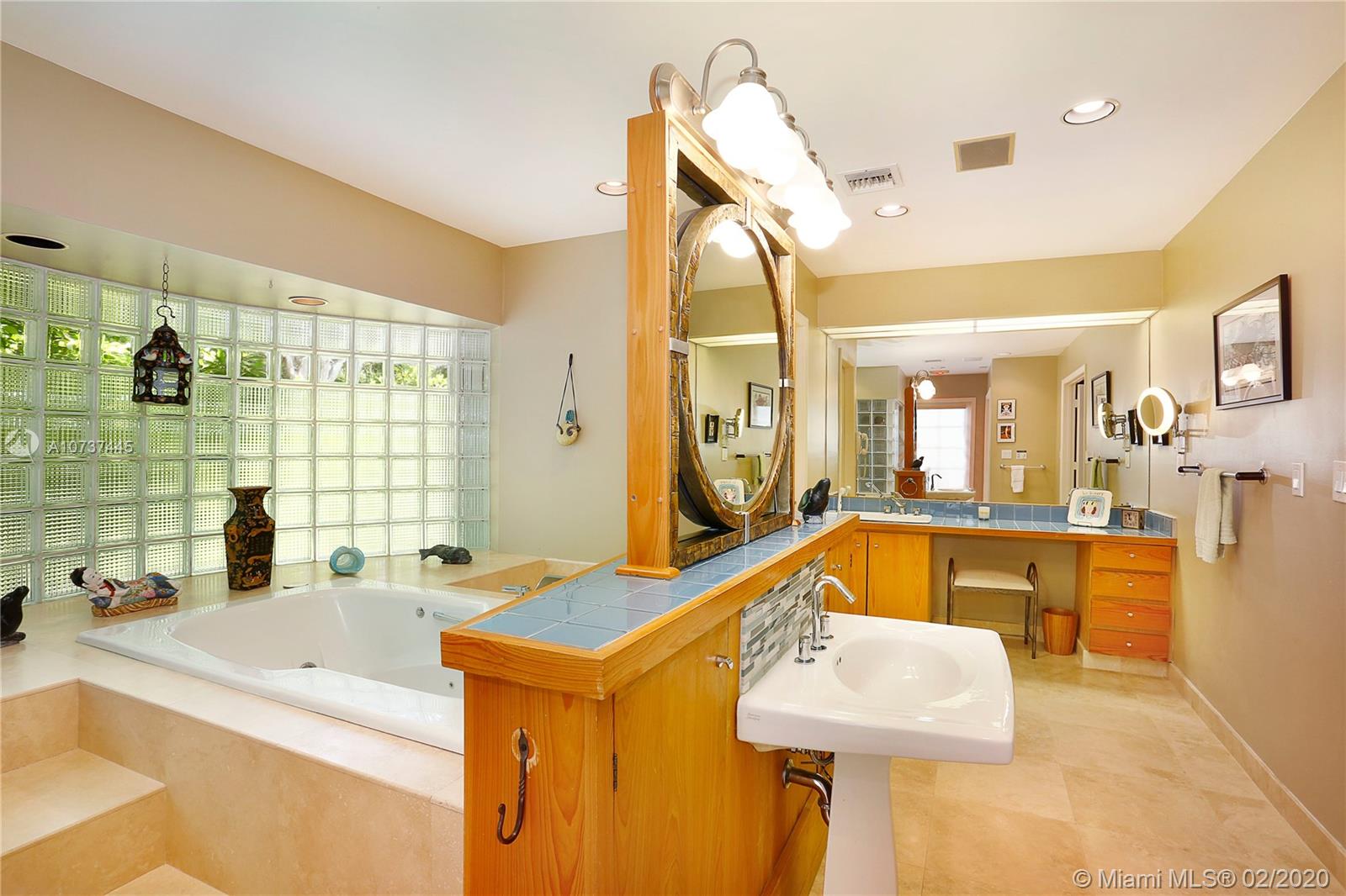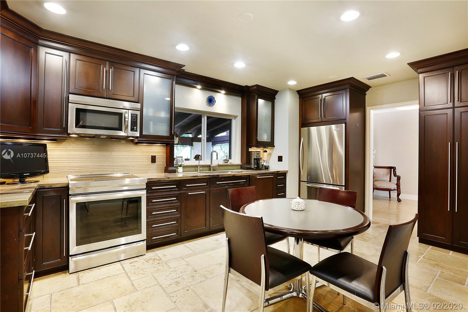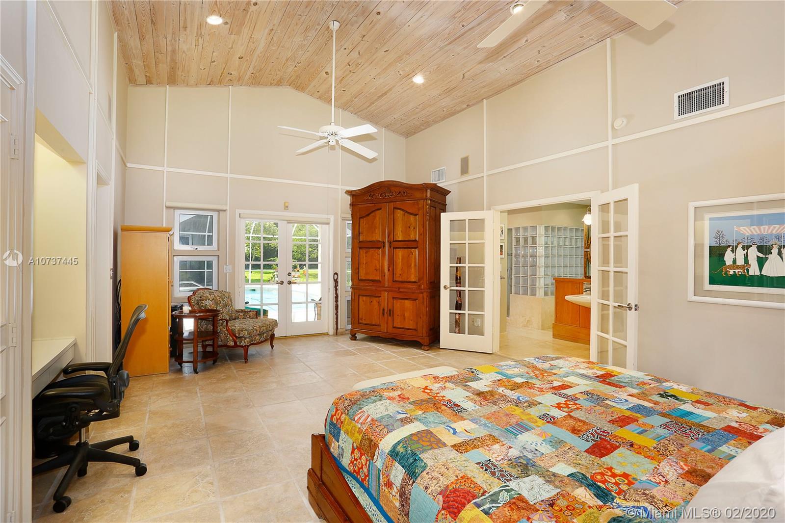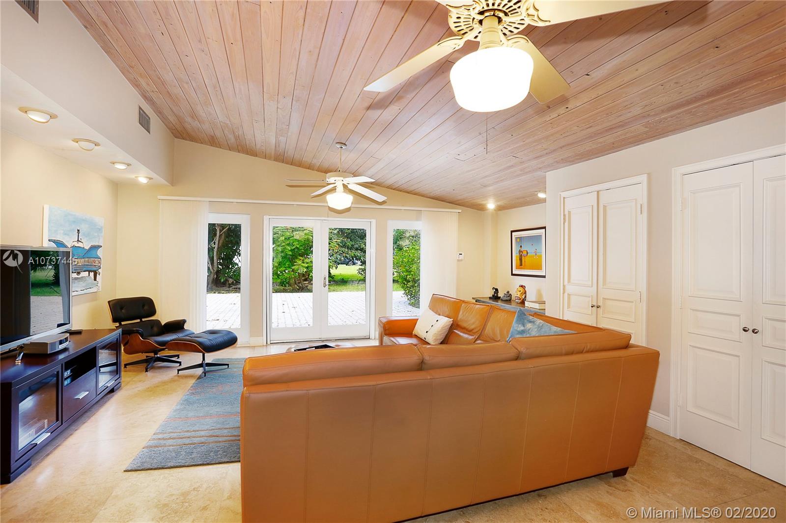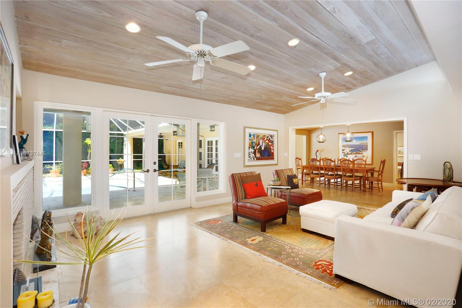 Sprawling acre nestled on quiet street in Pinecrest with municipal water! New roof in 2018! Master suite addition overlooking sparkling pool/patio with high vaulted tongue & groove ceilings and spacious closet. Updated eat-in kitchen with SS appliances, granite counter tops & wood cabinets. Formal living room with vaulted ceilings, dining room and huge family room. Desirable floor plan is conducive for multi-generational families having a split plan with 5 Bedrooms (3 with en-suite baths) and 4 Bathrooms. Travertine marble floors, crown molding, cove lighting, solid wood doors, some impact windows and so much more! The lot is amazing with mature trees and lots of room for your family, your pets & your toys!