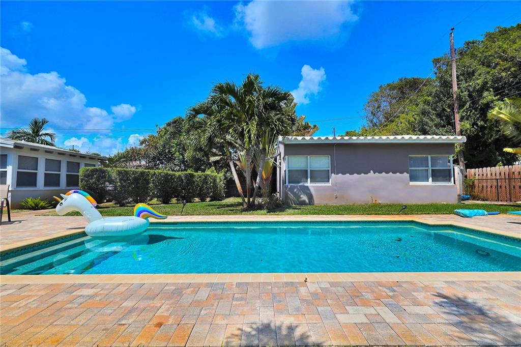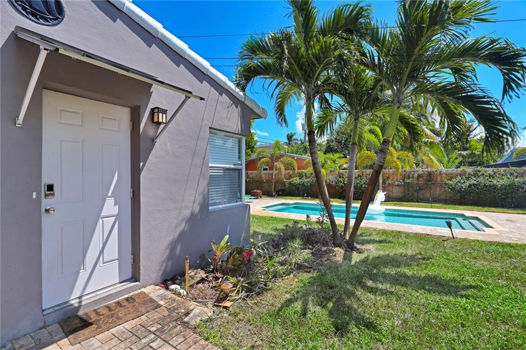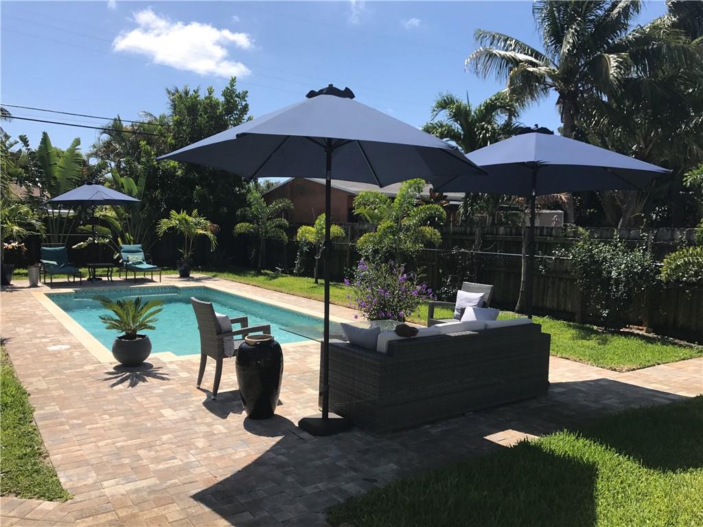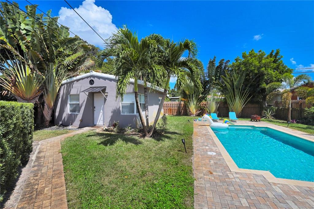 A very private enclave awaits. This home is ideal for a primary owner or for an investor looking for a great return. Main house was recently updated with impact windows throughout, newer AC, newer electric, 3 year old kitchen, large master bedroom with ample closets, en suite bath and second bedroom with hall bath. Sunroom was converted to a den/office with a wall of impact windows overlooking the private yard with new salt water pool, outdoor shower with hot and cold water, lots of outdoor paver areas for entertaining and a view of the one bedroom cottage. The cottage was also recently redone with open kitchen and living area. Stainless steel appliances, central air, lots of light. Large slate tile bathroom. Blocks to Publix, Warsaw, and so much more.