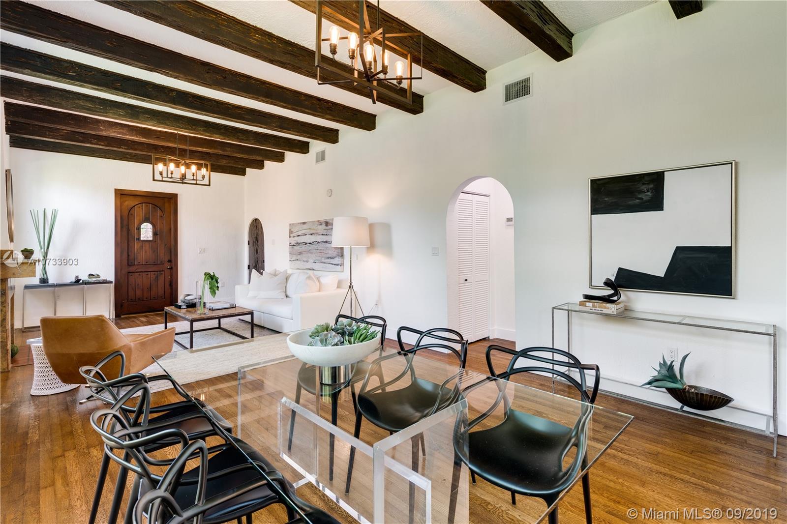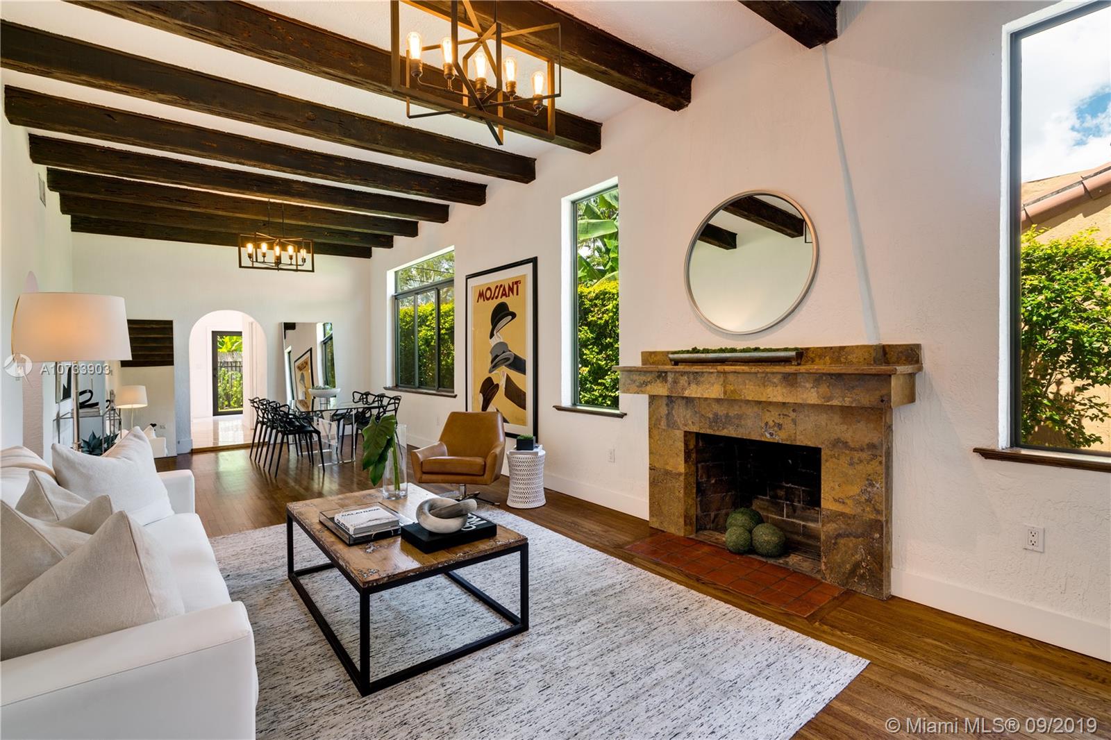 1926 was a very good year for Mediterranean homes in Coral Gables. And this Old Spanish exemplifies the charm of that genteel era with stucco walls, wood floors and working fireplace brought into the present day with impact windows, modern kitchen and updated bathrooms. A grand open living and dining room crowned by a vaulted and beamed ceiling anchors this graceful home. Every home tells a story and this one is ready for its next chapter. Fabulously located near Sunset Drive and all the conveniences of living in the heart of Miami. Sunset Elementary School! Actual living square footage is 2276'. A Very Special Home.