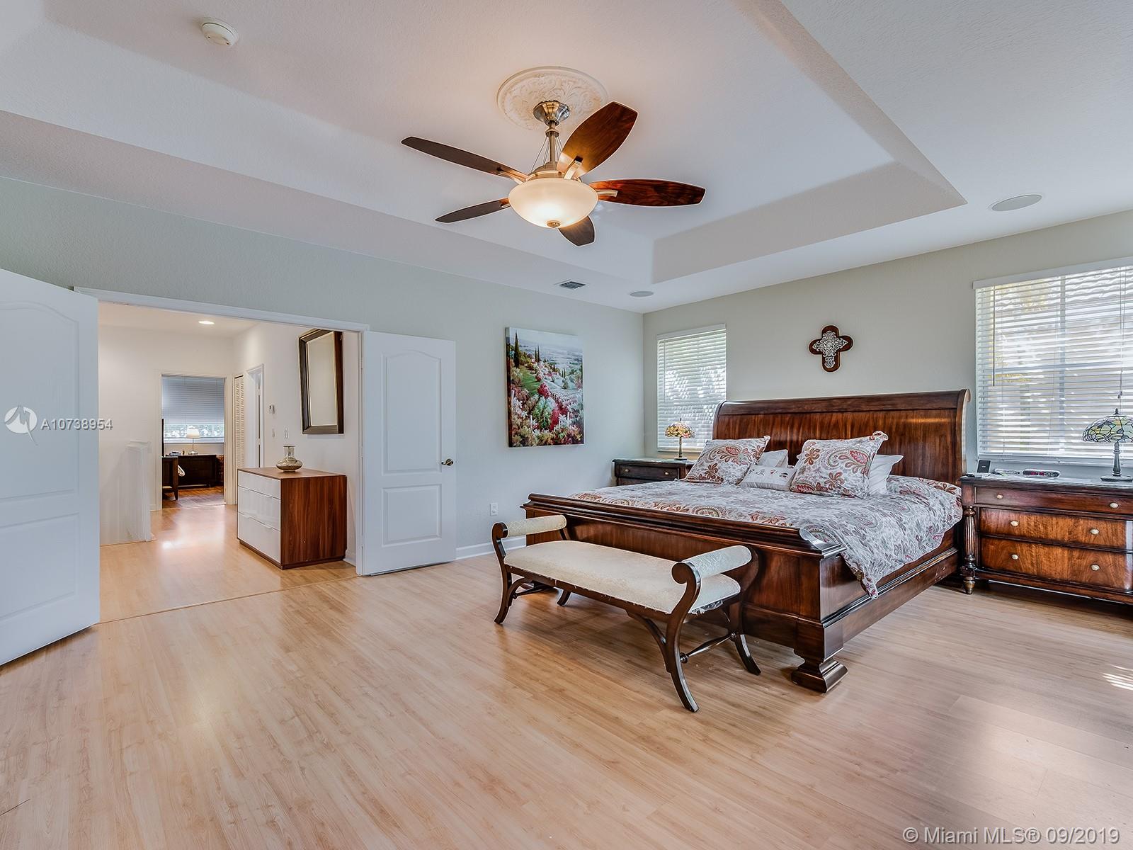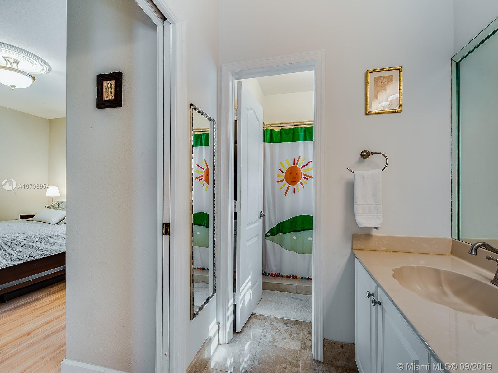 Excellent location in the heart of Doral. Beautiful & spacious, move-in ready home in very well maintained Goldvue Estates. House is 4 Bed/3.5 Baths w/ 2,996 SF. Master Bedroom & Bedroom #2 each w/ ensuite bathrooms. Bedroom #3 & #4 share a Jack & Jill bathroom. Half Bath located on the 1st floor. Ample Family Room & Den w/ built-ins, great for a home office. Beautiful remodeled kitchen, w/ granite counter top & SS appliances, breakfast nook w/ bay window overlooking the backyard. Lot is 5,824 SF. Spacious paved backyard w/ room for a pool, BBQ, and a covered sitting area w/additional canopies. Accordion shutters on 2nd floor & panels on 1st floor. Chandelier & wall sconces in Dining Room, & chandelier in 4th bedroom are not included in the sale. HOA includes: cable, internet & alarm.