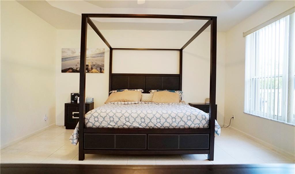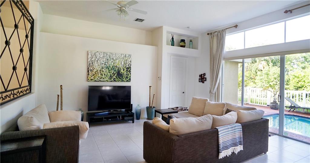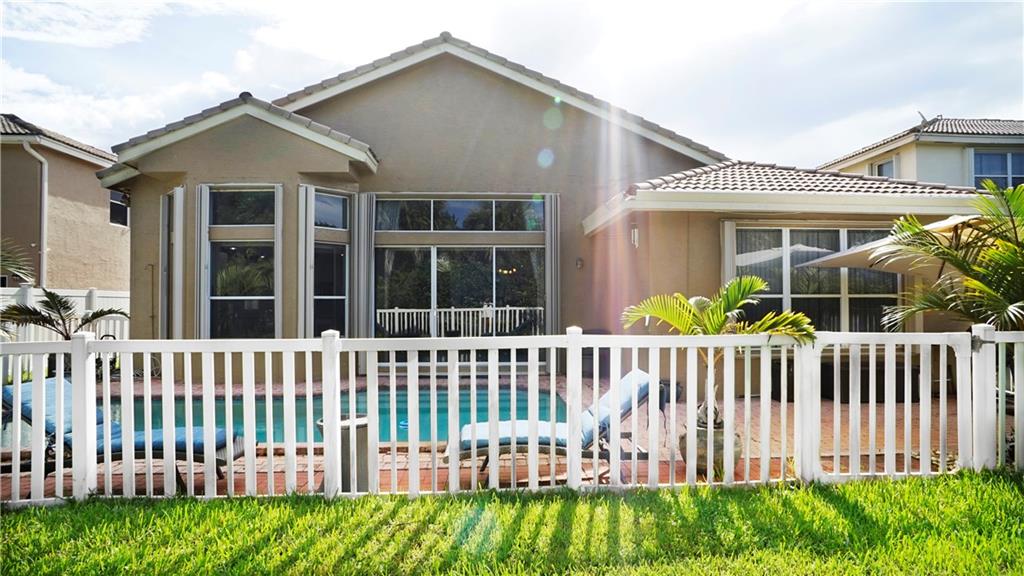 Beautiful 5 Bedroom, 3 Bath with Pool in Wonderful Guard Gated Community. 12ft tall Soaring Volume Ceilings, Huge Rooms, Bright and Freshly Painted, Completely Tiled – NO CARPET. Tremendous Kitchen with additional Cabinets, Newer Stainless Steel Appliances, Double Oven, Breakfast Nook, Opens to Large Family Room. Split Bedroom Floorplan, Custom Drapes, Large Laundry Room with Utility Sink, Accordion Hurricane Shutters, Pavered Driveway and Pool Area, Newly Resurfaced Pool, Quiet Privacy with NO REAR NEIGHBORS. Community Has Full Gym and 2 Community Pools. Fabulous Neighborhood and Terrific Schools. 5th Bedroom currently used as a den. Close to Great Shopping and Restaurants. Very Low HOA. HURRY!!!