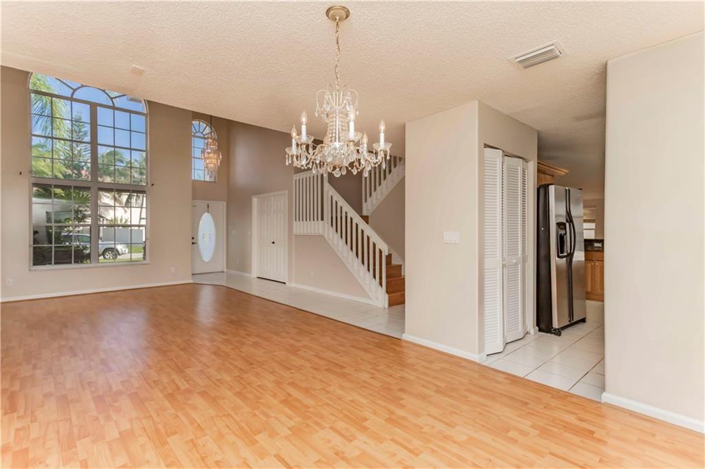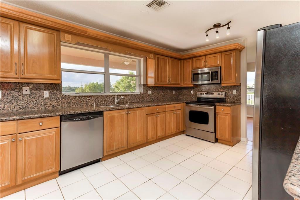GORGEOUS 4/3 WITH LOFT/5TH BEDROOM, ONE BEDROOM ON THE LOWER LEVEL. HOME IS ON THE LAKE WITH A HUGE BACKYARD! THIS HOME FEATURES TILE FLOORING AND WOOD LAMINATE FLOORING THROUGHOUT. UPGRADED KITCHEN WITH GRANITE COUNTERTOPS, HARDWOOD CABINETRY AND STAINLESS STEEL APPLIANCES. BATHROOM DOWNSTAIRS IS COMPLETELY UPGRADED. SCREENED PATIO OVERLOOKING THE LAKE. HUGE BACKYARD WITH PLENTY OF ROOM FOR A POOL! HOME IS PROTECTED BY ACCORDION SHUTTERS. HOME WAS JUST PAINTED INSIDE.