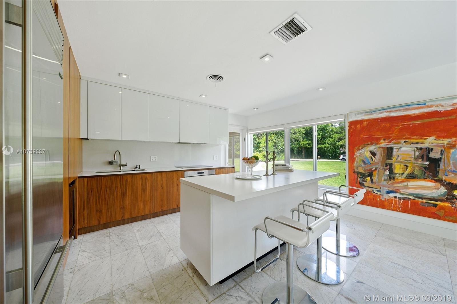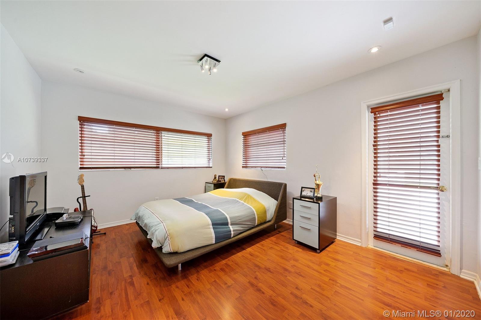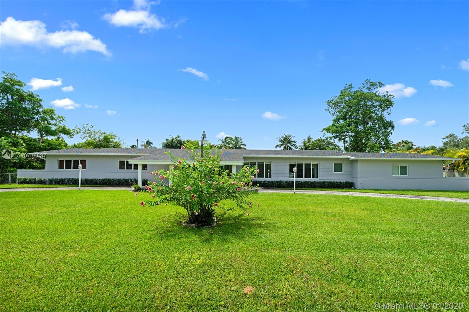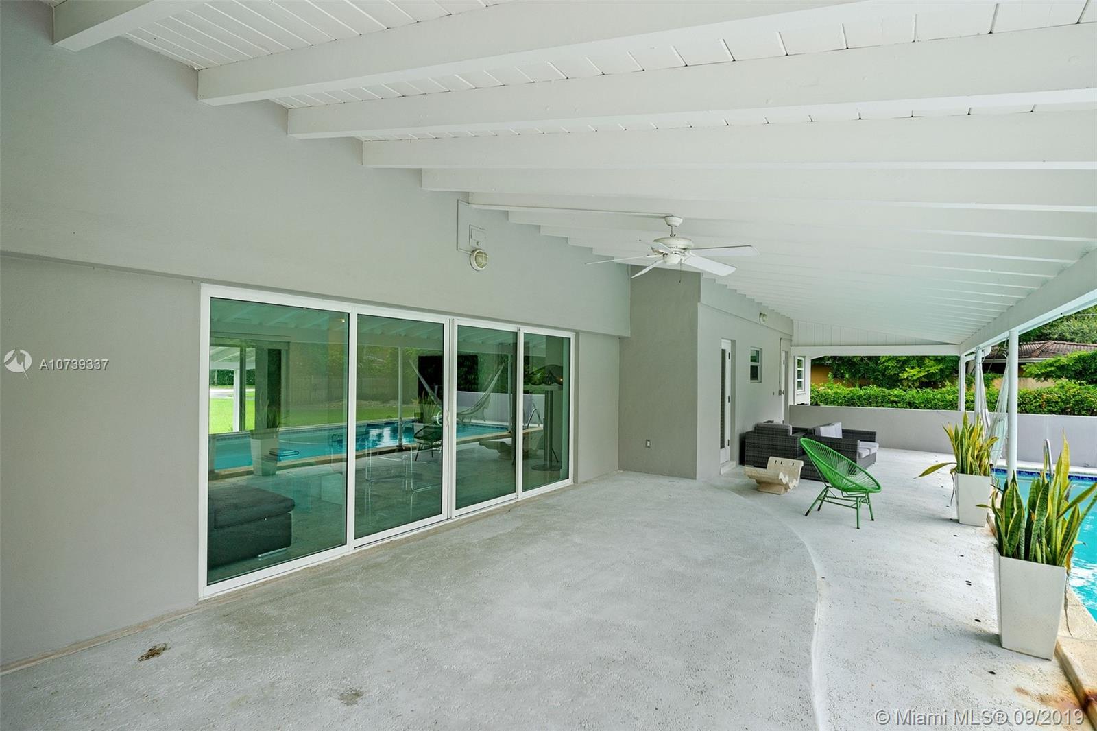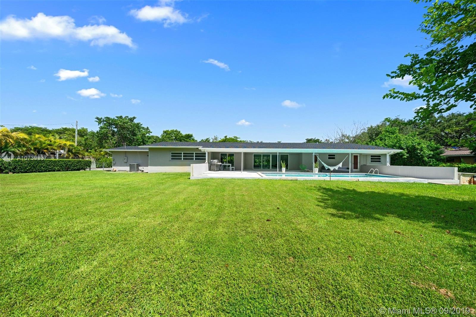 Spectacular 4 bedroom/3 bathroom one-story home situated on a builder’s acre in Pinecrest. Bright open floor plan with spacious living and dining room for grand entertaining. Modern and refined kitchen with quartz countertops and state-of-the-art appliances, including SubZero fridge, wine chiller and Wolf 4-burner glass cooktop and oven. Not to mention, an island with seating for four. Large sliding doors fill the home with natural light and provide panoramic views of the sparkling pool. Covered patio with deep overhang. Modern cabana bath. Dazzling marble floors throughout the house, laminate in the bedrooms. Indoor laundry. 2 car garage plus porte cochere.