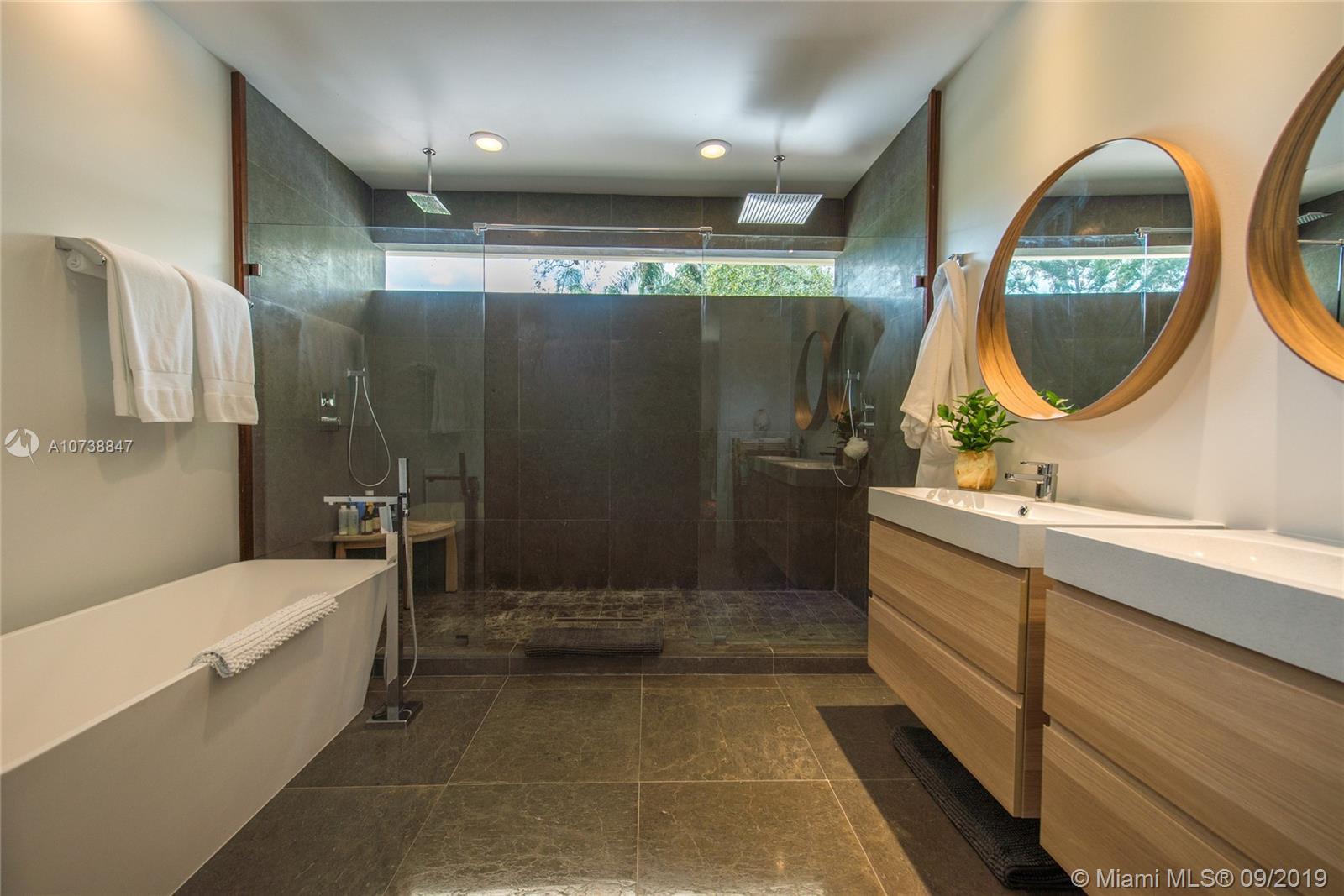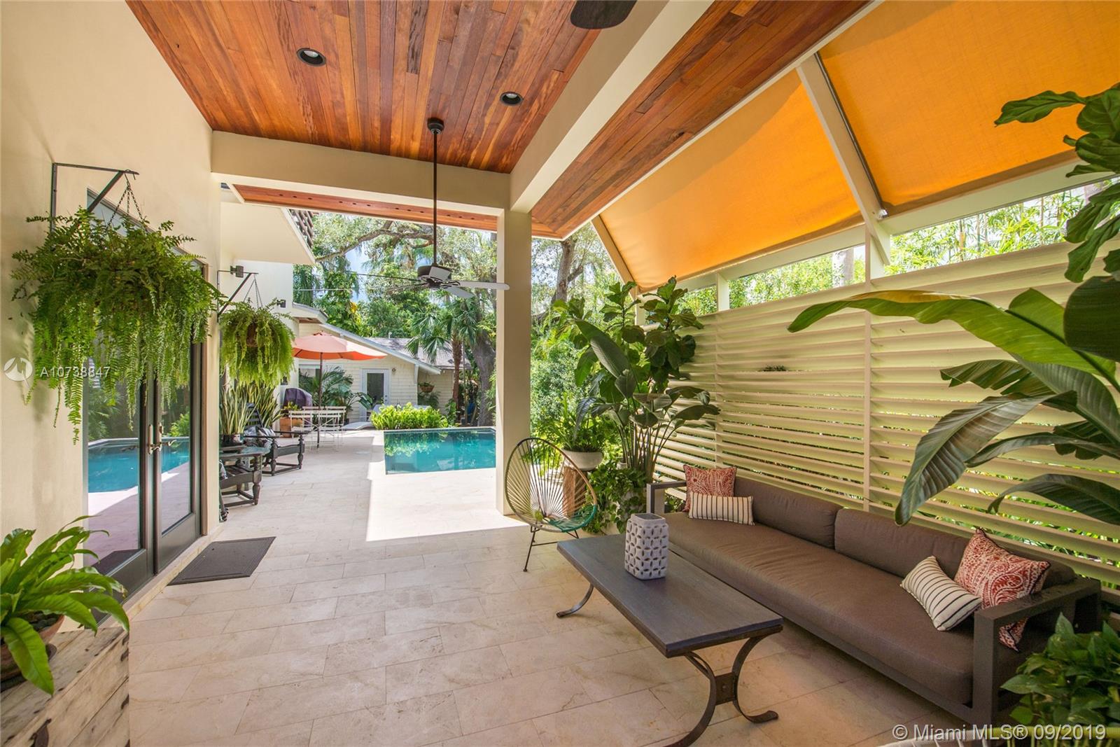 Ultra-private, Coastal Contemporary style home on a quiet South Grove street. Unique design combines new construction main house (3 BR’s/3 BA’s) & adjoining 1938 cottage (totally renovated) which is entered through a glass enclosed passageway. The charming 2 BR/1BA cottage (with living room + den & dining area) has potential as home office or guest suite w/ private entrance. Light-filled living spaces w/ volume ceilings & walls of glass overlooking a tropical pool and covered terrace. Sleek, european-style kitchen w/ stainless countertops & island. Stunning master suite (2nd level) features over-sized walk-in closet, private balcony & spa-like bath w/ 2-person frameless glass shower and soaking tub. Walk to the Grove village center’s galleries, boutiques, cafes & bayfront parks & marinas.