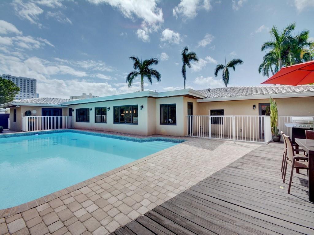 Boater's Dream with 100 ft of water frontage on Northlake/Intracoastal, NFB. Gorgeous wide water view & new dock. Home was recently & completely remodeled with no expense spared. NEW: impact glass throughout, 36"X36" porcelain floors, open kitchen with granite counters, plumbing, electric, A/C, baths, LED lighting, drywall, millwork, quality mahogany interior doors, tankless water heaters, window treatments, wireless security system. In-law suite + office. Large patio with pool, chickee hut. Two car garage, pavers around house & electric gates. This inviting 4400 sq ft of luxury living is nestled between Miami & Ft Lauderdale, only a bike ride to Hollywood's famous Beach & Broadwalk & minutes to Ft Lauderdale Airport.