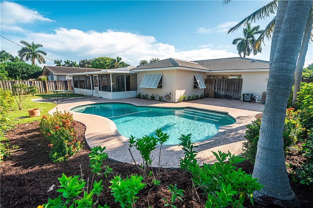 Brand new roof and exterior paint!! Spacious 3 Bedroom, 2 Bath home in Santamaria Harbor with large split bedrooms and open floor plan. Newly updated kitchen - natural gas heated pool - one car carport with large storage area which if combined could be a 2 car garage - large screened patio - under air laundry room - wonderful NE Pompano location convenient to shopping restaurants etc.