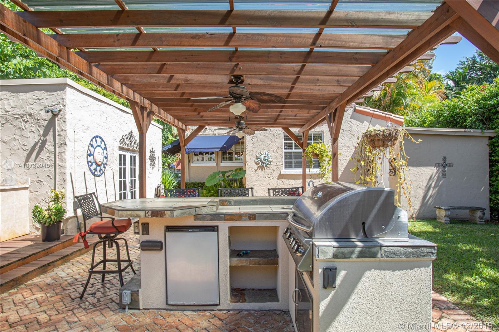 Seller Motivated! Beautifully Detailed Old Spanish style home. Main home is a 2 bedroom /2 baths. The guesthouse is a 1 bedroom/1bath. Master bedroom has 2 wall-in closets. The kitchen has been newly remodeled with wood cabinets and beautiful granite tops. The appliances are new including a Washer and Dryer in the kitchen area, in addition to a 150-bottle wine cooler. Restored Hardwood floors thru out the home. Working original fireplace located in the living area. Chicago Brick Driveway. Lushly Landscaped backyard with Private fence, Pergola and Outdoor Entertaining Kitchen. This beautiful 1928 home has has been totally updated and is in Move in conditions. Central Located in a Beautiful Coral Gables Neighborhood with great access to major highways and downtown Brickel.