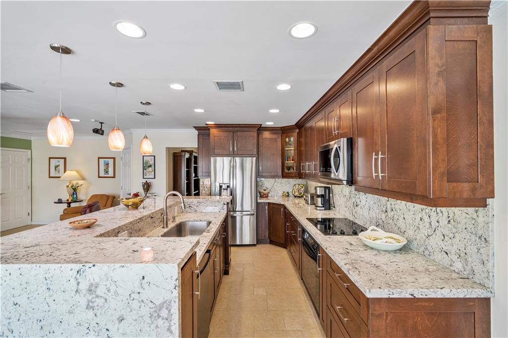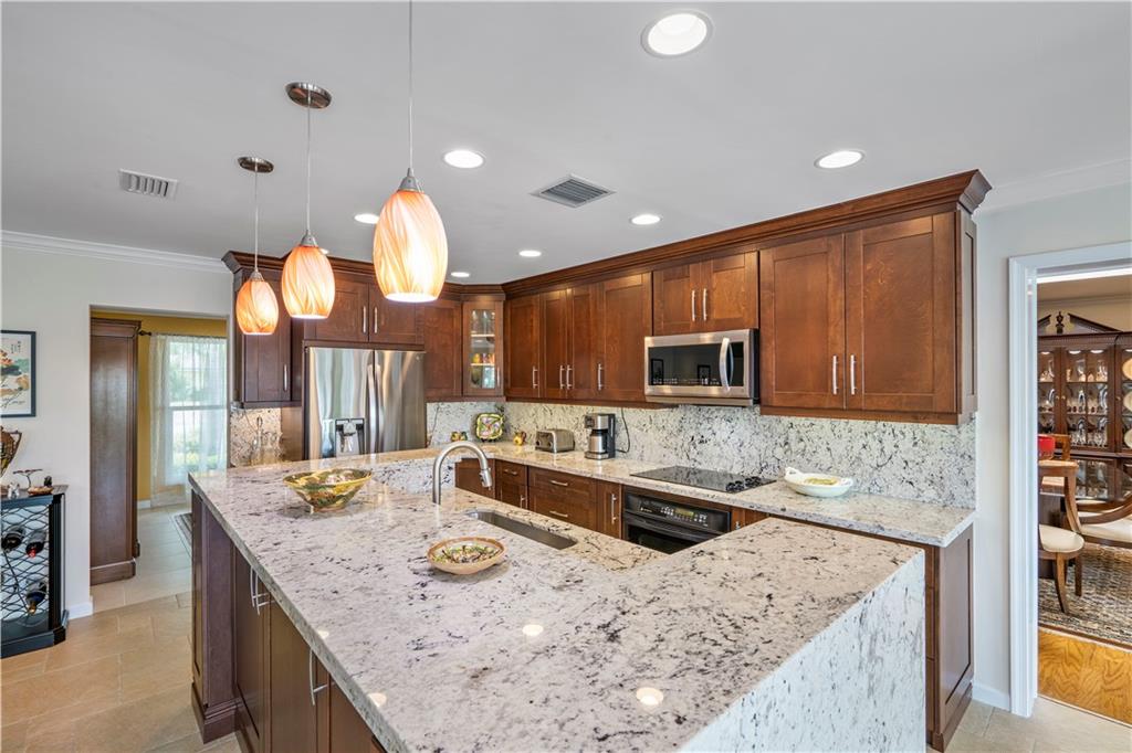 Motivated Seller! Every imaginable upgrade has been done to this gorgeous pool home in Imperial Point, move right in. Open floorplan and foyer entry welcomes you into the formal living and dining areas. Chef's kitchen features custom built cabinets, granite countertops, center island overlooking generous family room & pool area, perfect for entertaining. Beautiful flooring throughout, rectified porcelain & real wood. Backyard privacy fence and lush landscaping surround the outdoor living area including decking, alfresco dining and heated pool with Caribbean Clear pool system. Two master suites, 2,676sf living area, 2,970sf total area including 2-car garage, covered entry and covered patio perfect for outdoor cooking. Impact windows & doors, new roof 2016. Bring your best offer!