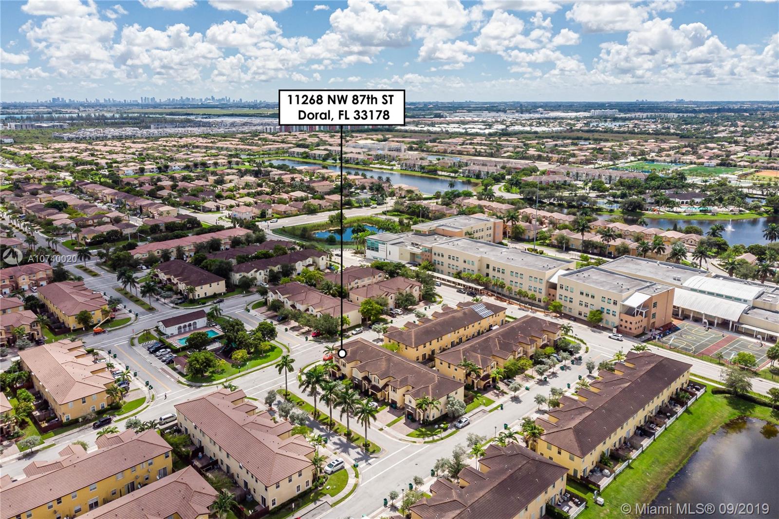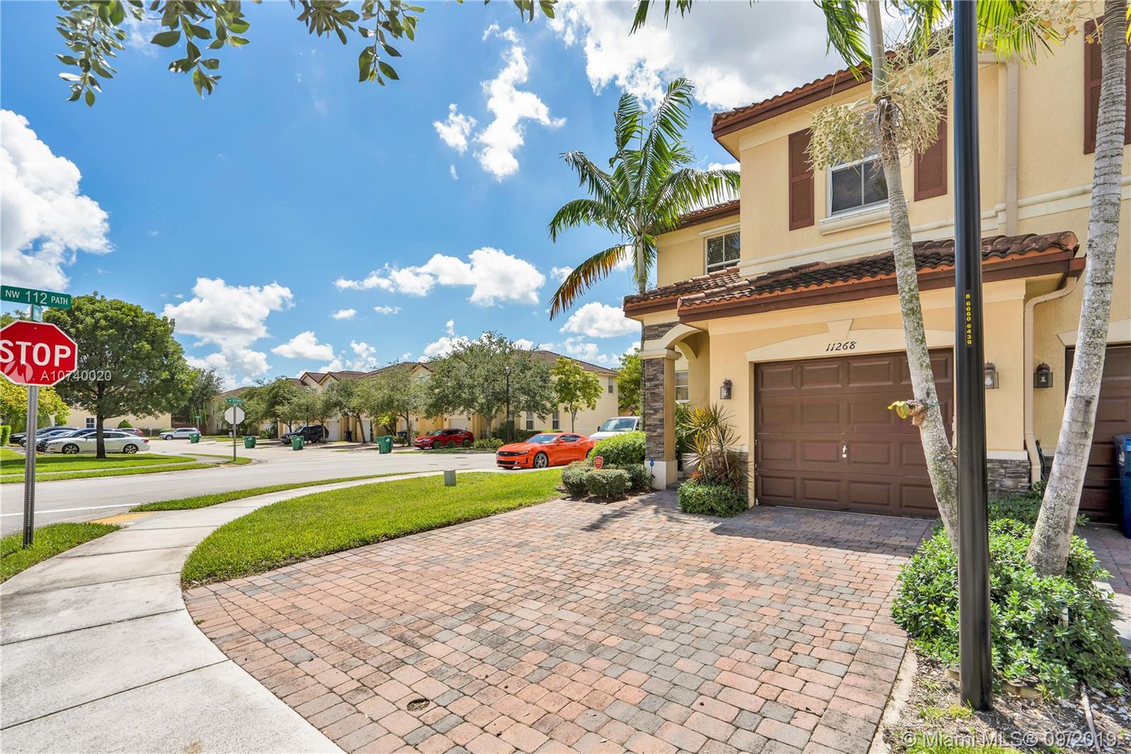Look No Further! 2-Story 3/2.5 Fee Simple CORNER Townhouse in Santorini, Islands at Doral. 2-Car Driveway + 1-Car Garage, Complete Storm Shutters Protection, Bamboo-Wood Laminate & Tile Floors, Lovely Kitchen, Snack Counter, Washer&Dryer Upstairs, High Ceilings Upstairs, Custom Master Walk-In Closet, Comcast Security, Wired for Cameras, Wood Fenced, Ample Patio w/ Pavers, Windows & Sliding Doors > Lots of Natural Light, 24hrs Roaming Security Guard, Community Pool & Kids Playgound Front of Unit. AMAZING Islands at Doral Clubhouse, Including Full Gym, Olympic Pool, Spa, Sauna, Steam Rooms, Tennis Courts… a Beautiful Facility. Close to A+ Schools, Award-Winning City of Doral Parks Walking Distance. Superb Location Close to Turnpike Exits, Shopping, and More. PRICED TO SELL!