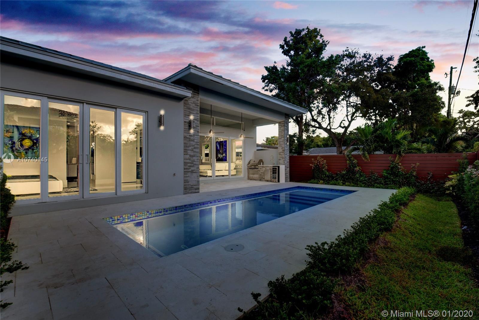 Brand New 2019 Luxury Construction 4BR/3BA, 1 Story House in Victoria Park. Open floor plan with 12' ceilings in main areas. Modern Design, two tone high end gloss European cabinets, Professional Chef’s kitchen designed for entertainment, gas stove w/upscale appliances and 14 Ft Quartzite island with seating for 8. Custom closets in all bedrooms, each with 5 drawers and built to ceiling. Master has two walk in closets, European bath cabinetry w/spa like whirlpool tub w/very large shower. European Porcelain Floors. Hurricane impact doors and windows, gas tankless water heater. Built in gas barbecue and kitchen under patio roof w/upgraded pool and limestone patio area, lushful landscaping and fenced yard. Located just blocks from Las Olas, Beach, Downtown, Fort Lauderdale and Int’l Airport.