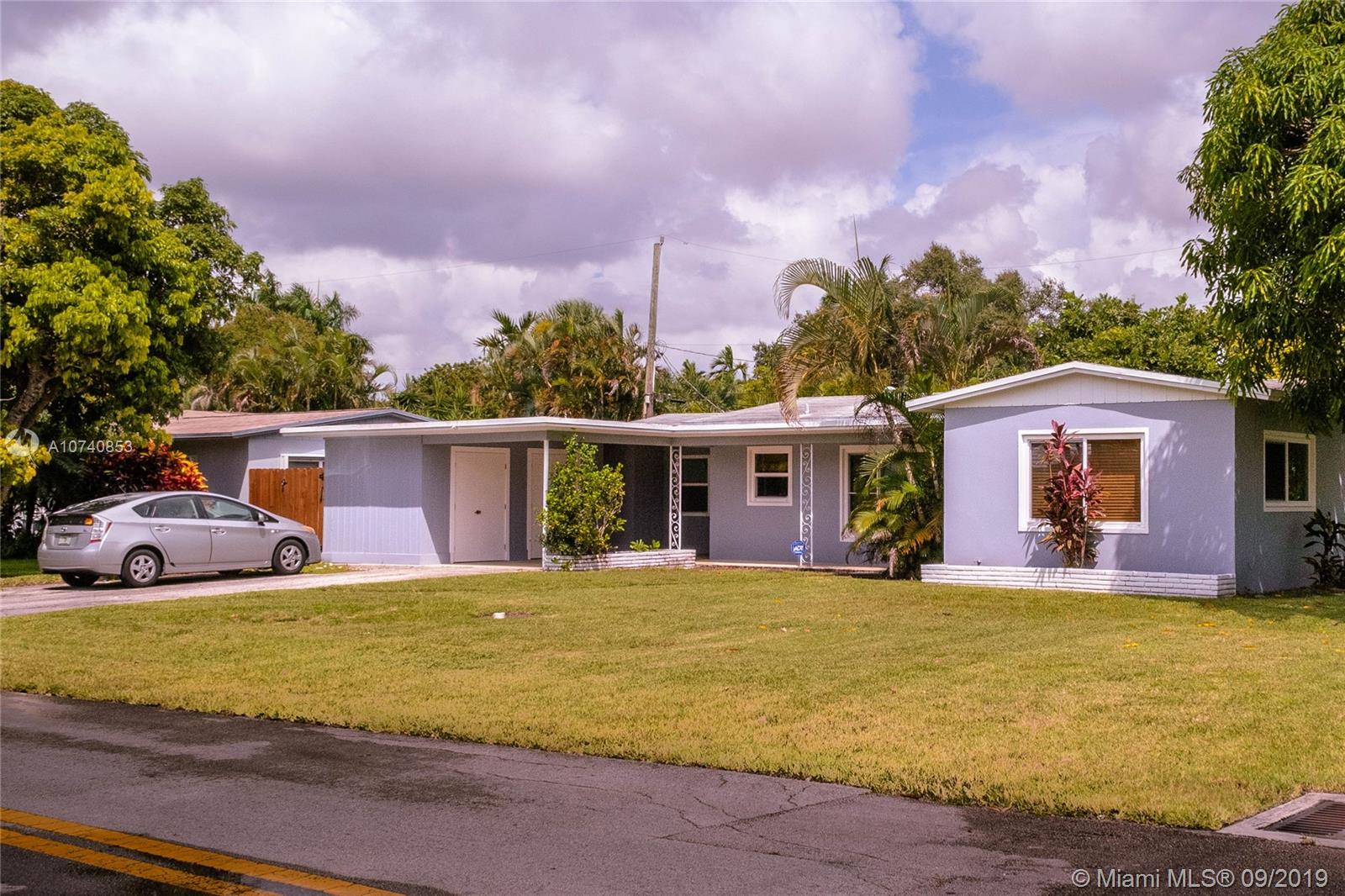 Mid-century modern gem in quiet River Oaks. This tastily renovated retro-modern 3 bedroom & 2 bath single-family home is located on a large 8,900 sq ft corner lot east of I-95. Open floor plan, remodeled kitchen, terrazzo floors, impact windows, laundry room, storage room, oversize yard with mature fruit trees - two large mango trees, a star fruit tree, and a lychee tree. There is plenty of parking with a carport and a large driveway with space for 4 cars. Downtown Ft. Lauderdale, FLL Airport, and great beaches all within 4 miles. Easy access to all major highways! I-95 within 1 mile, Turnpike & I-595 within 3 miles. Easy to show, text Listing Agent
