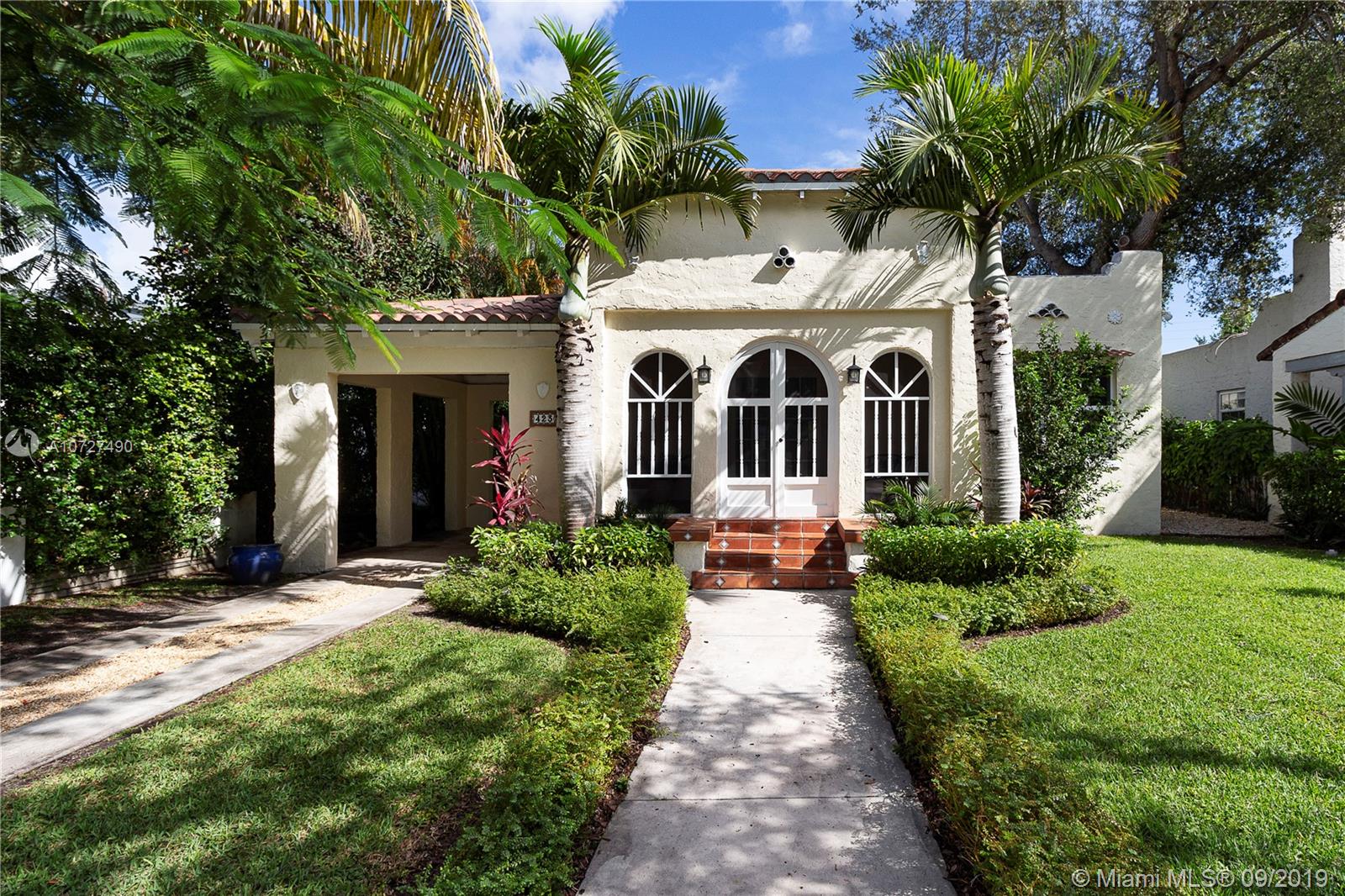 A timeless Old Spanish sits on a charming and quintessential Coral Gables street and is now available for a new homeowner. Merely .2 of a mile from the famed Miracle Mile, everything from restaurants, shopping, book stores & cocktails alike are at your beck and call. The traditional screened in front porch sets the tone for the home. Original wood floors and understated fireplace anchor the living spaces. The main house has 2 bedrooms and 2 full baths with a sitting room inside the master. Spacious kitchen leads to the sweet courtyard style backyard. A true guest house with full bathroom and kitchenette is ready for your visitors to enjoy, or for an easy rental income opportunity. Make yourself at home here and find yourself at the center of Coral Gables living. A Very Special Home.
