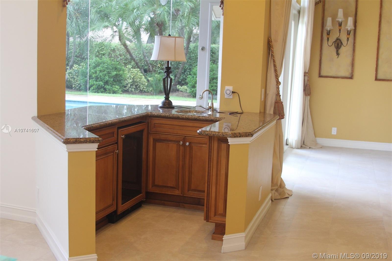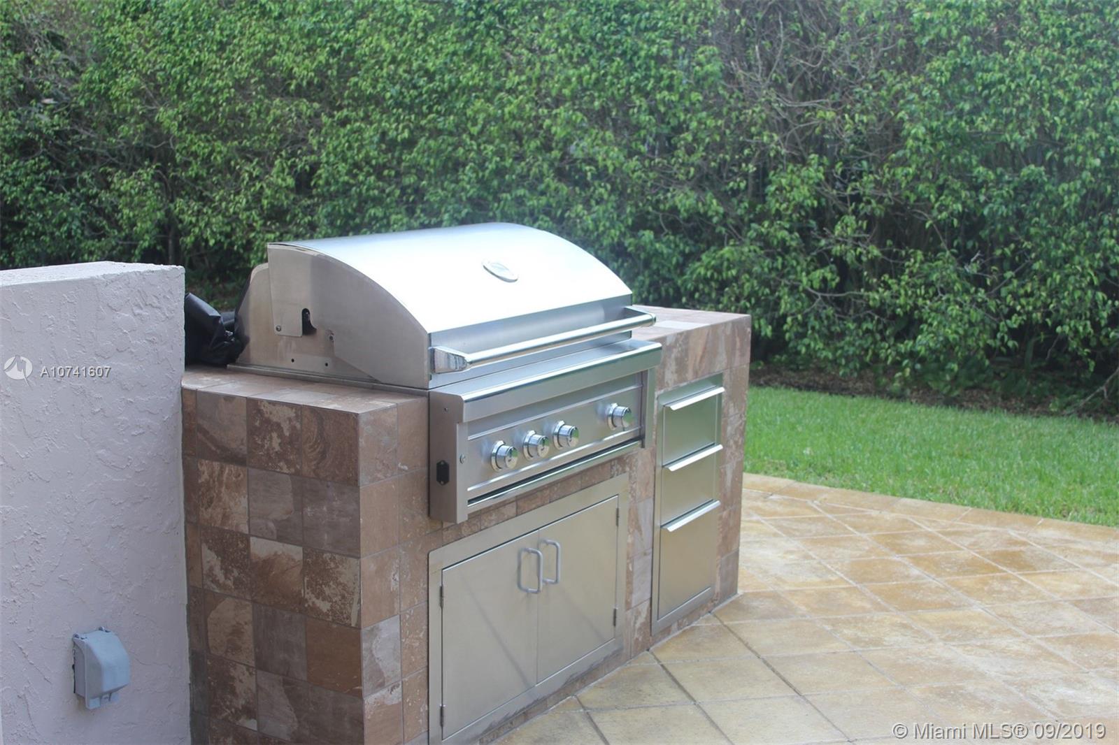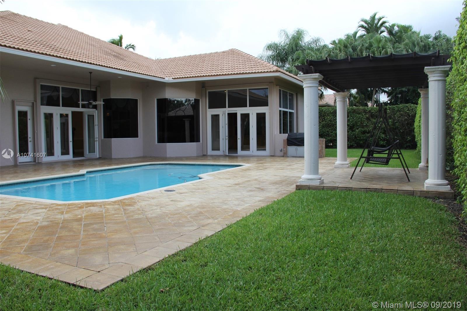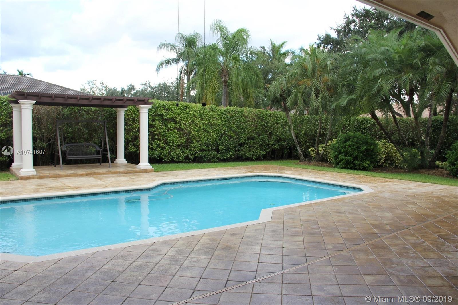 Beautiful Home a Must See!! 4 bedrooms, 4 bathrooms & Den/office. This home have all the imaginable upgrades including crown molding, tray ceiling in master, real wood floor in bedrooms, high quality built in entertainment unit & office furniture, wet bar w/ wine refrigerator, gorgeous floors, full guest/pool bathroom, all recessed lighting, Large Master, beautiful gourmet kitchen w/ high end cabinetry, SS appliances & much more. 5th bedroom can be used as a den/office. 3 a/c units, home is protected with accordion shutters. Open concept floor plan with soaring ceilings and some windows with custom designed windows treatments provide abundant natural lighting throughout. A tropical landscaped large patio w/ pool & outdoor built in Grill & Pergola perfect for entertaining family & friends.