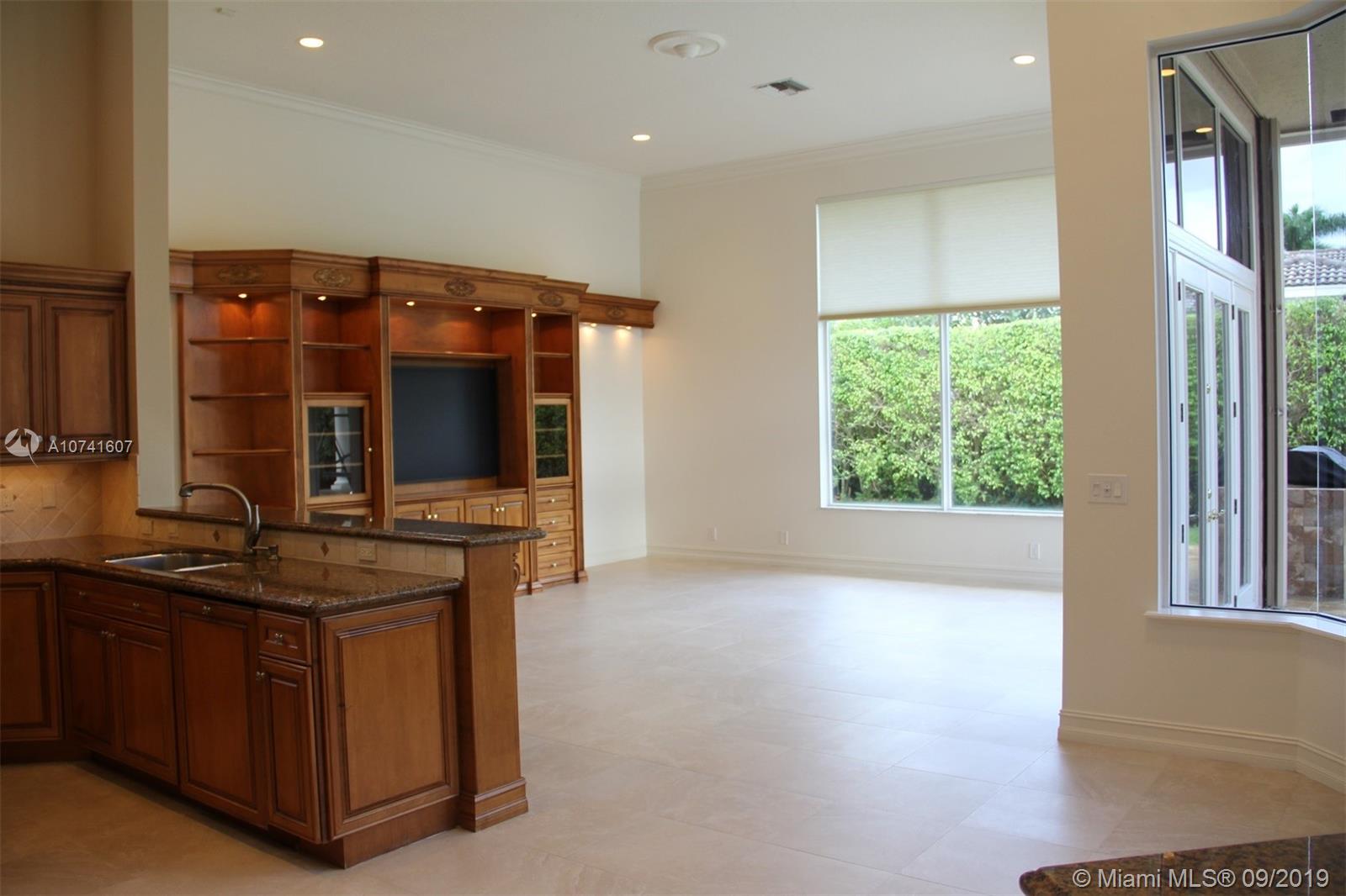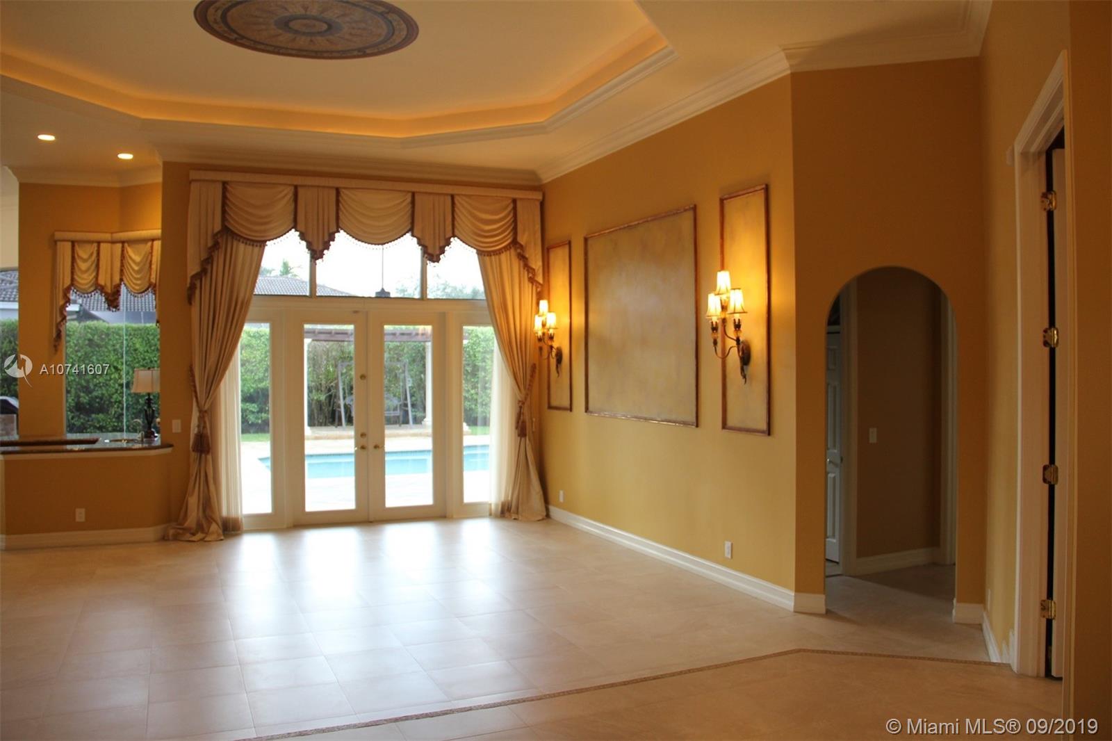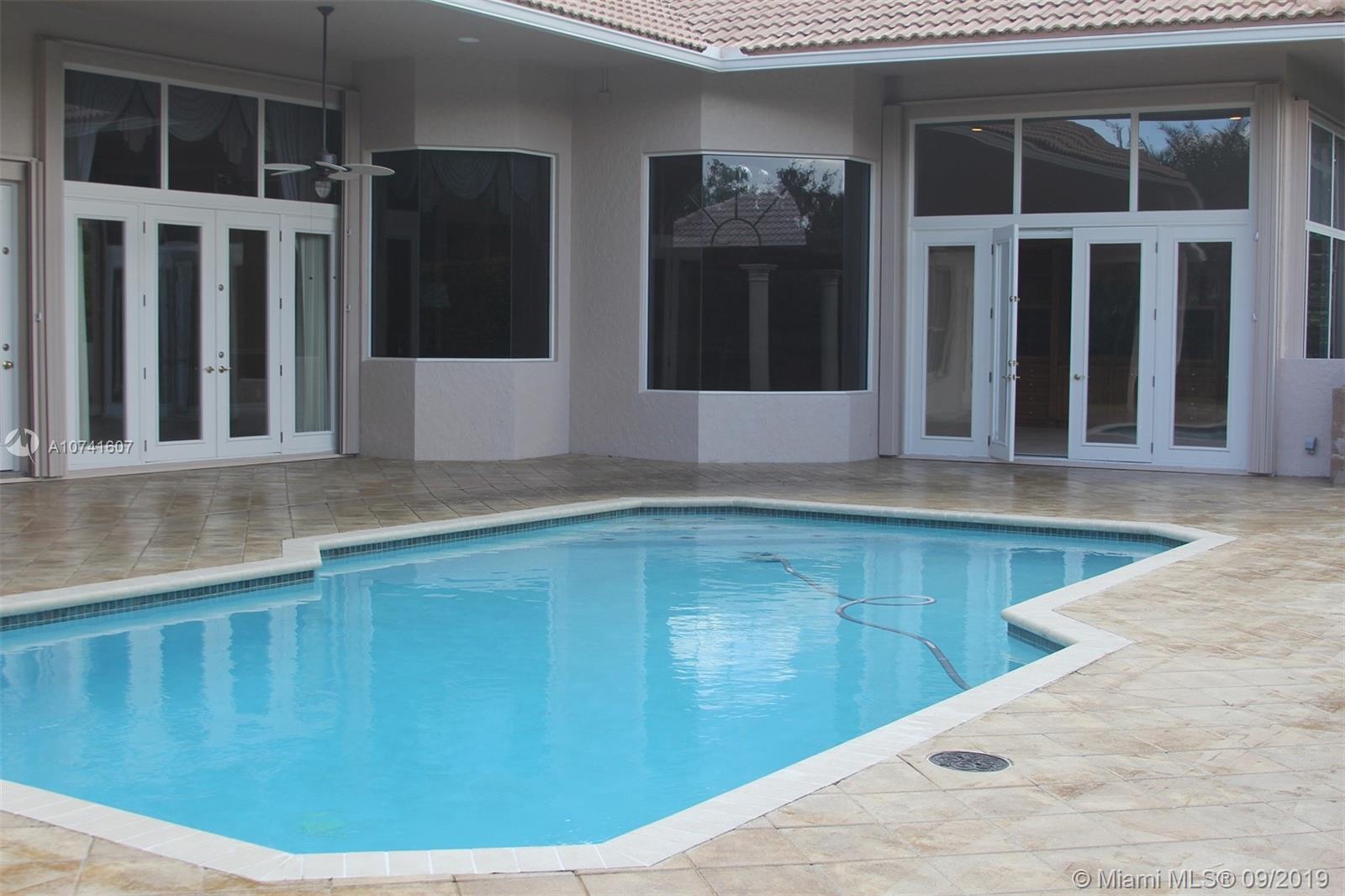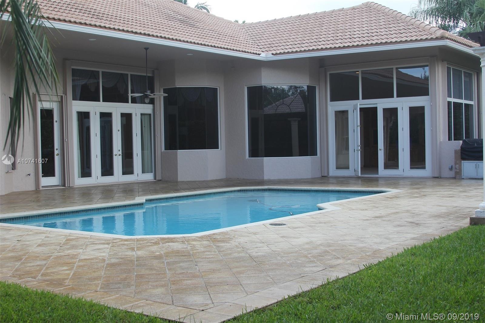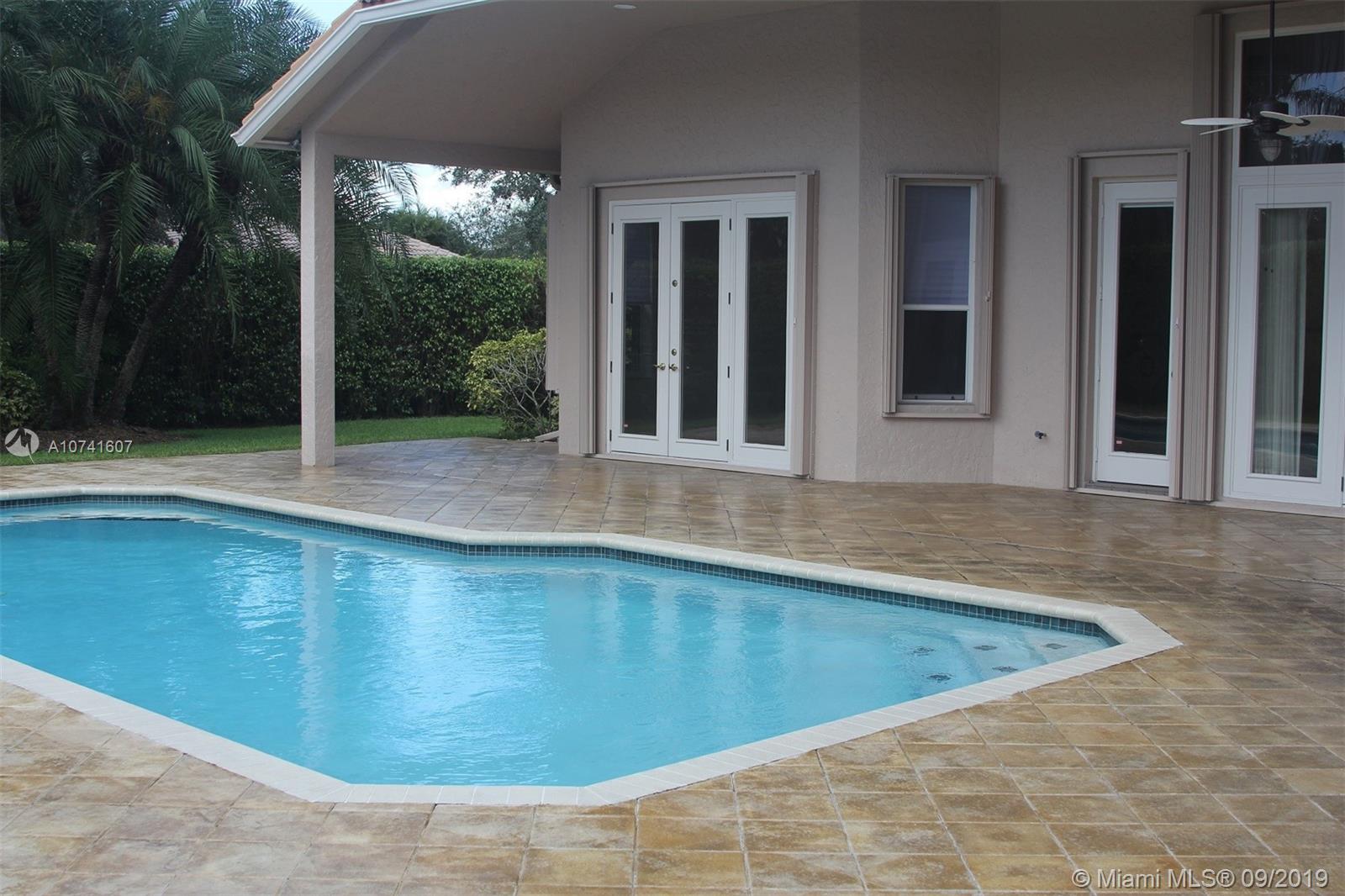 Beautiful Home a Must See!! 4 bedrooms, 4 bathrooms & Den/office. This home have all the imaginable upgrades including crown molding, tray ceiling in master, real wood floor in bedrooms, high quality built in entertainment unit & office furniture, wet bar w/ wine refrigerator, gorgeous floors, full guest/pool bathroom, all recessed lighting, Large Master, beautiful gourmet kitchen w/ high end cabinetry, SS appliances & much more. 5th bedroom can be used as a den/office. 3 a/c units, home is protected with accordion shutters. Open concept floor plan with soaring ceilings and some windows with custom designed windows treatments provide abundant natural lighting throughout. A tropical landscaped large patio w/ pool & outdoor built in Grill & Pergola perfect for entertaining family & friends.