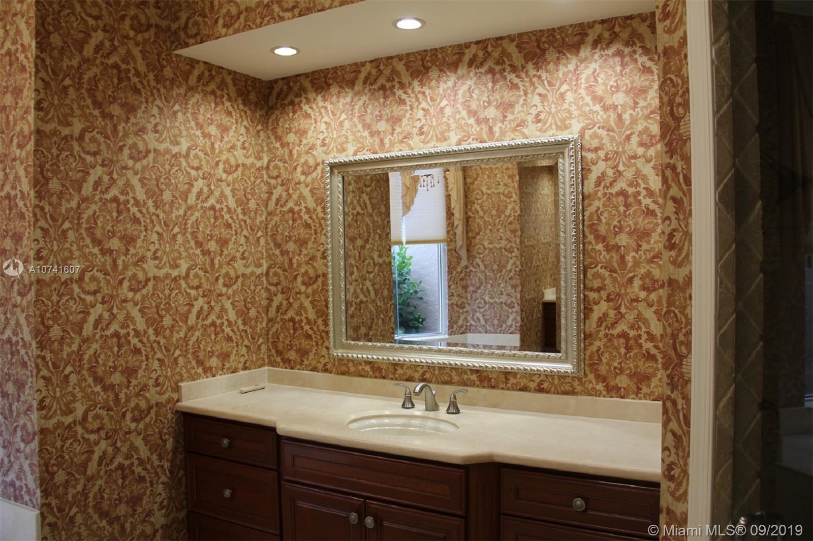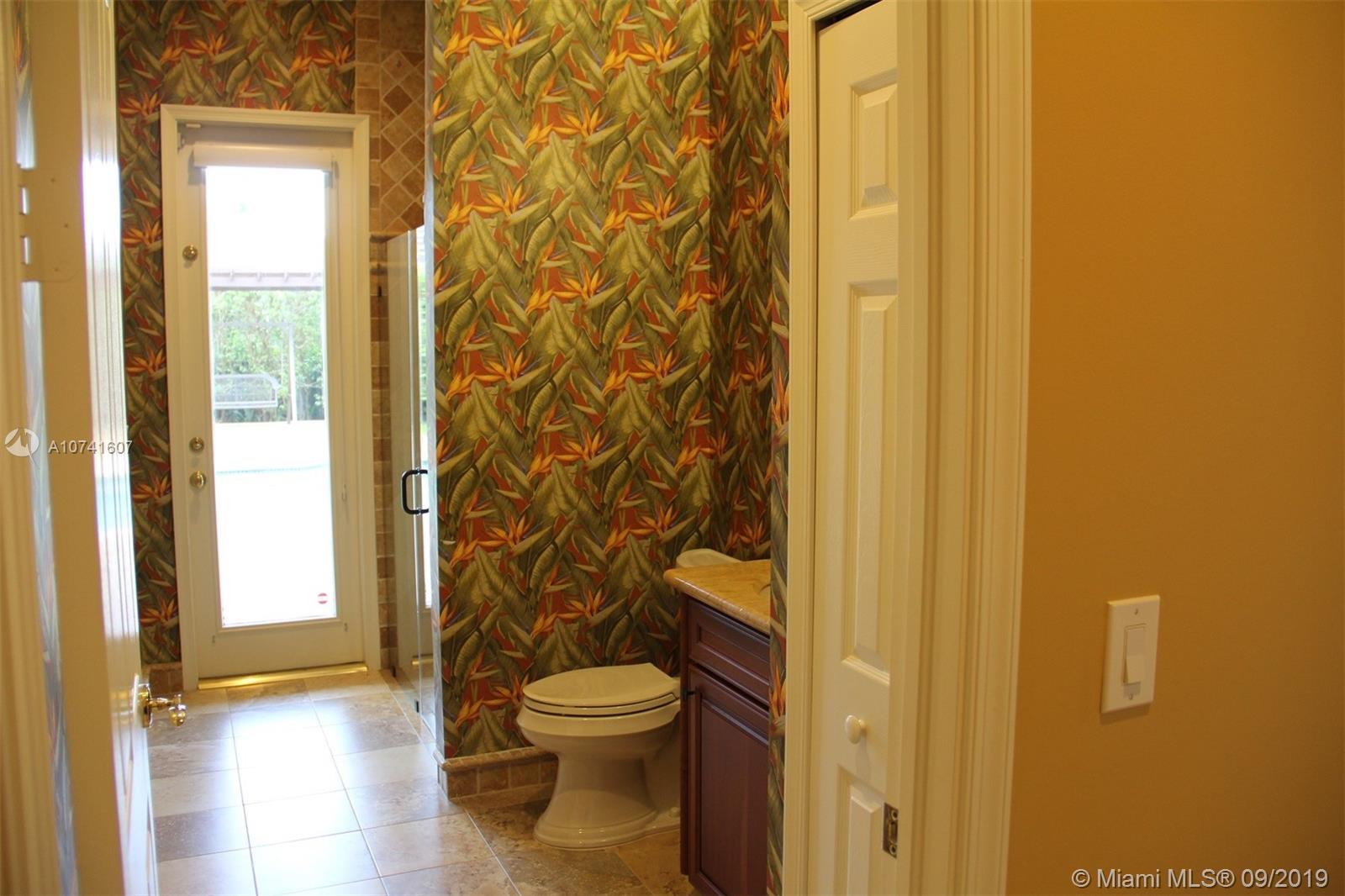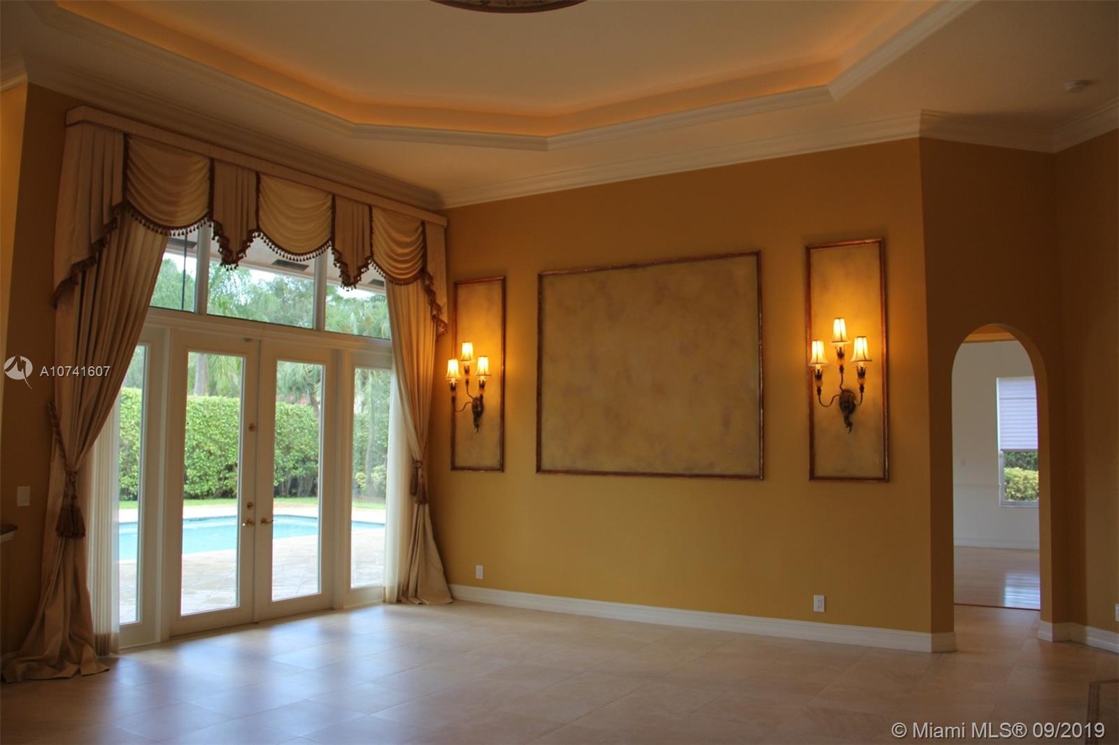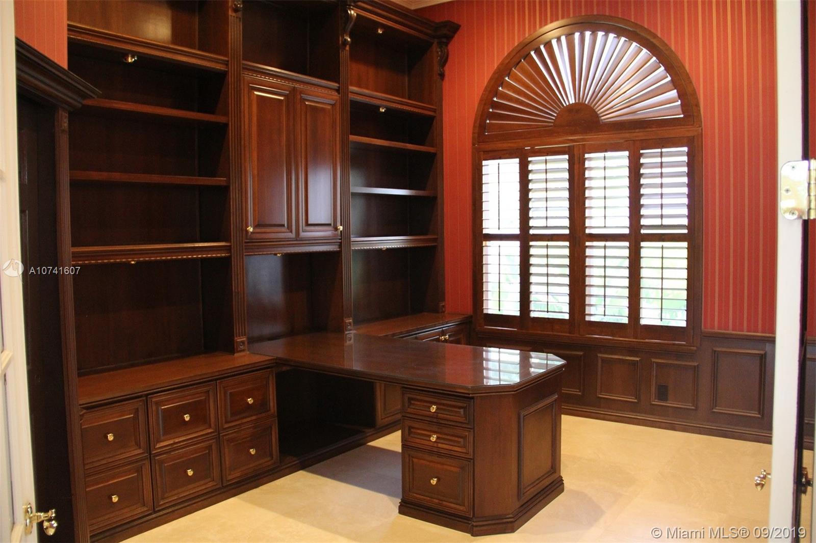 Beautiful Home a Must See!! 4 bedrooms, 4 bathrooms & Den/office. This home have all the imaginable upgrades including crown molding, tray ceiling in master, real wood floor in bedrooms, high quality built in entertainment unit & office furniture, wet bar w/ wine refrigerator, gorgeous floors, full guest/pool bathroom, all recessed lighting, Large Master, beautiful gourmet kitchen w/ high end cabinetry, SS appliances & much more. 5th bedroom can be used as a den/office. 3 a/c units, home is protected with accordion shutters. Open concept floor plan with soaring ceilings and some windows with custom designed windows treatments provide abundant natural lighting throughout. A tropical landscaped large patio w/ pool & outdoor built in Grill & Pergola perfect for entertaining family & friends.