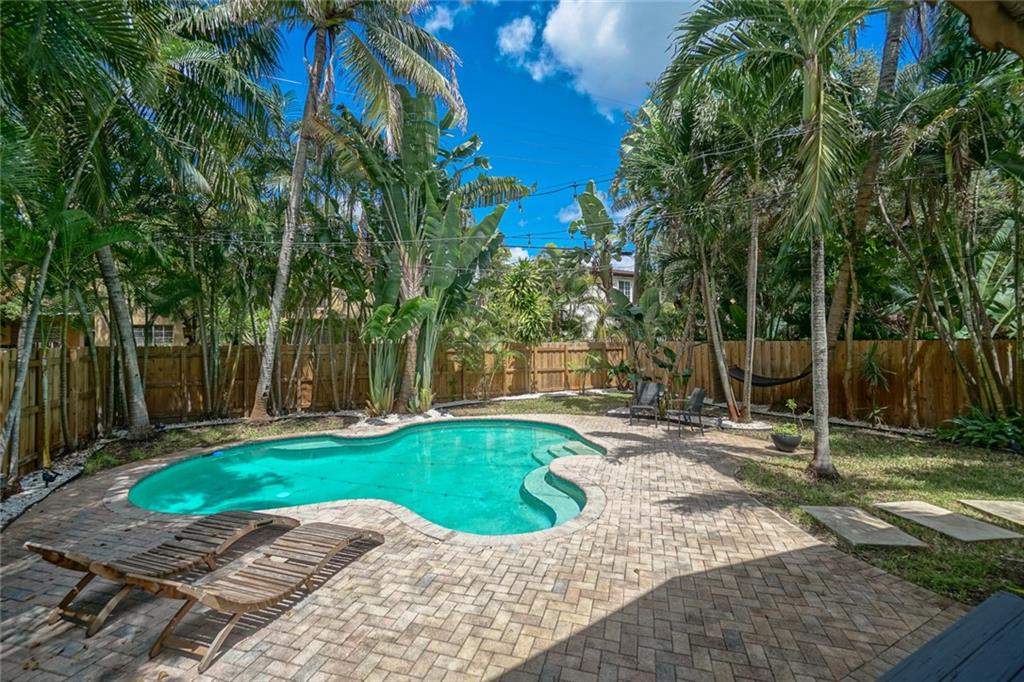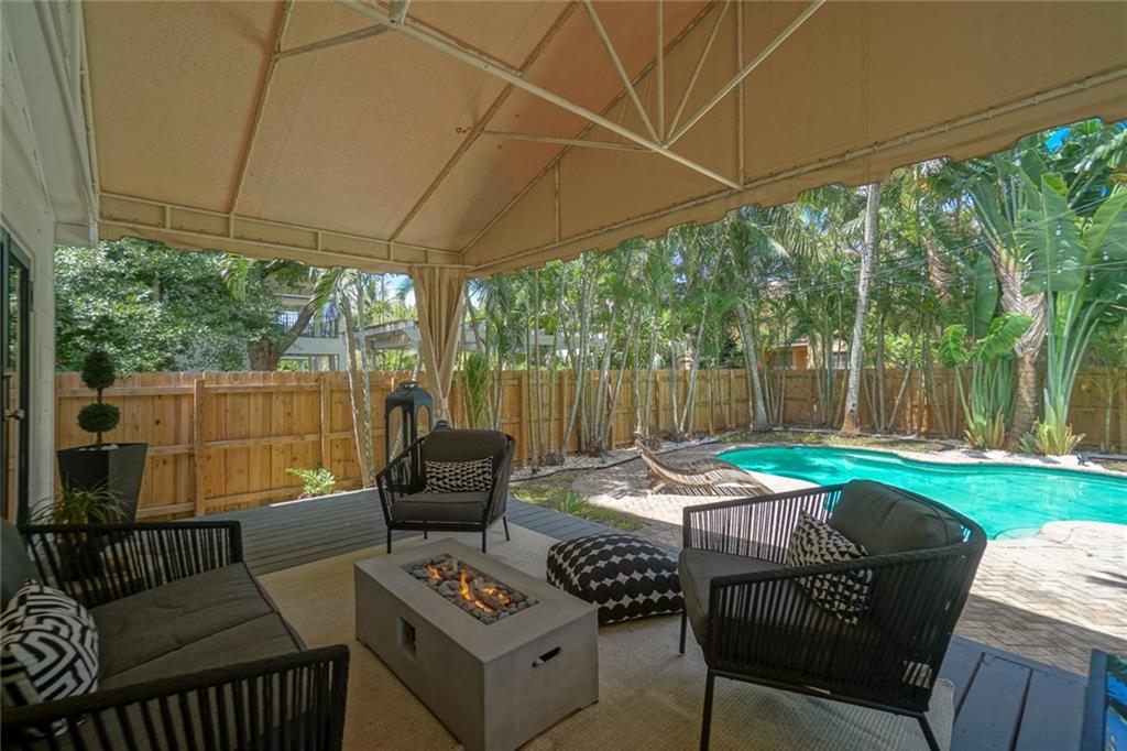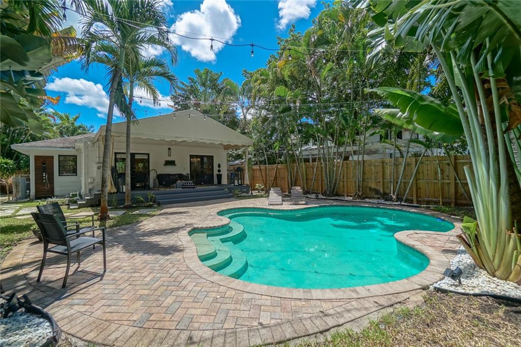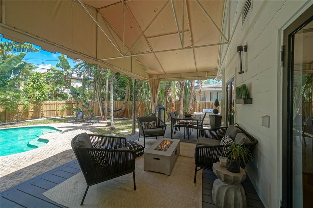 This home belongs in a magazine! Renovated 3 bedroom 2 bathroom home with a pool. Featuring original Miami - Dade Pine Floors, vaulted ceilings, and a sizable screened in front porch. Incredibly generous outdoor entertaining area, unique outdoor shower, extra large industrial grill, and modern fire pit. Carport attached to home and additional parking on side yard. Located in the heart of Tarpon River and walking distance to Fort Lauderdale's Riverfront, Las Olas, Himarshee, and water taxi locations.