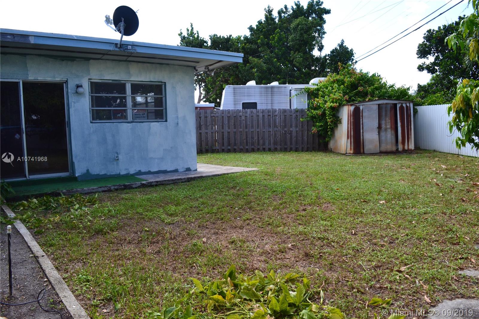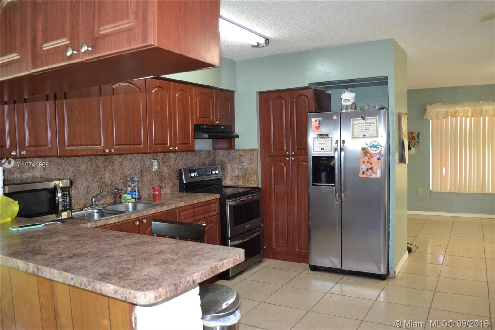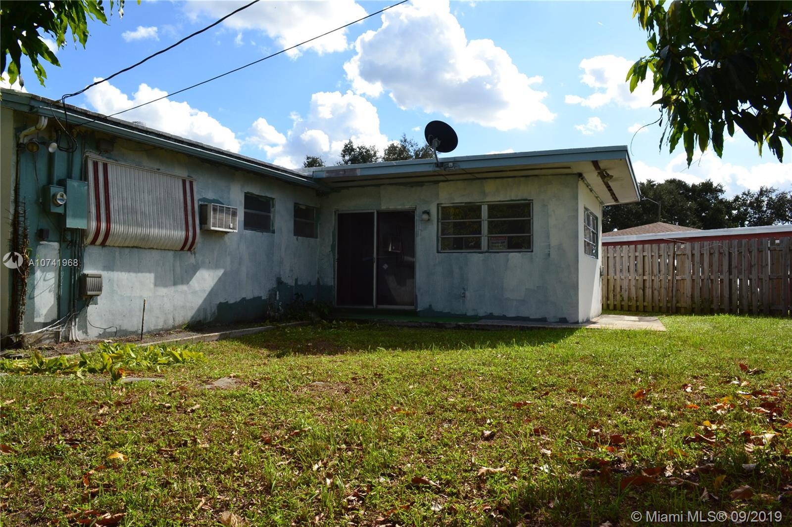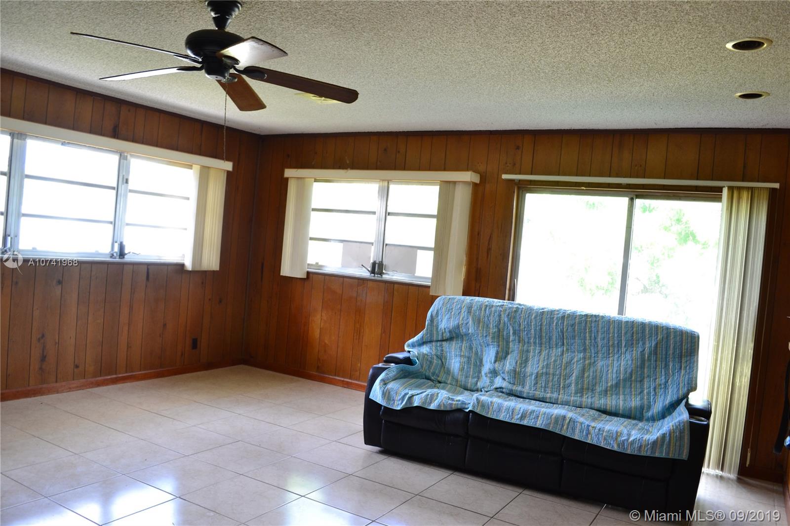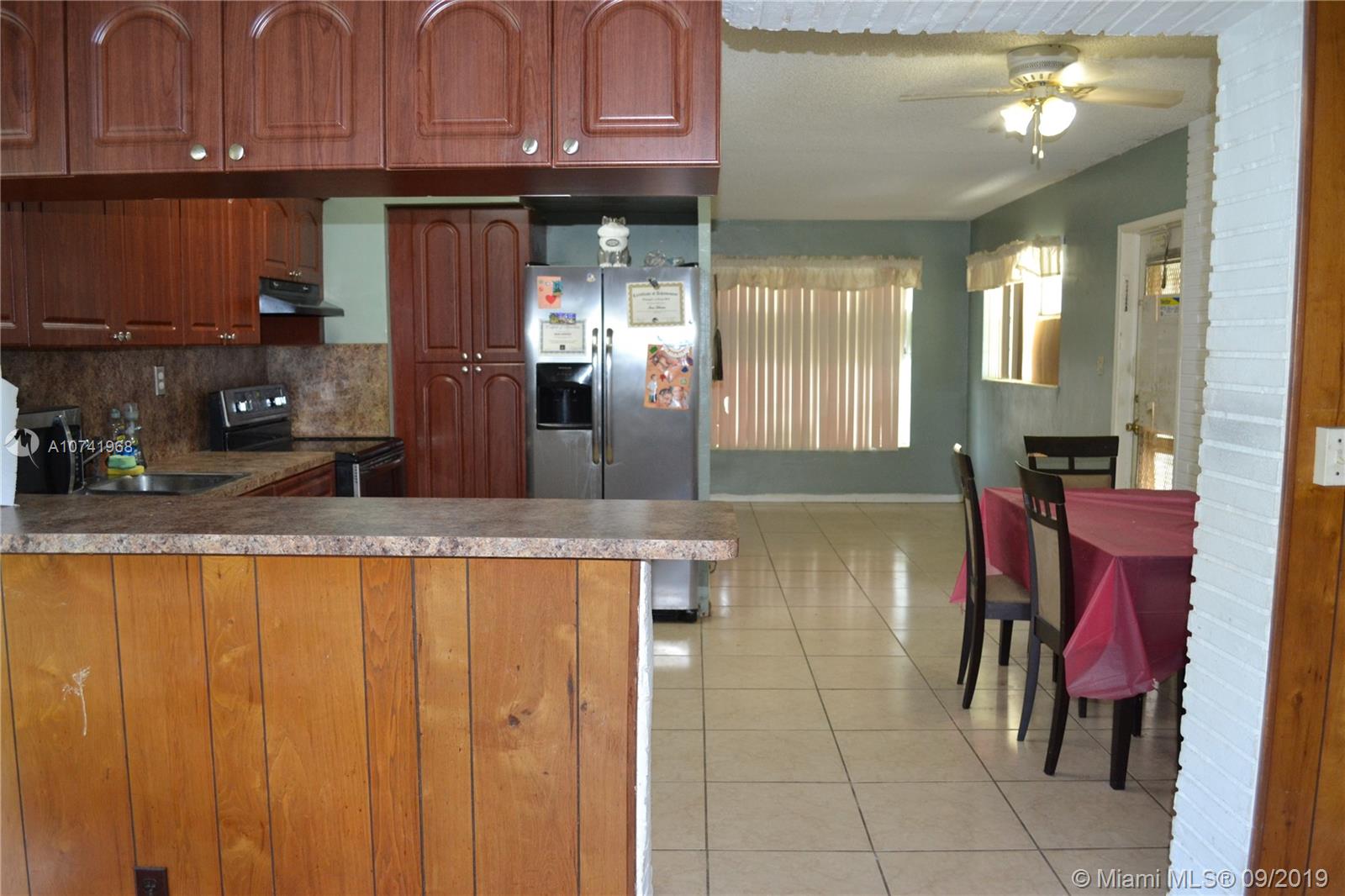 Spacious corner home with 3 bedrooms and 2 bathrooms! Wood cabinets in the kitchen and includes stainless steel appliances. Beautiful tile floors around the home and a large "Florida" room with sufficient natural light for future projects. House is centrally located in Hollywood near I-95 and Florida Turnpike which makes transit much more accessible on the to/from. At 7,951 SQ FT on the lot, there is ample space for many investment projects like a pool or deck. There is a mature mango tree on the outside of the house that is on the property. Convenient utility room that has a refrigerator in it for hurricane purposes and the washer and dryer is located here as well.