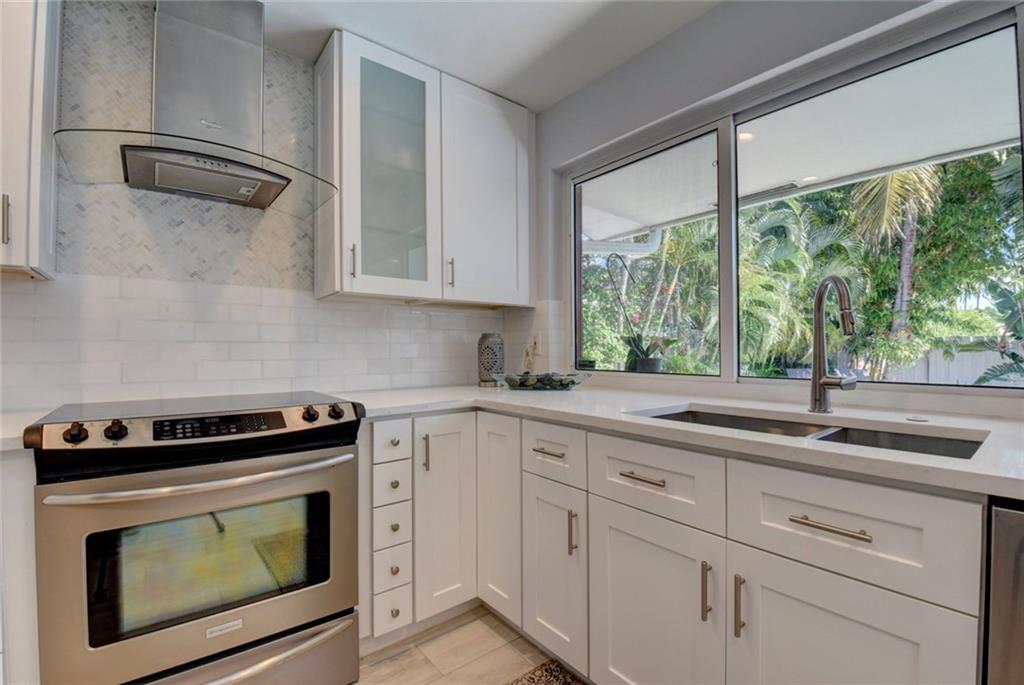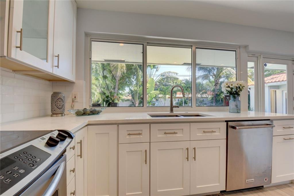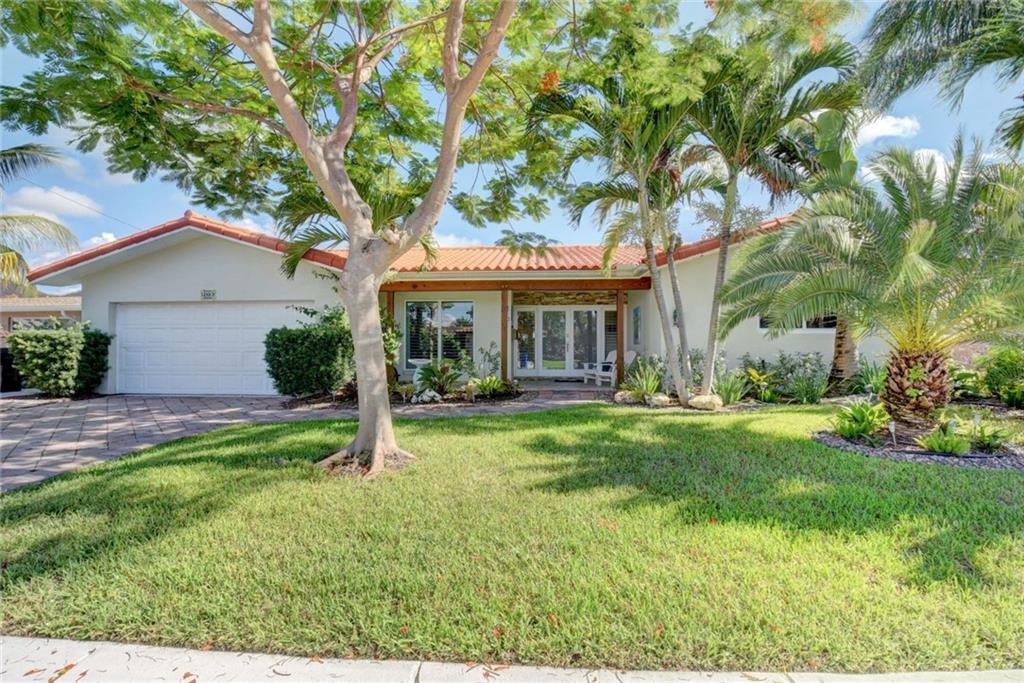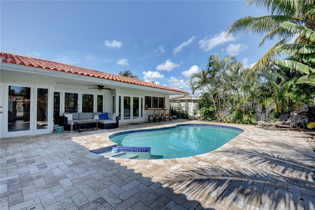 Bright, spacious home in desirable Imperial Point. Completely updated with a clean, modern style including impact windows and doors. Kitchen has new SS appliances, is open to the living area with quartz & breakfast bar that leads out to the pool area. Perfect home for entertaining, has split bedroom plan, master has a huge updated bathroom, and overlooks the tropical pool area. Porcelain tile through out, new electrical panel and beautifully landscaped front and pool area. This spacious home is bright and has a bonus den area, and 2 car garage. Walk/bike to the beach, restaurants and shops. Easy access to I/95 as well. Located on one of the most desirable streets in the neighborhood!