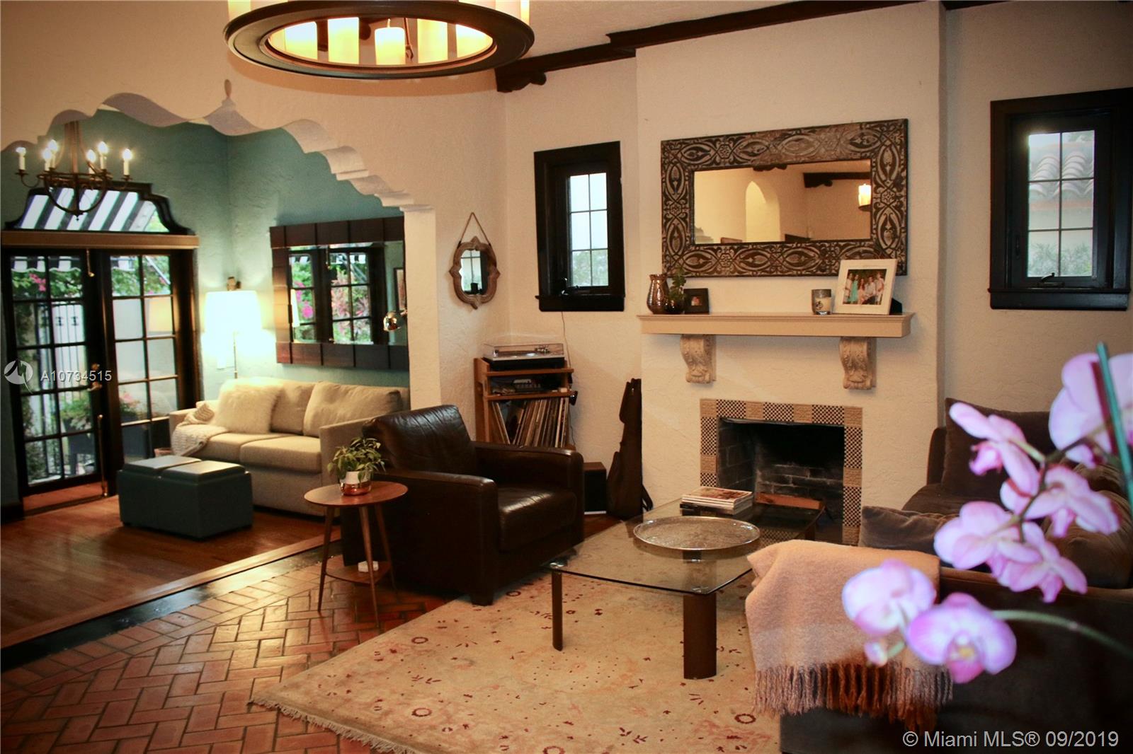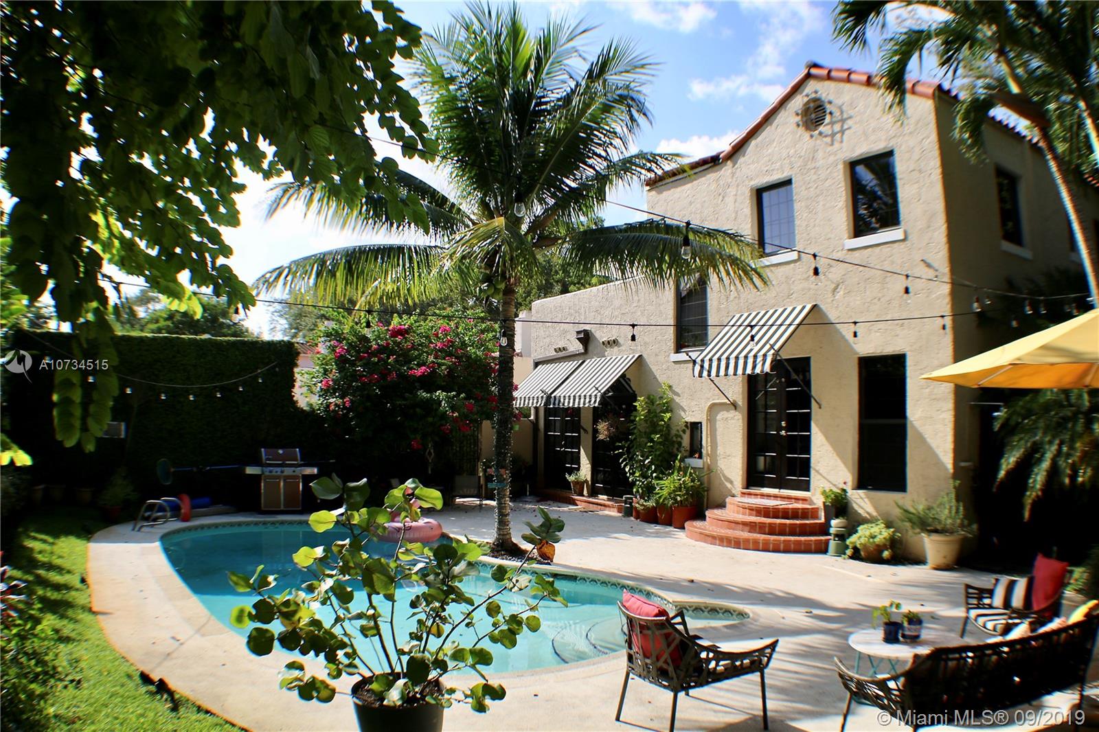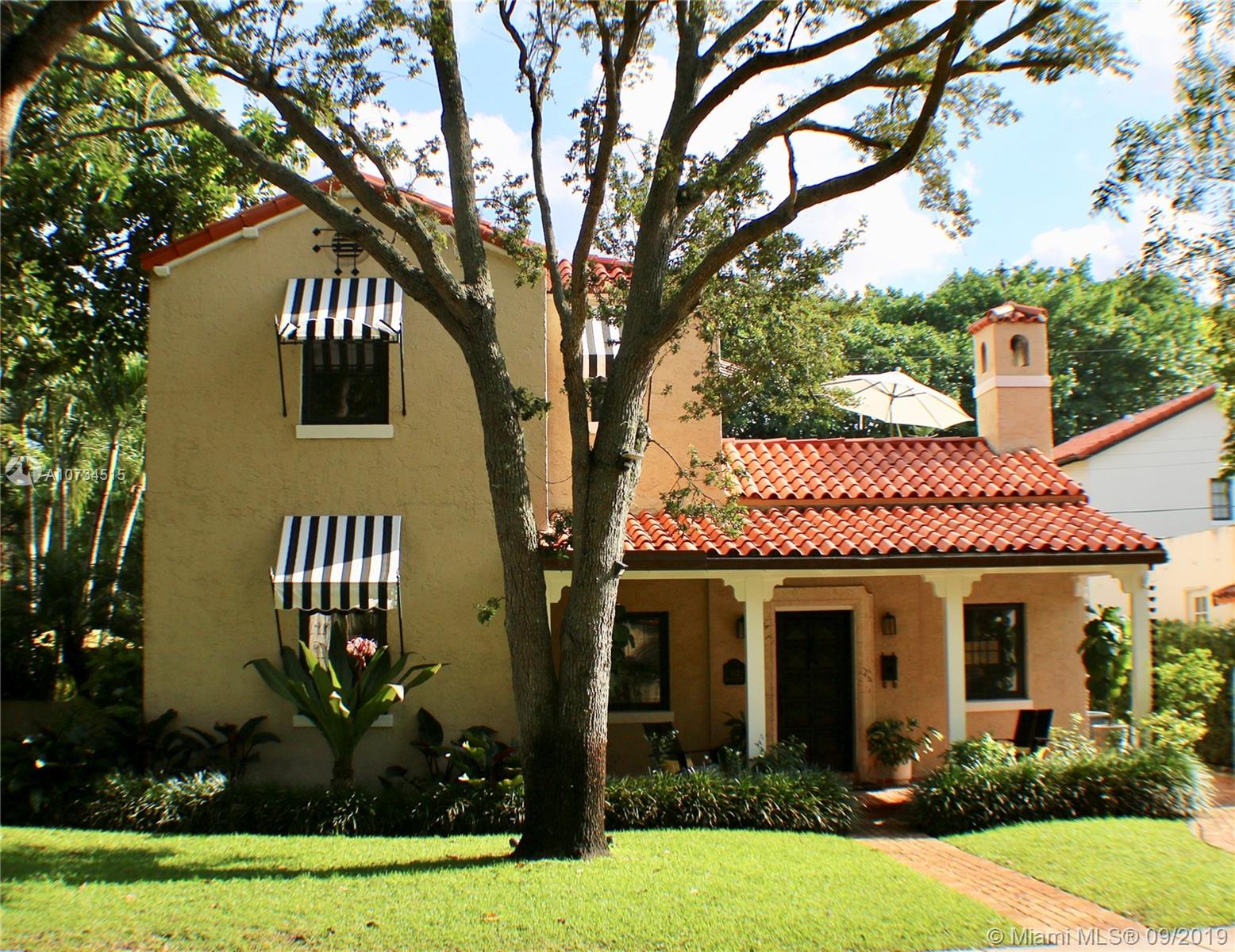 Charming 1927 Old Spanish 2 Story home in historically designated neighborhood on a quiet street. Walking distance from downtown Coral Gables & Granada Golf Course. This classic Casa del Sol was designed by John & Coulton Skinner, it features impact windows, wood floors, stone fireplace, sundeck, sophisticated kitchen, renovated bathrooms, detached one car garage, opening to a lush patio with pool. Its floor plan consist of 2 BR/1BA upstairs & 1 full BA downstairs. Room for expansion on 7,500 FT lot.