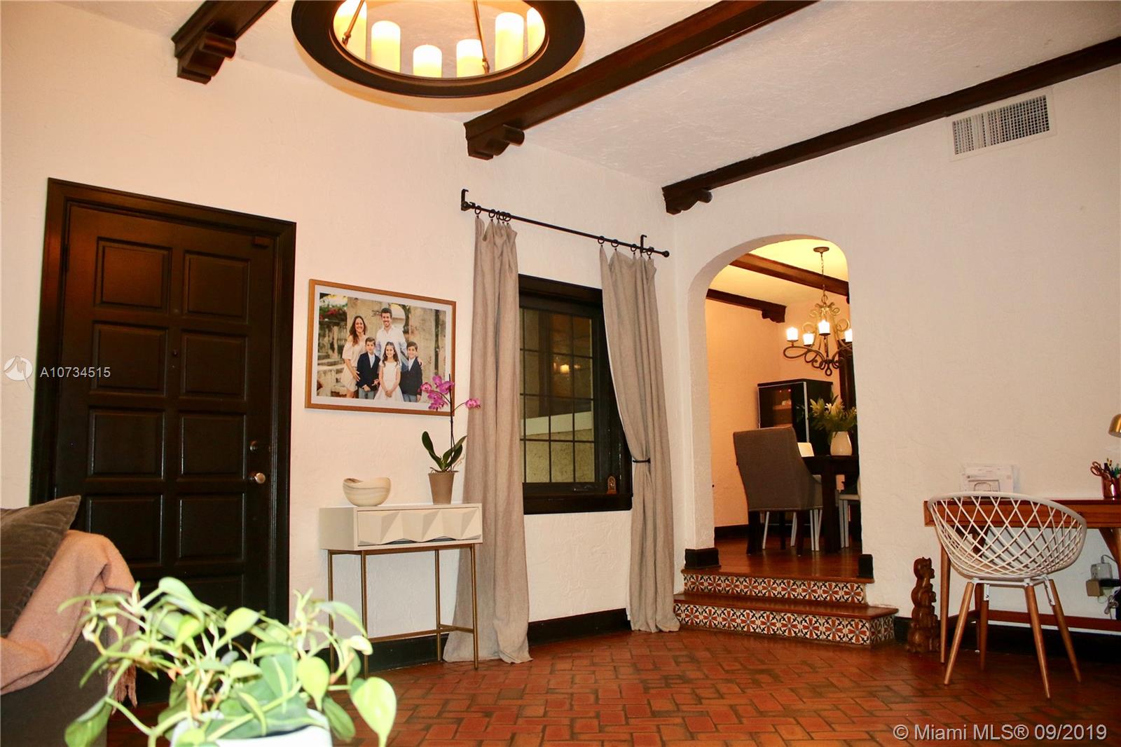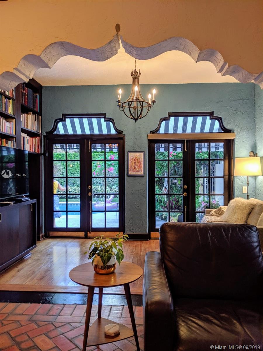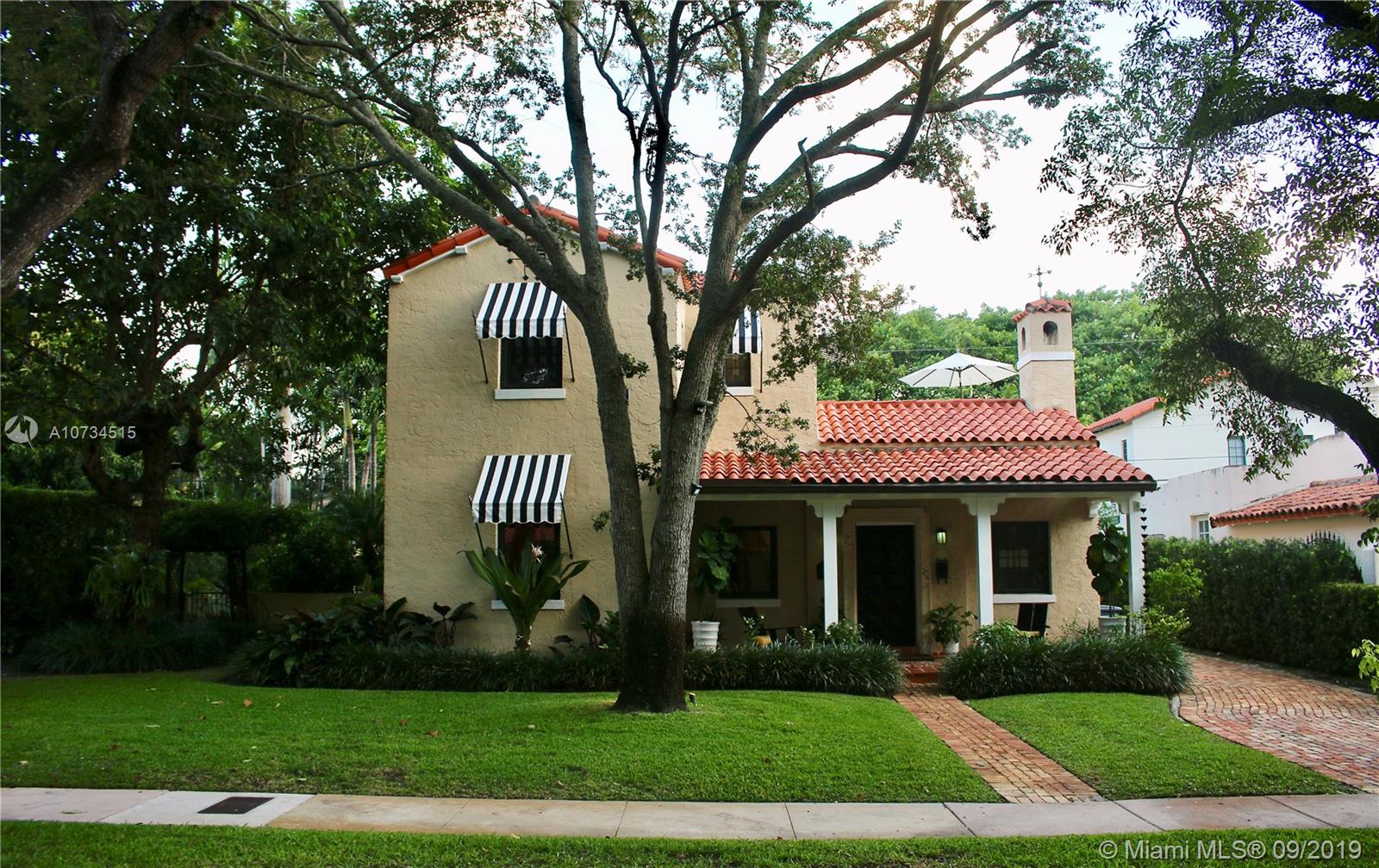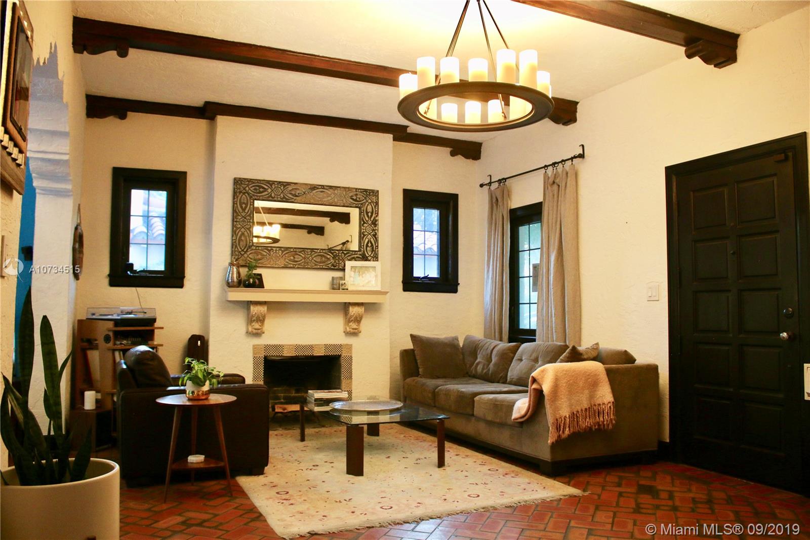Charming 1927 Old Spanish 2 Story home in historically designated neighborhood on a quiet street. Walking distance from downtown Coral Gables & Granada Golf Course. This classic Casa del Sol was designed by John & Coulton Skinner, it features impact windows, wood floors, stone fireplace, sundeck, sophisticated kitchen, renovated bathrooms, detached one car garage, opening to a lush patio with pool. Its floor plan consist of 2 BR/1BA upstairs & 1 full BA downstairs. Room for expansion on 7,500 FT lot.