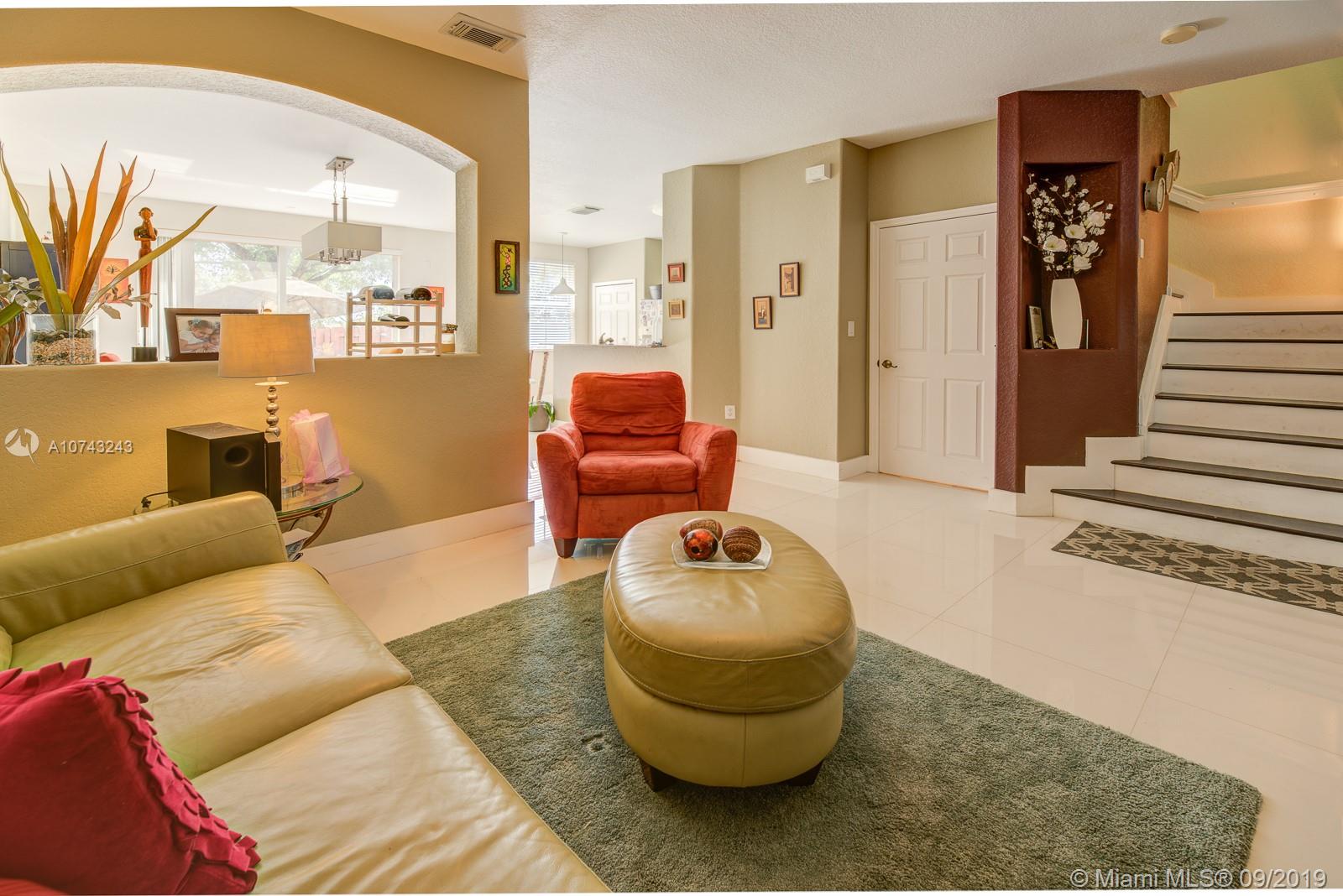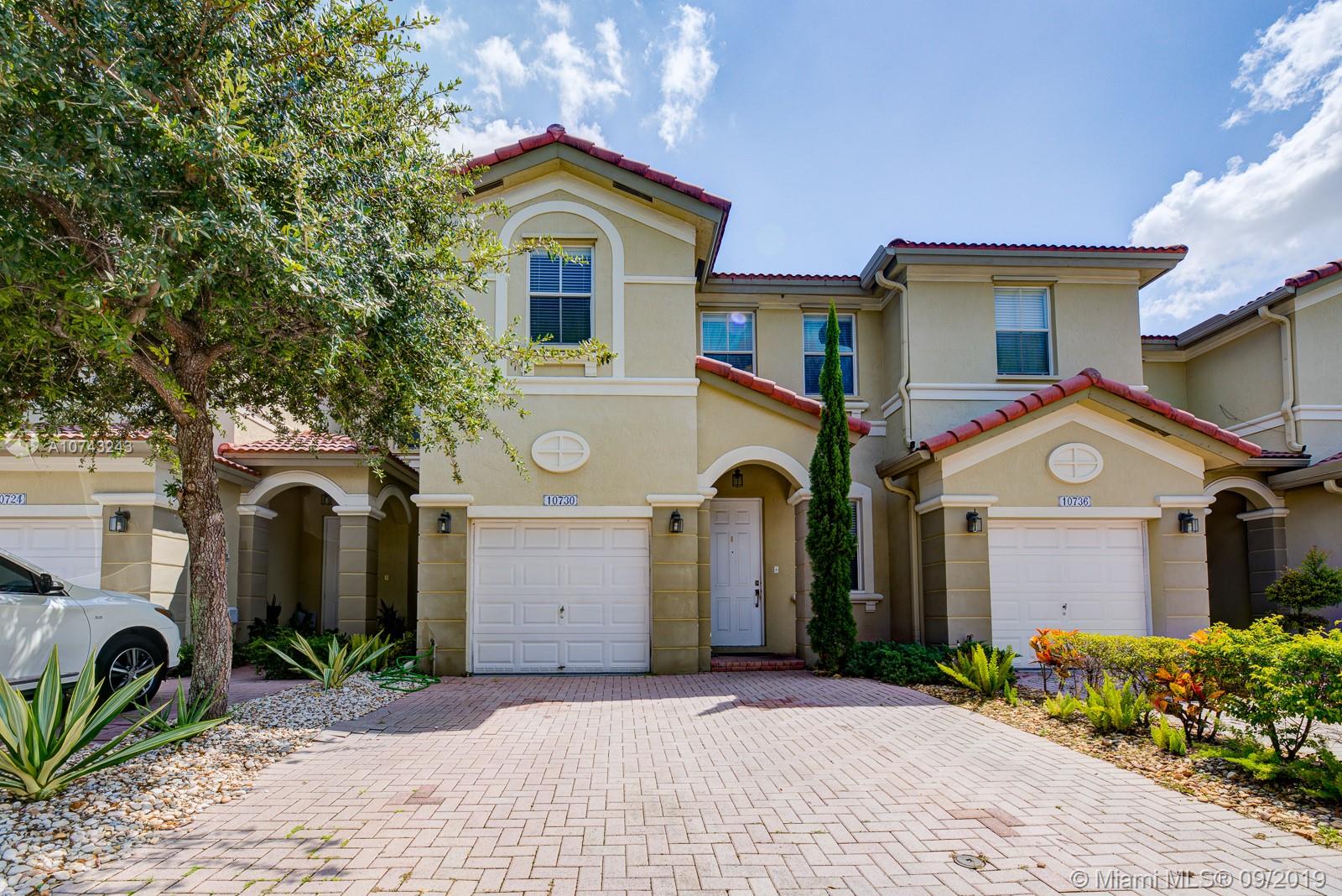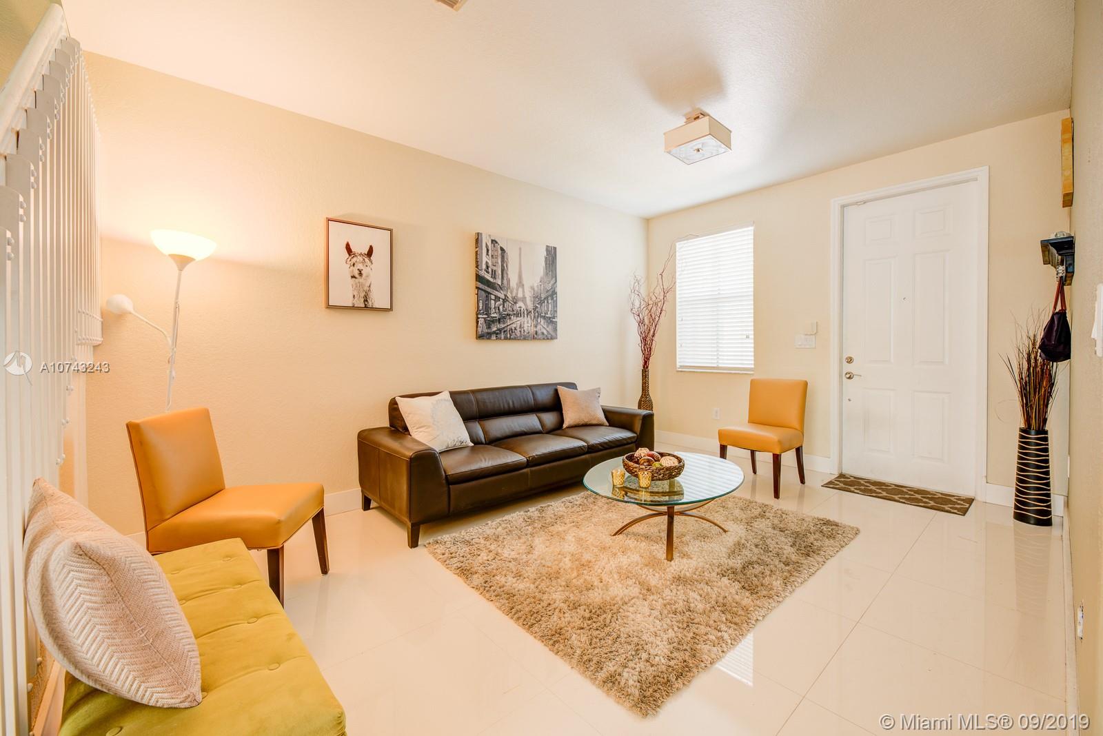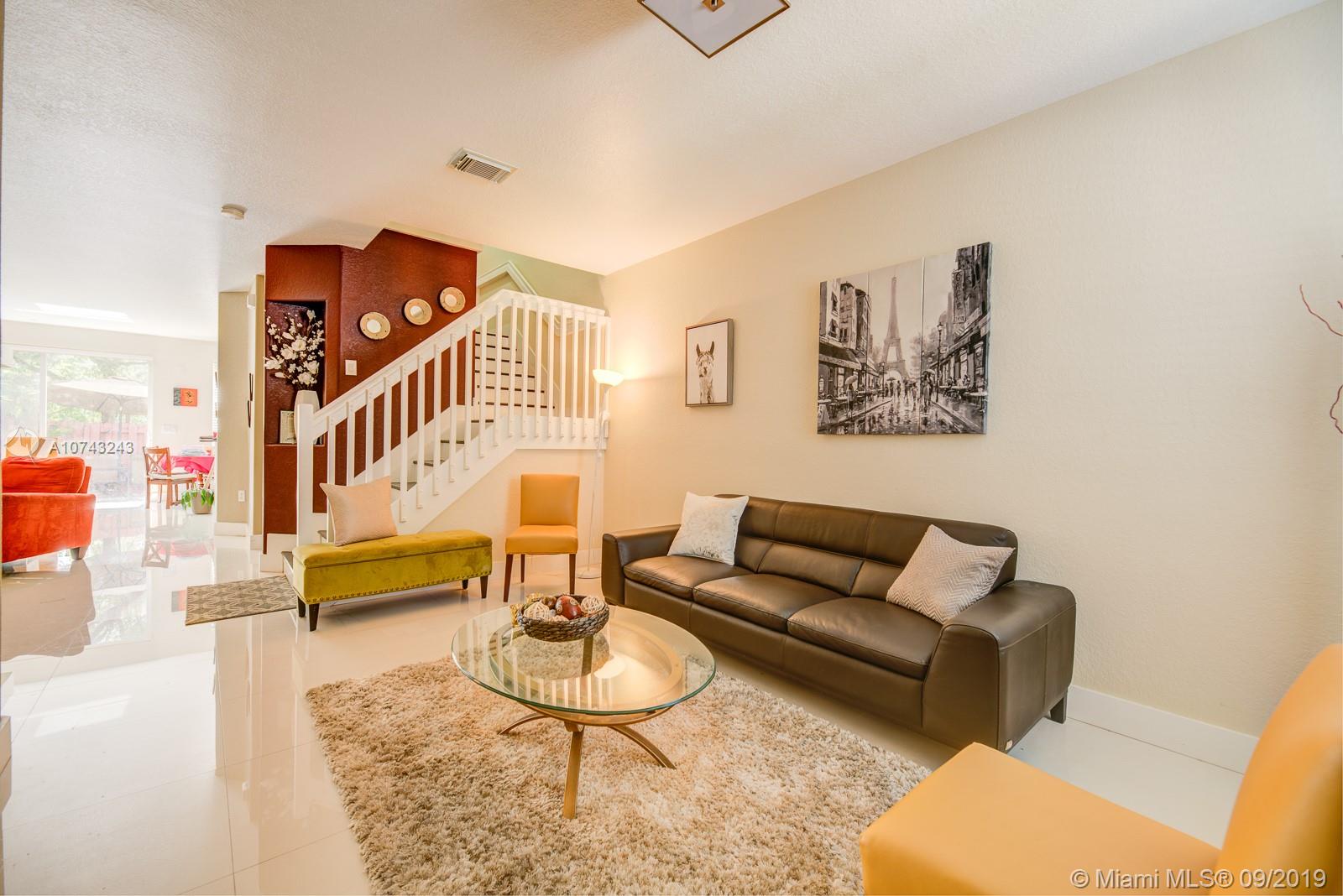 This modern 2006 two story Mediterranean style town home with garage in the heart of Doral has everything you're looking for. Sparkling white porcelain floors throughout the living area give the home its wide open airy feel and the exquisite cafe colored wood floors in the bedrooms make a beautifully stunning contrast. Modern accents and fixtures decorate the entire interior of the home giving it a unique look along with its classic Spanish/Mediterranean exterior. Great for entertaining you'll enjoy its formal living room with adjacent Florida room making it great for receiving guests. Its nearly 1900sf of living space encompasses 4 bedrooms and 2.5 baths all updated with pristine light fixtures, sinks and cabinetry. A large open kitchen overlooking the dining area.